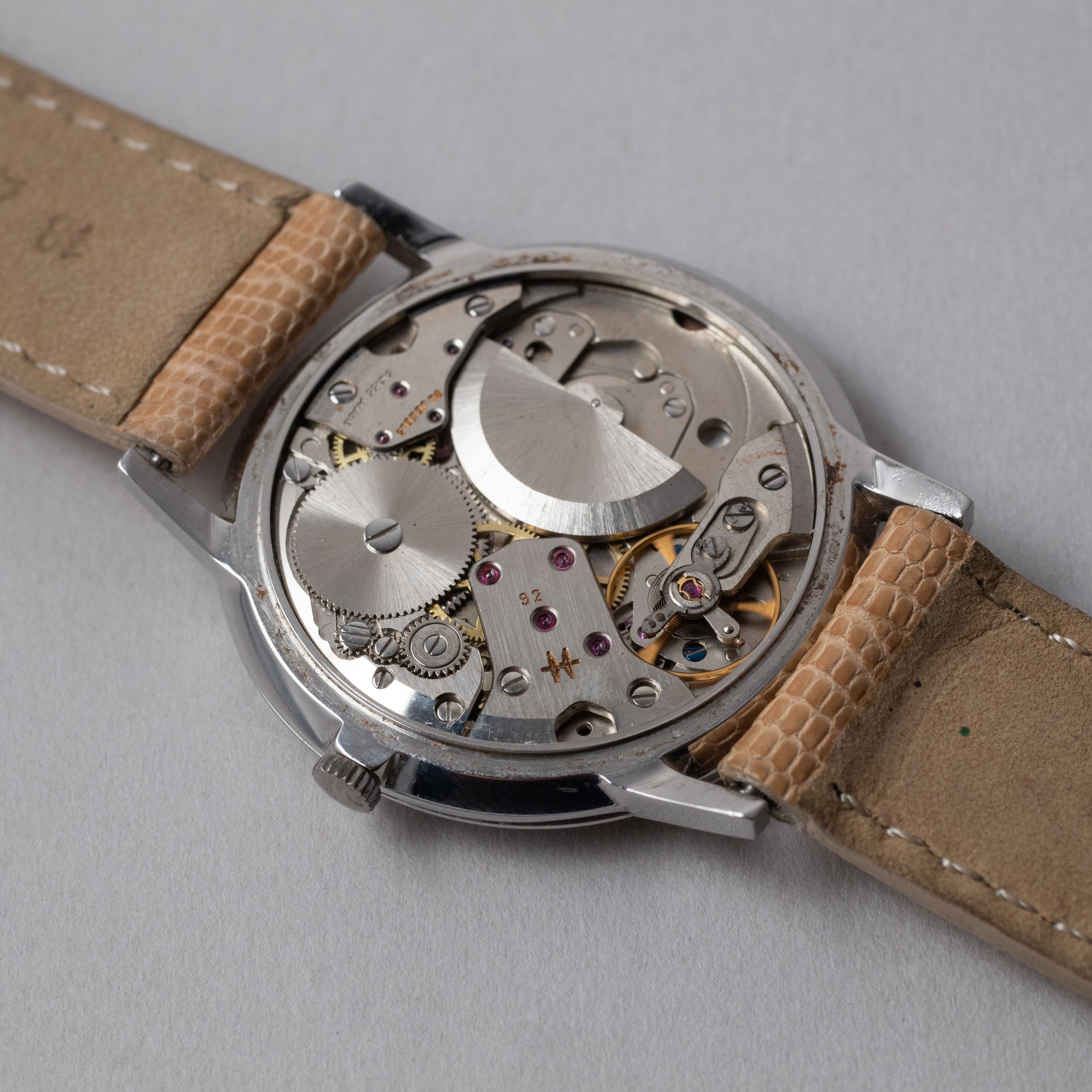 - ヴィンテージ時計の特性上、風防・パッキン・リューズ・バネ棒などの消耗部品は後年メンテナンス過程で交換されている場合がございます。オリジナル性を重視しておりますが、必要に応じて適切な部品にて調整されていますので、よりコレクション性重視のお求めのお客様は事前にご確認ください。