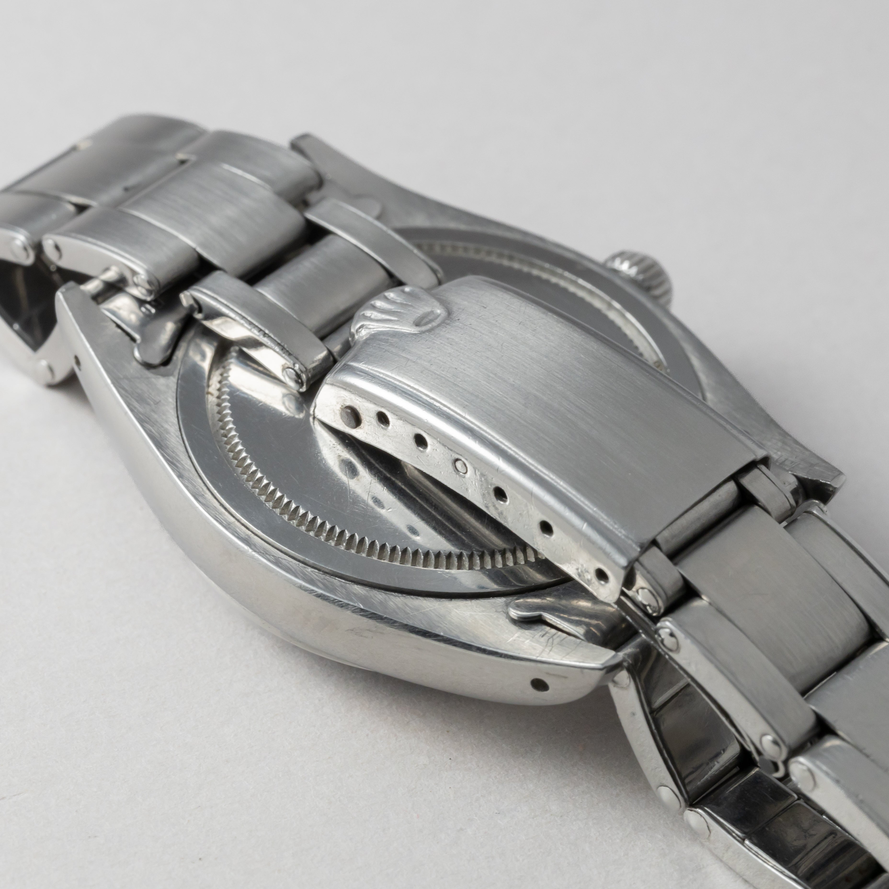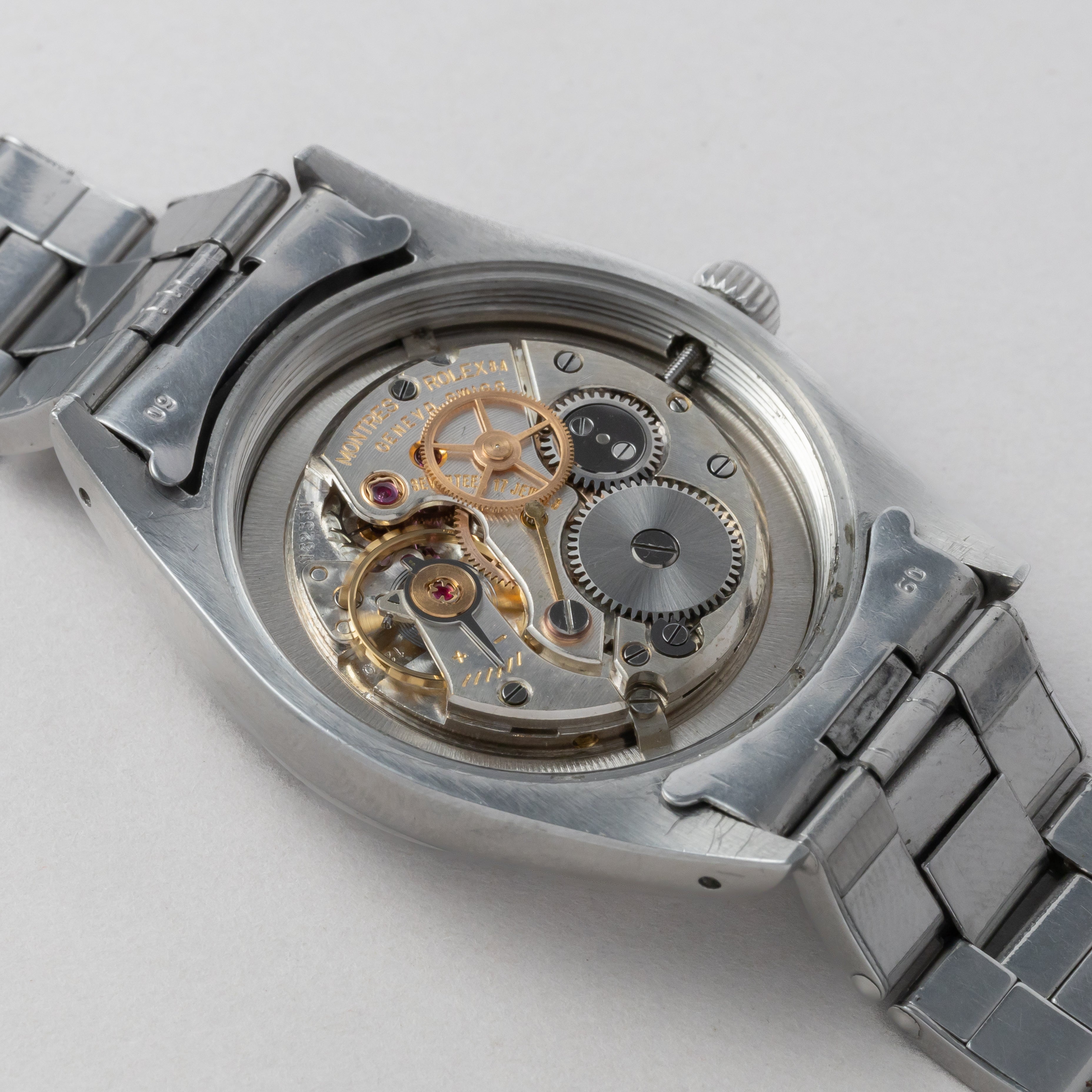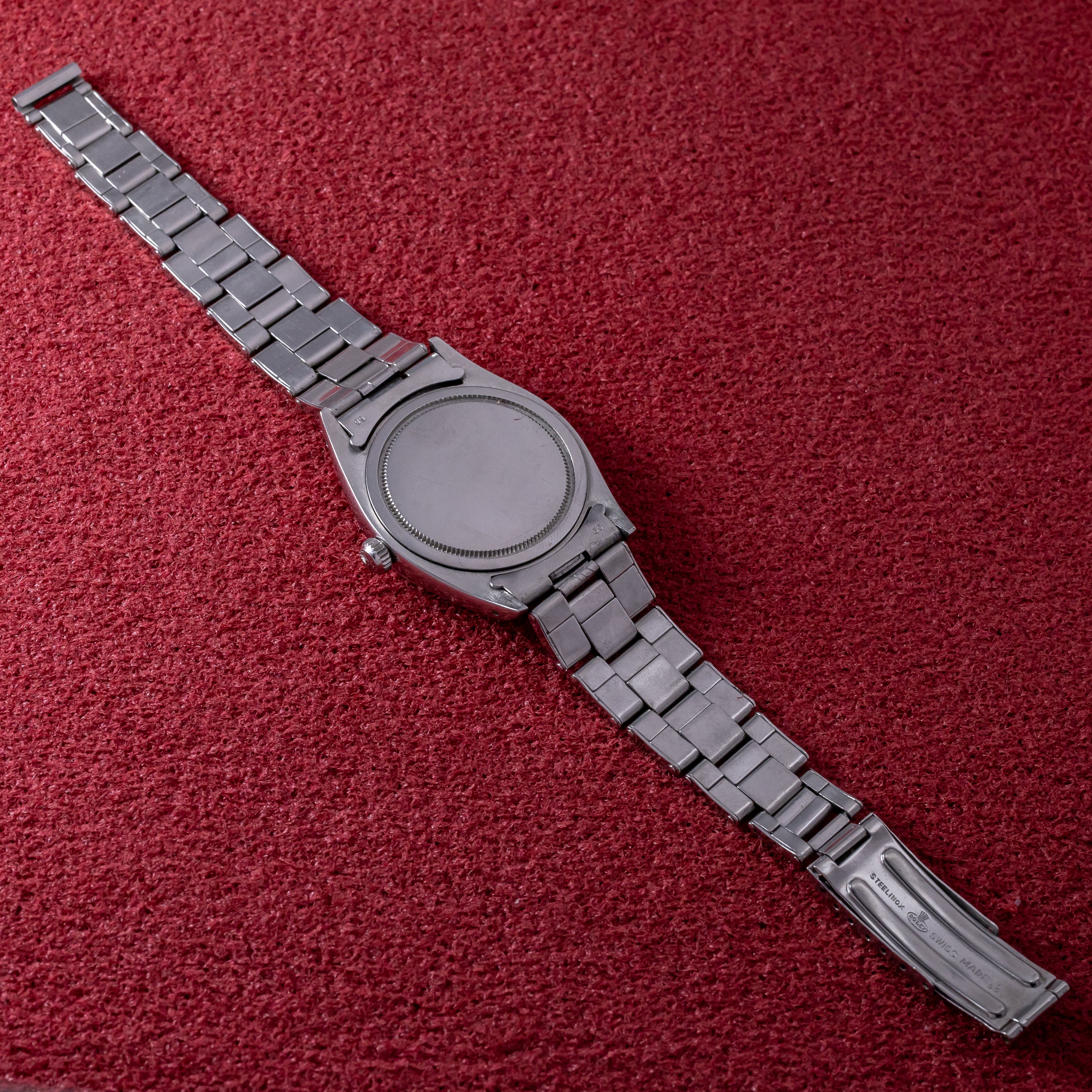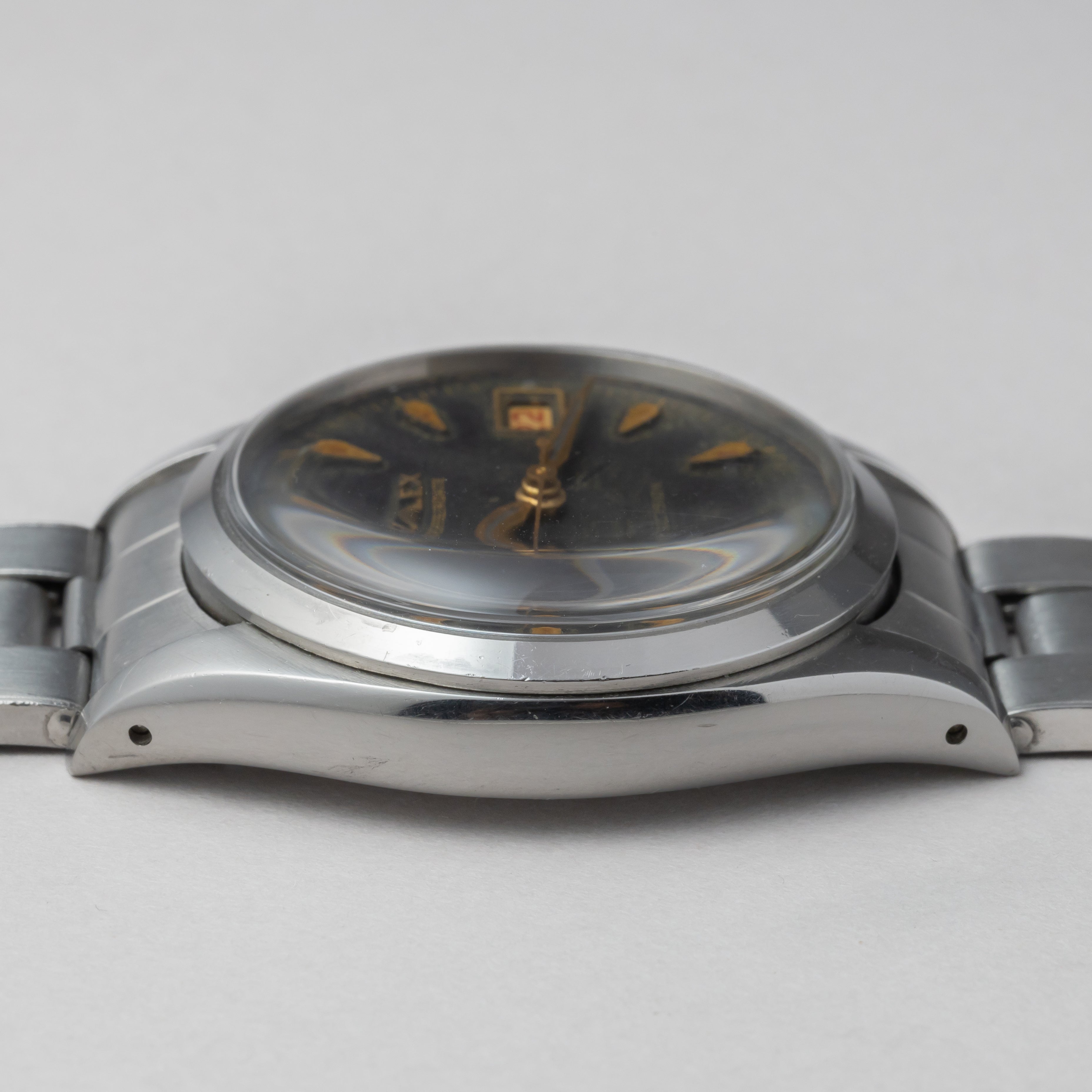- ヴィンテージ時計の特性上、風防・パッキン・リューズ・バネ棒などの消耗部品は後年メンテナンス過程で交換されている場合がございます。オリジナル性を重視しておりますが、必要に応じて適切な部品にて調整されていますので、よりコレクション性重視のお求めのお客様は事前にご確認ください。