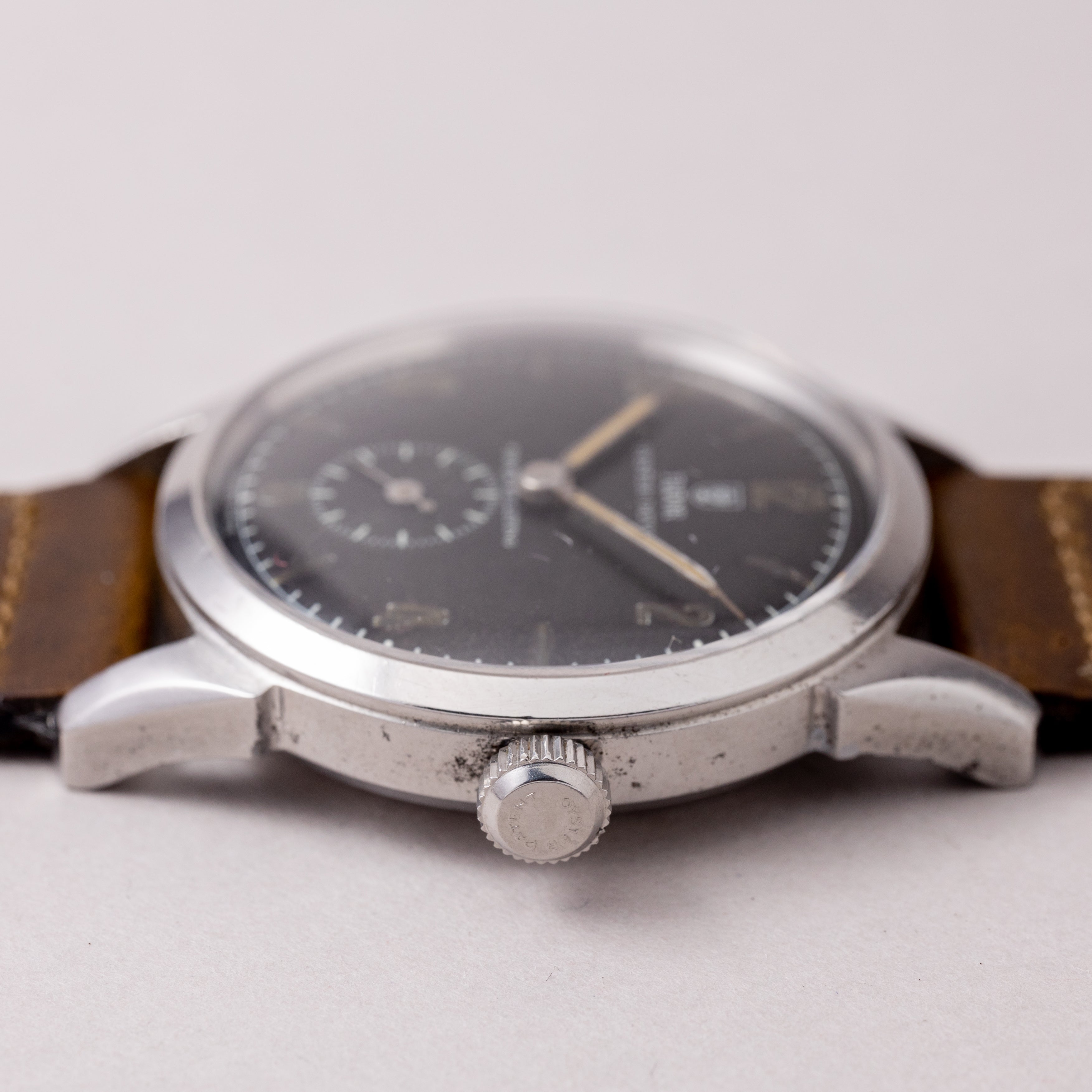 - ヴィンテージ時計の特性上、風防・パッキン・リューズ・バネ棒などの消耗部品は後年メンテナンス過程で交換されている場合がございます。オリジナル性を重視しておりますが、必要に応じて適切な部品にて調整されていますので、よりコレクション性重視のお求めのお客様は事前にご確認ください。