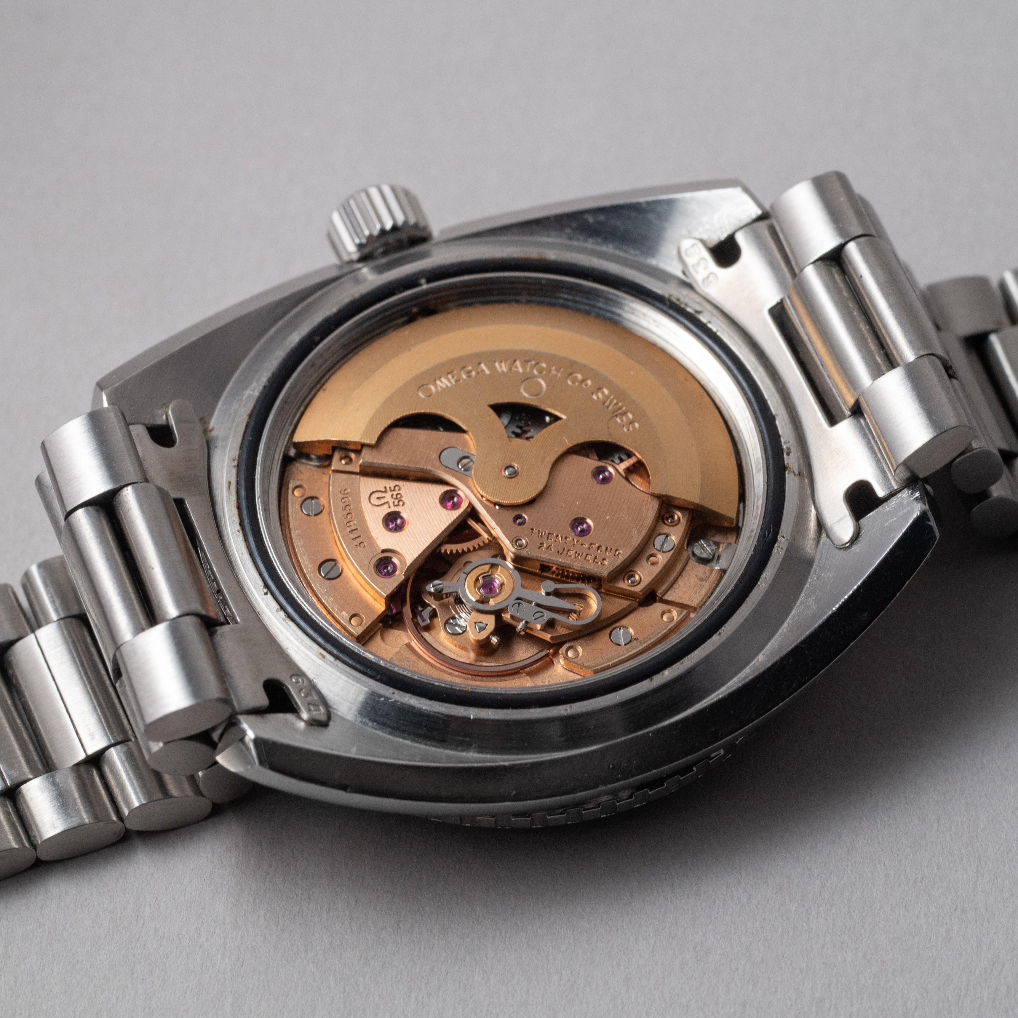 - ヴィンテージ時計の特性上、風防・パッキン・リューズ・バネ棒などの消耗部品は後年メンテナンス過程で交換されている場合がございます。オリジナル性を重視しておりますが、必要に応じて適切な部品にて調整されていますので、よりコレクション性重視のお求めのお客様は事前にご確認ください。