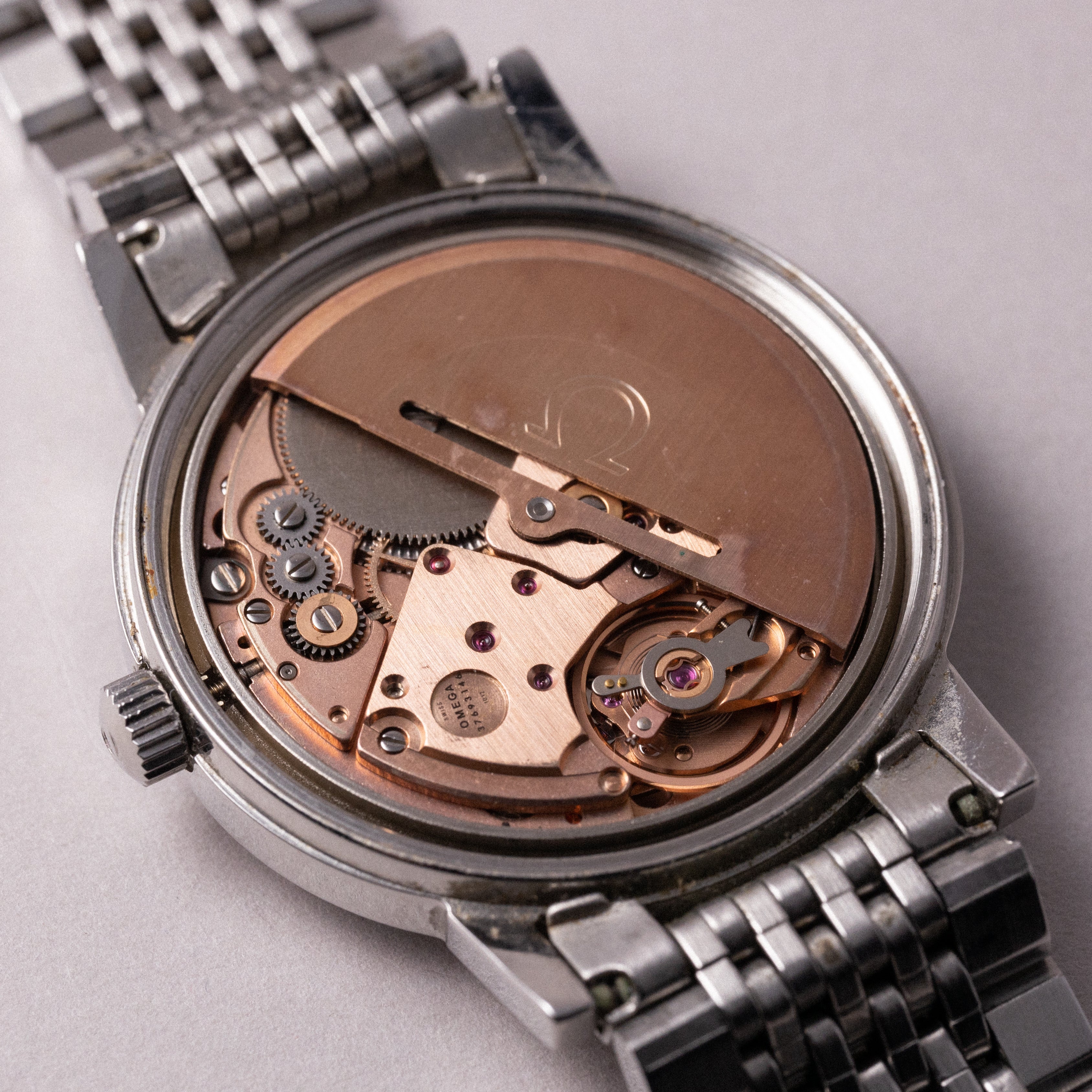 - ヴィンテージ時計の特性上、風防・パッキン・リューズ・バネ棒などの消耗部品は後年メンテナンス過程で交換されている場合がございます。オリジナル性を重視しておりますが、必要に応じて適切な部品にて調整されていますので、よりコレクション性重視のお求めのお客様は事前にご確認ください。