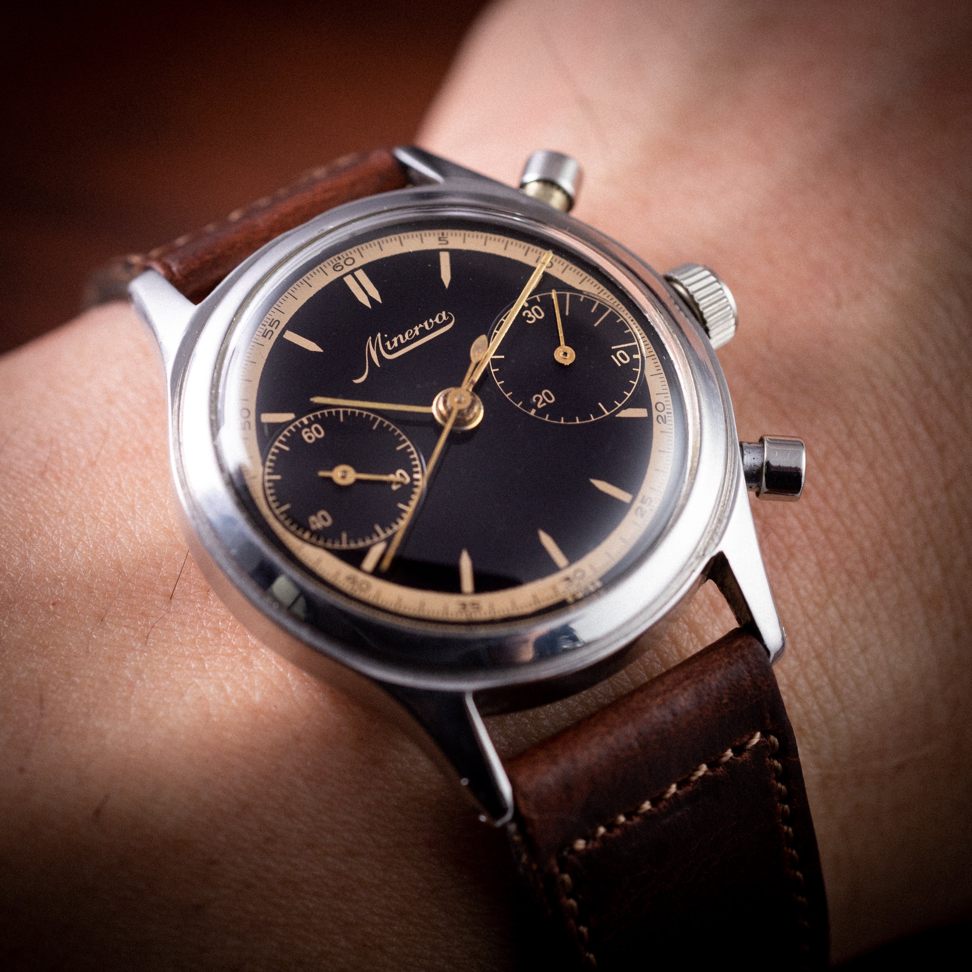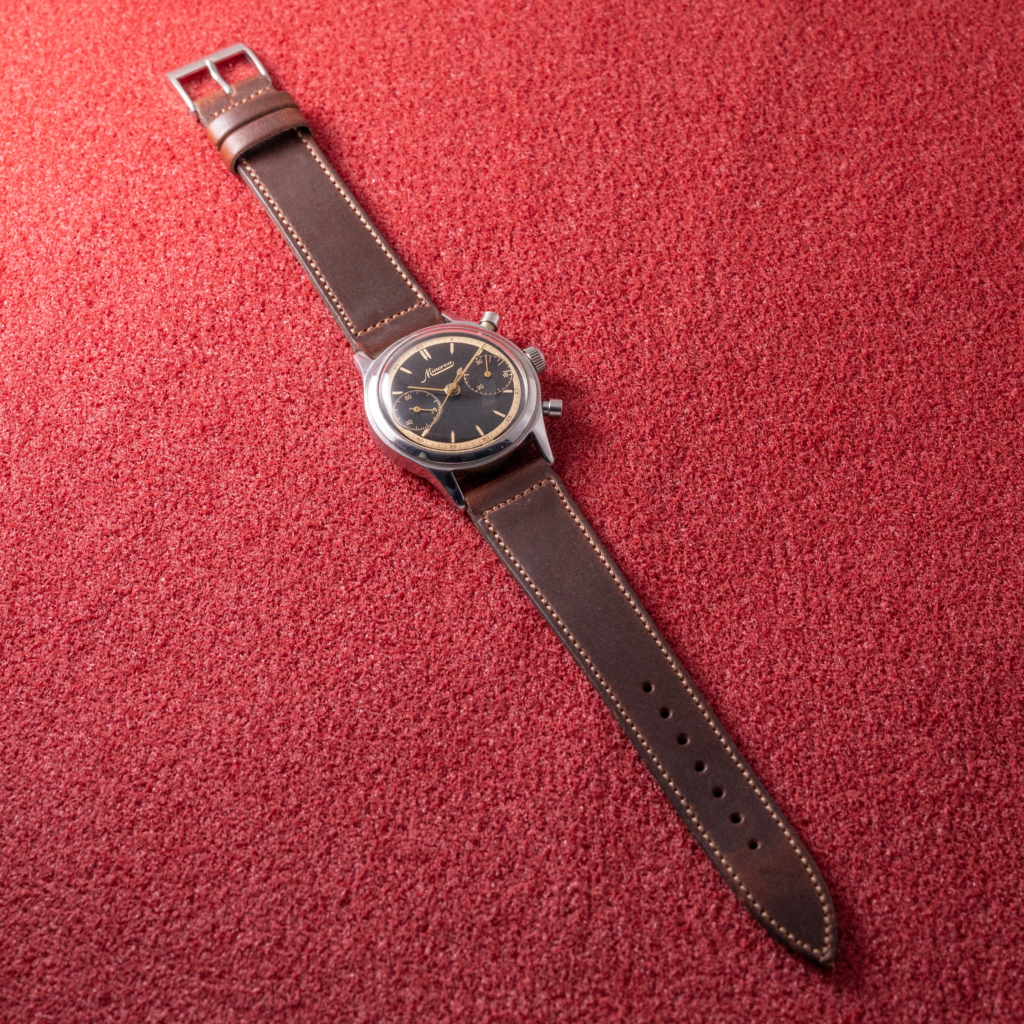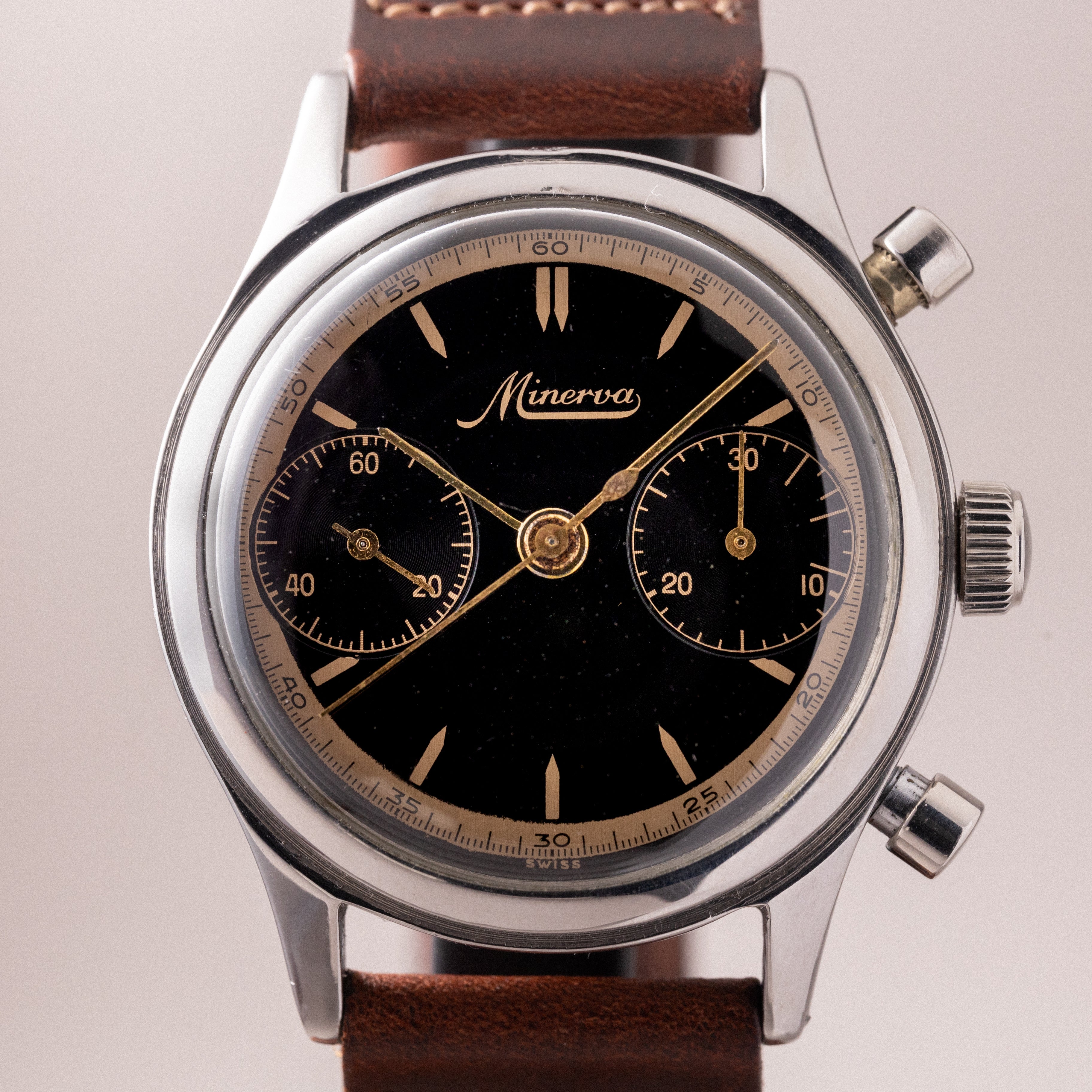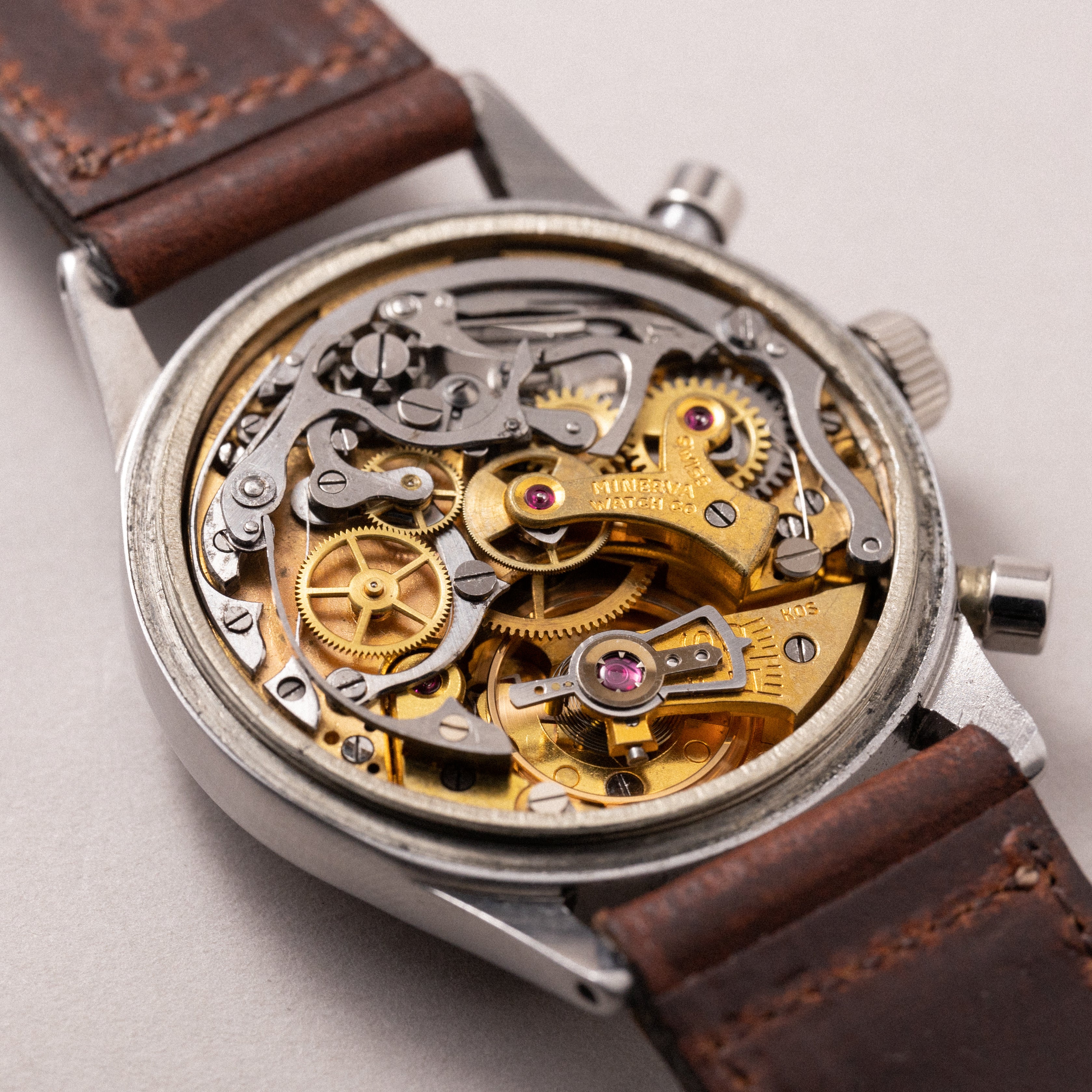 - ヴィンテージ時計の特性上、風防・パッキン・リューズ・バネ棒などの消耗部品は後年メンテナンス過程で交換されている場合がございます。オリジナル性を重視しておりますが、必要に応じて適切な部品にて調整されていますので、よりコレクション性重視のお求めのお客様は事前にご確認ください。