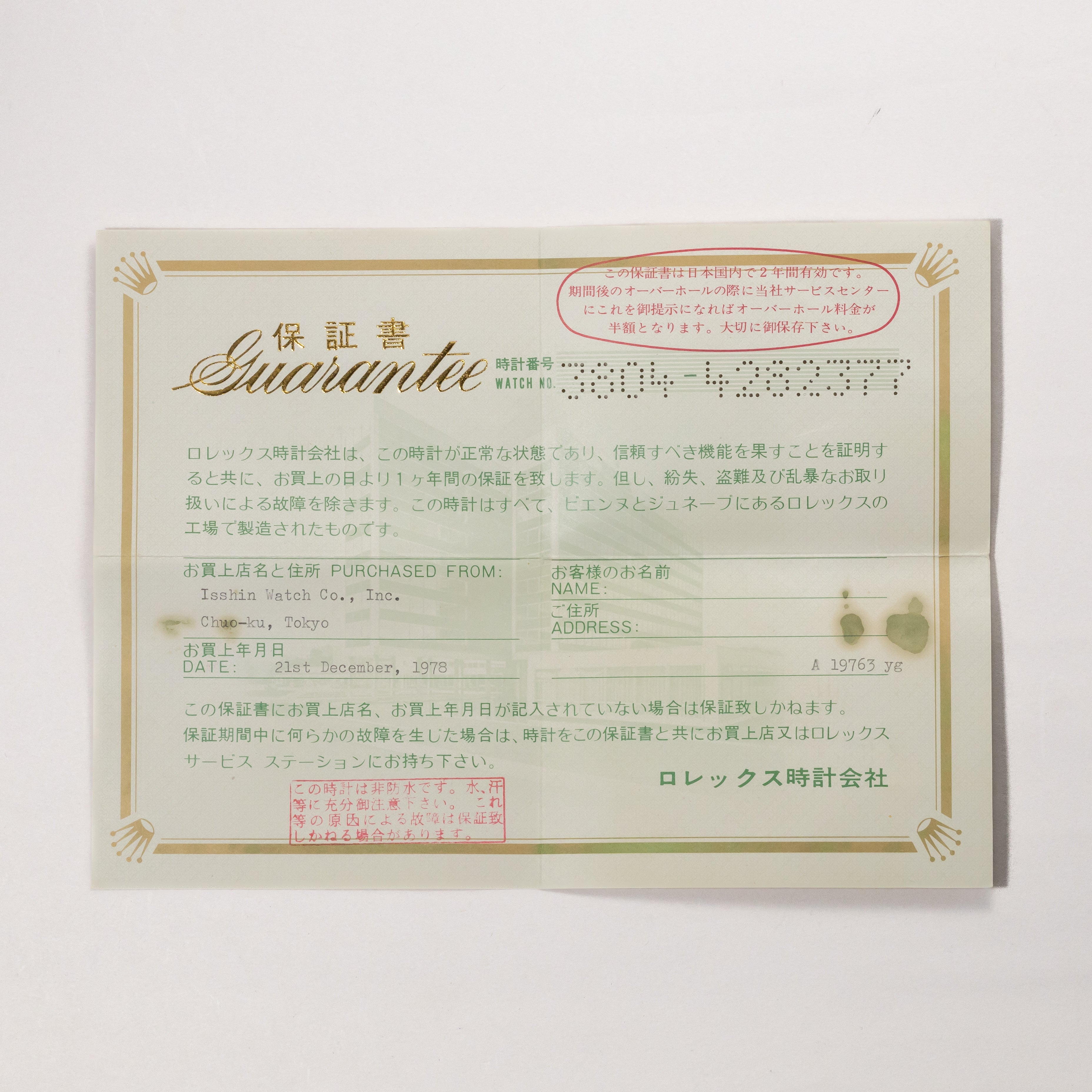 - ヴィンテージ時計の特性上、風防・パッキン・リューズ・バネ棒などの消耗部品は後年メンテナンス過程で交換されている場合がございます。オリジナル性を重視しておりますが、必要に応じて適切な部品にて調整されていますので、よりコレクション性重視のお求めのお客様は事前にご確認ください。