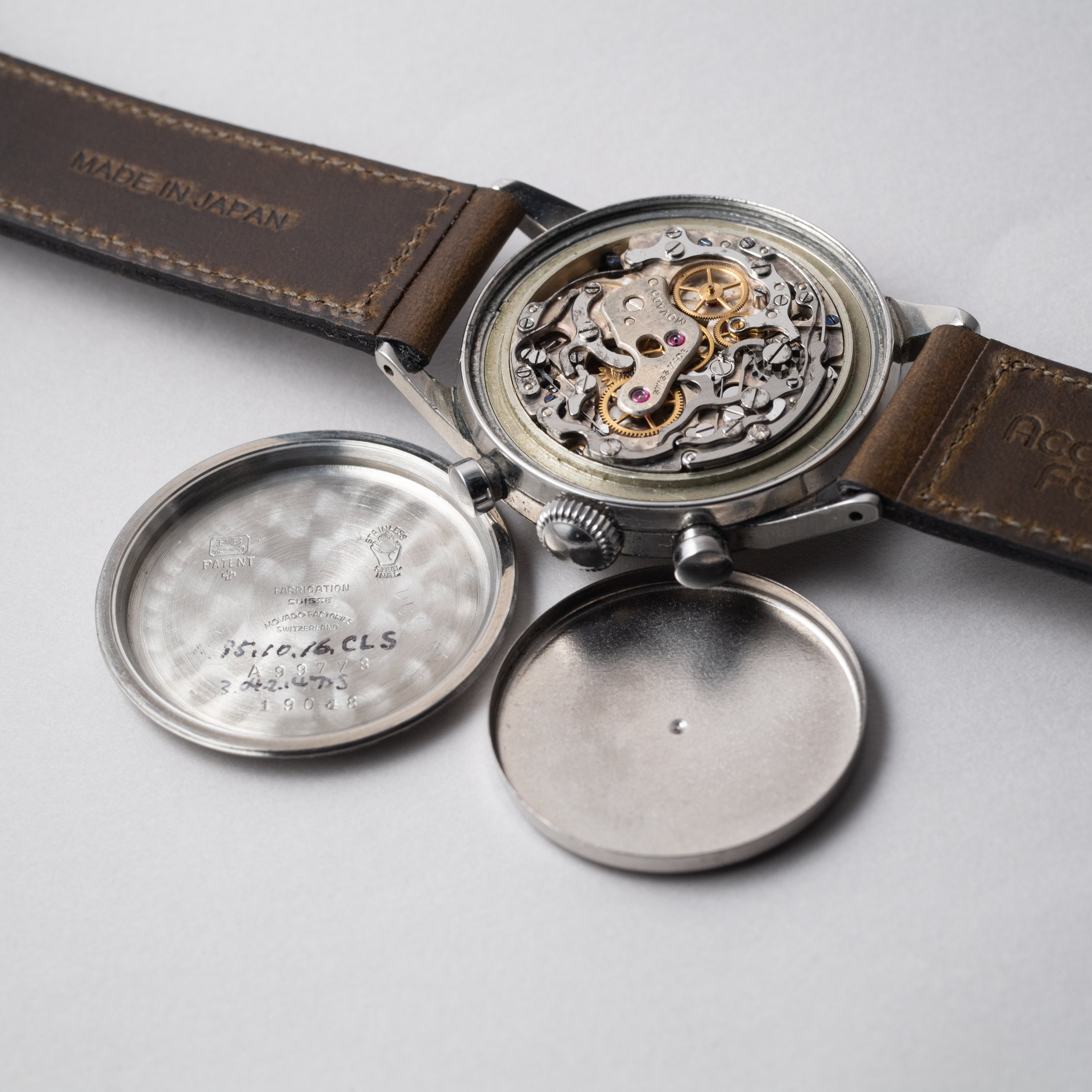 - ヴィンテージ時計の特性上、風防・パッキン・リューズ・バネ棒などの消耗部品は後年メンテナンス過程で交換されている場合がございます。オリジナル性を重視しておりますが、必要に応じて適切な部品にて調整されていますので、よりコレクション性重視のお求めのお客様は事前にご確認ください。