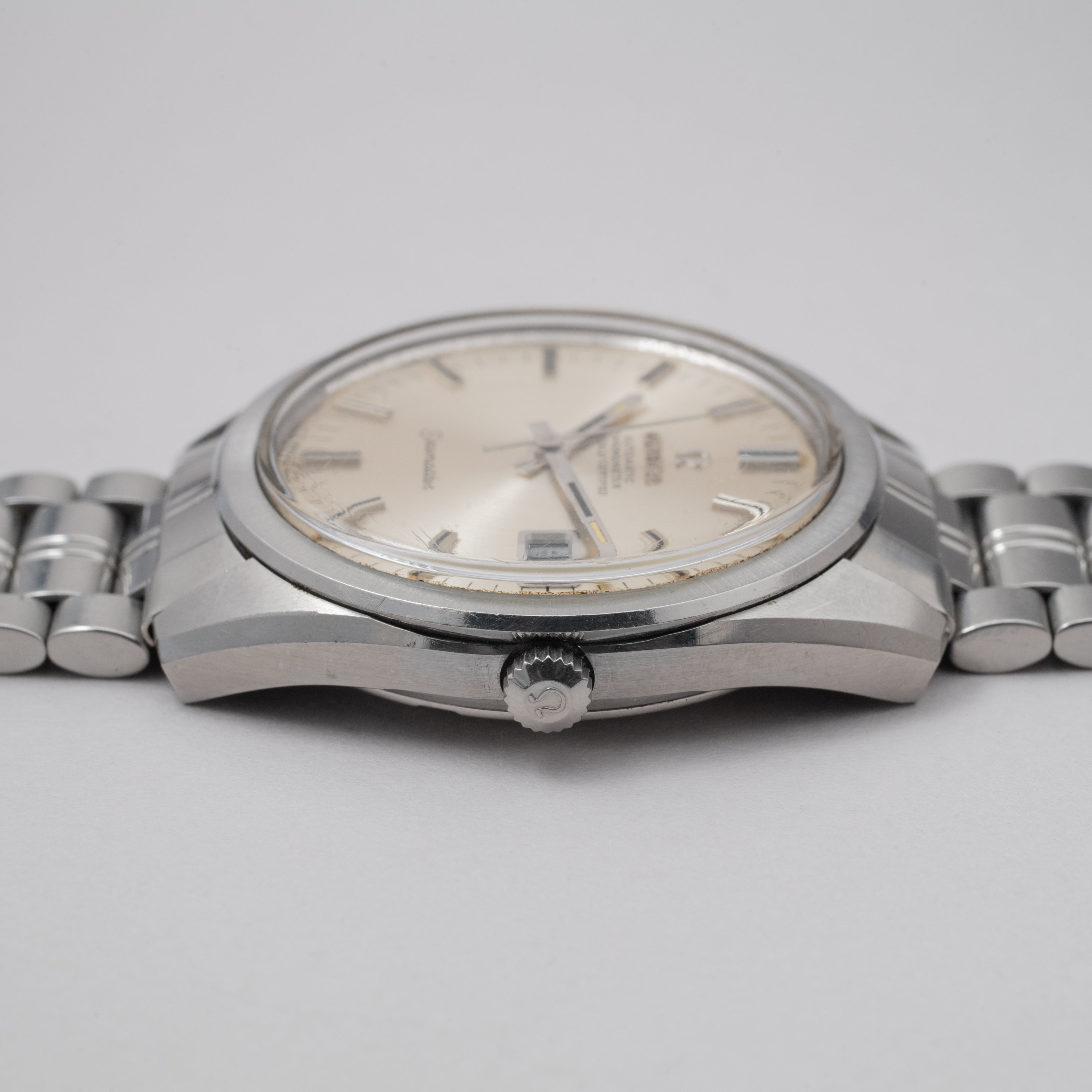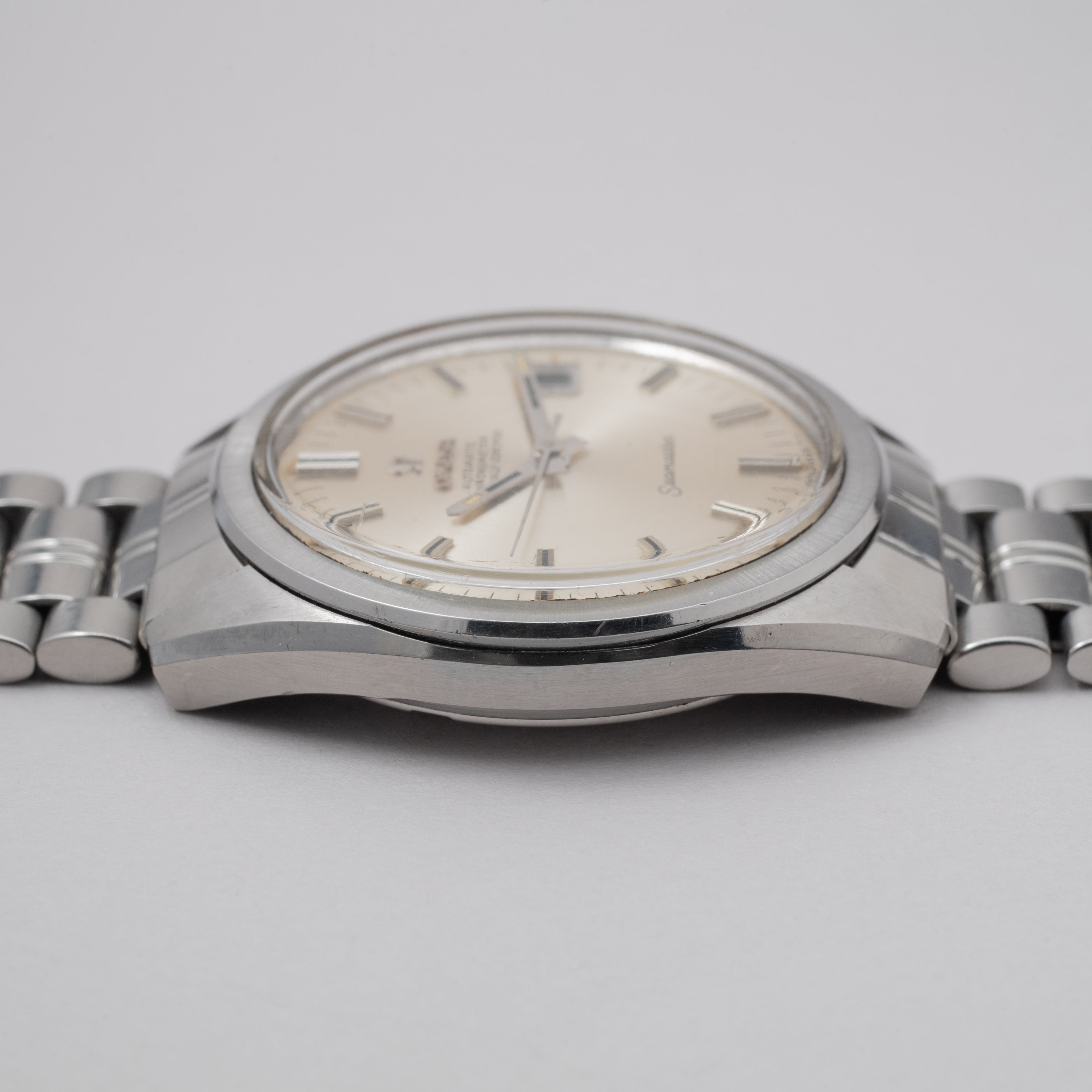 - ヴィンテージ時計の特性上、風防・パッキン・リューズ・バネ棒などの消耗部品は後年メンテナンス過程で交換されている場合がございます。オリジナル性を重視しておりますが、必要に応じて適切な部品にて調整されていますので、よりコレクション性重視のお求めのお客様は事前にご確認ください。