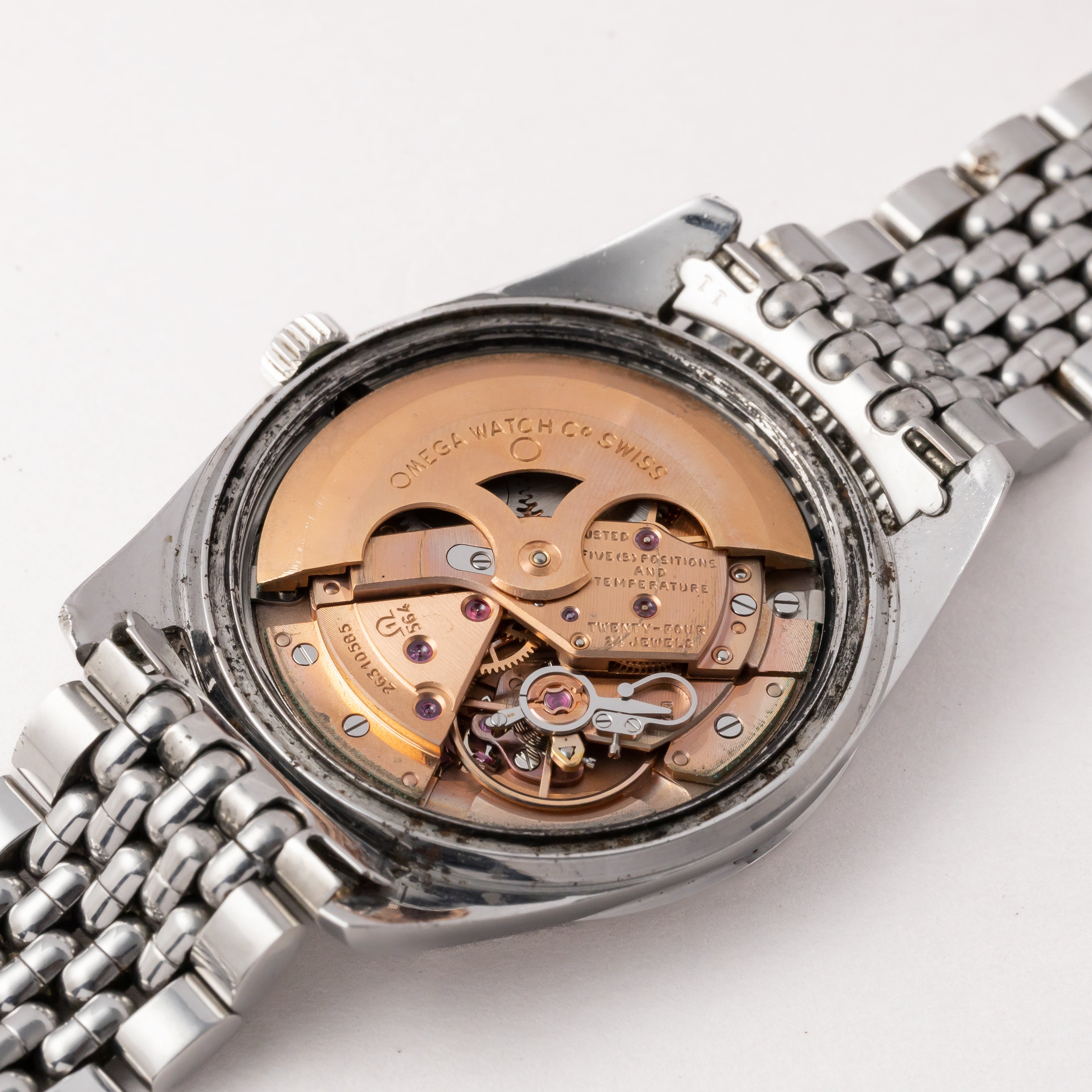 - ヴィンテージ時計の特性上、風防・パッキン・リューズ・バネ棒などの消耗部品は後年メンテナンス過程で交換されている場合がございます。オリジナル性を重視しておりますが、必要に応じて適切な部品にて調整されていますので、よりコレクション性重視のお求めのお客様は事前にご確認ください。