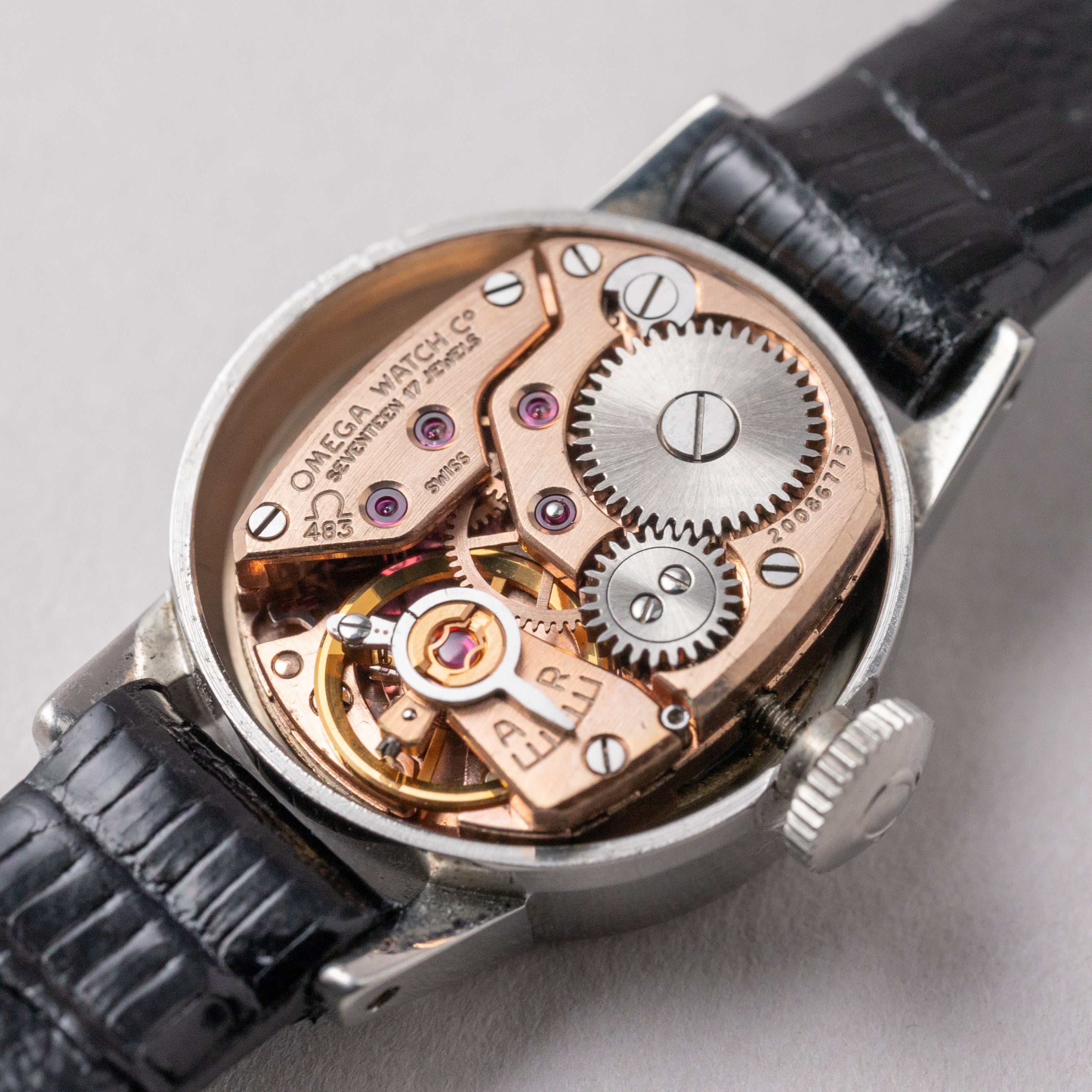 - ヴィンテージ時計の特性上、風防・パッキン・リューズ・バネ棒などの消耗部品は後年メンテナンス過程で交換されている場合がございます。オリジナル性を重視しておりますが、必要に応じて適切な部品にて調整されていますので、よりコレクション性重視のお求めのお客様は事前にご確認ください。