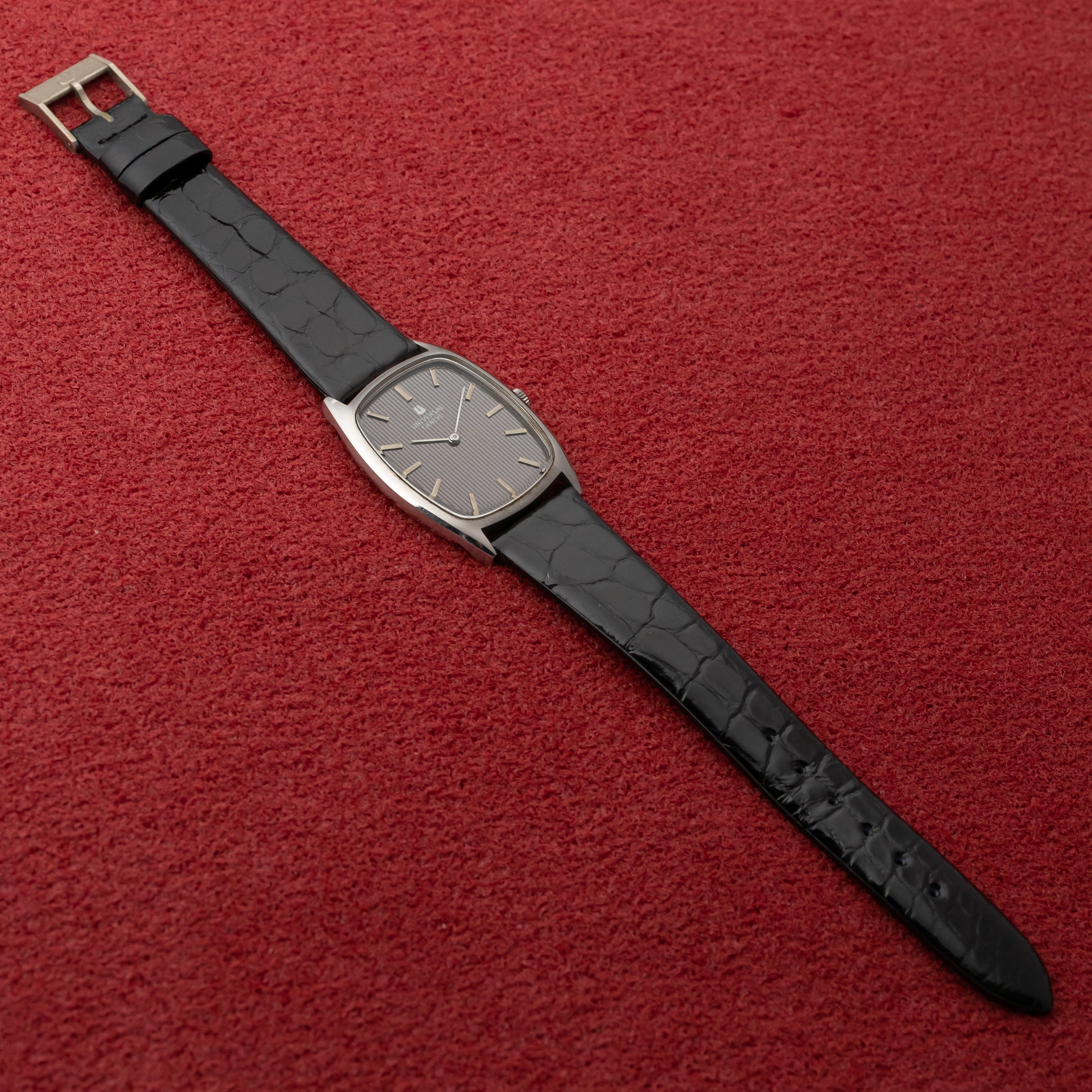 ユニバーサルジュネーブ トノー型 手巻き 1970年代 縦タペストリーダイヤル 純正尾錠付き