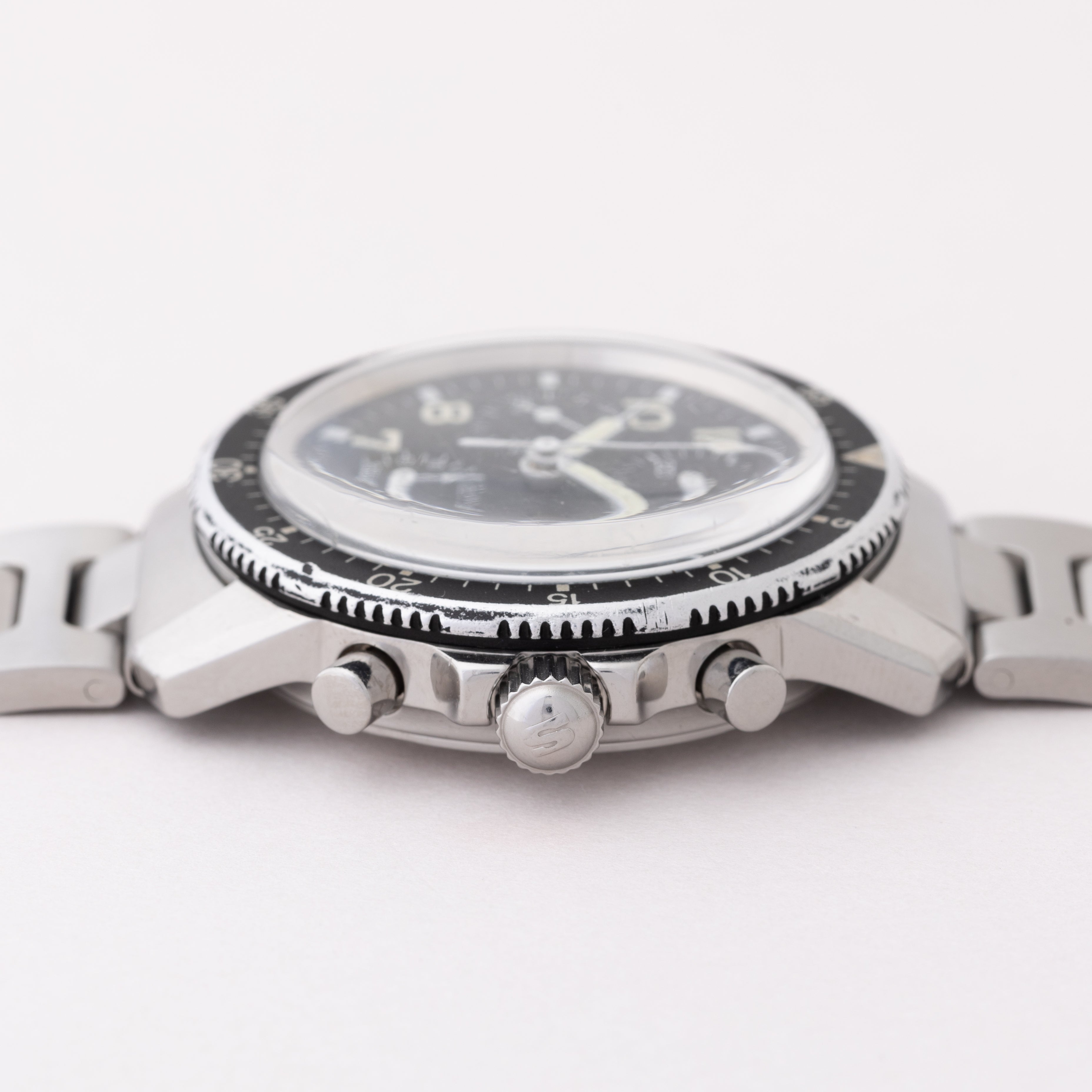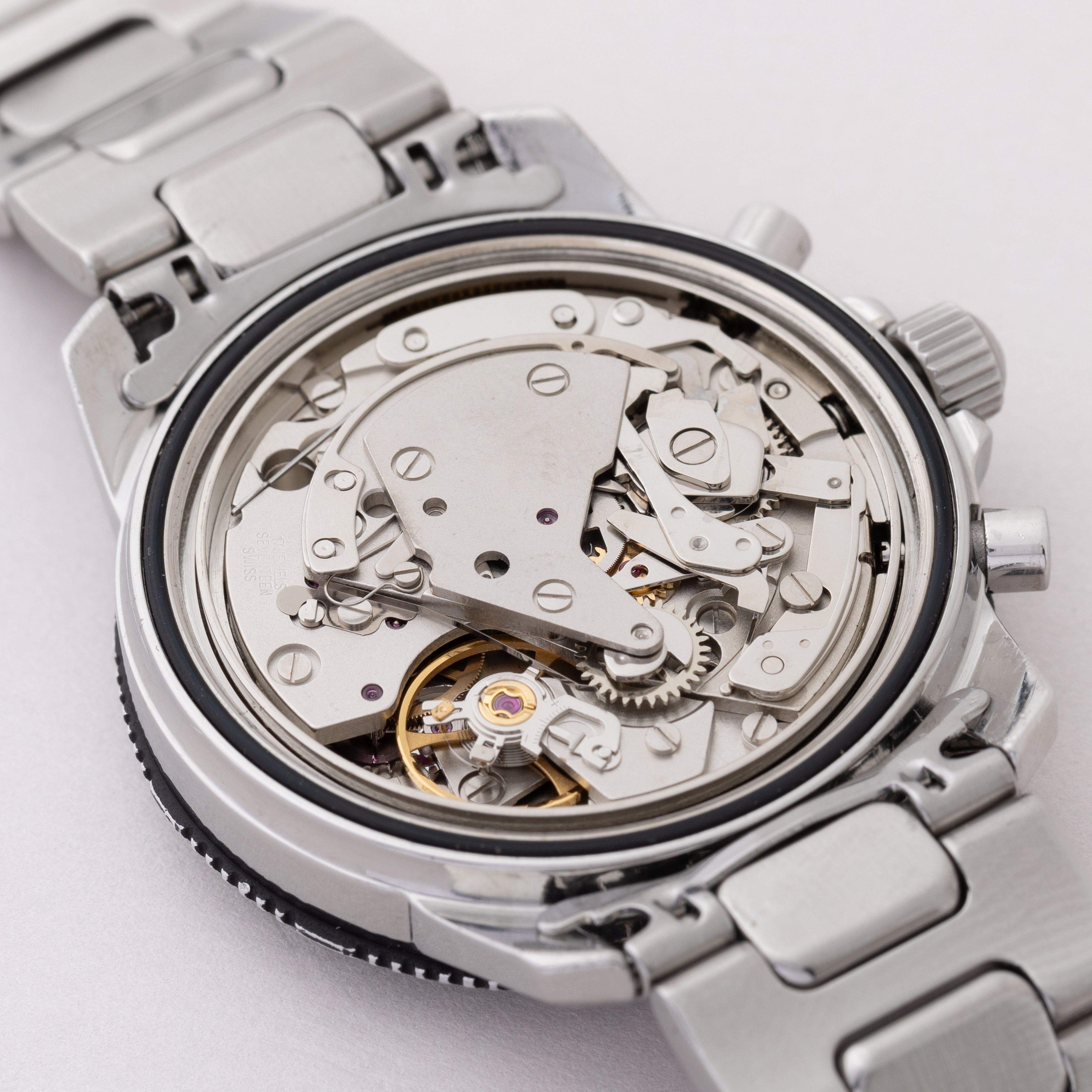 - ヴィンテージ時計の特性上、風防・パッキン・リューズ・バネ棒などの消耗部品は後年メンテナンス過程で交換されている場合がございます。オリジナル性を重視しておりますが、必要に応じて適切な部品にて調整されていますので、よりコレクション性重視のお求めのお客様は事前にご確認ください。