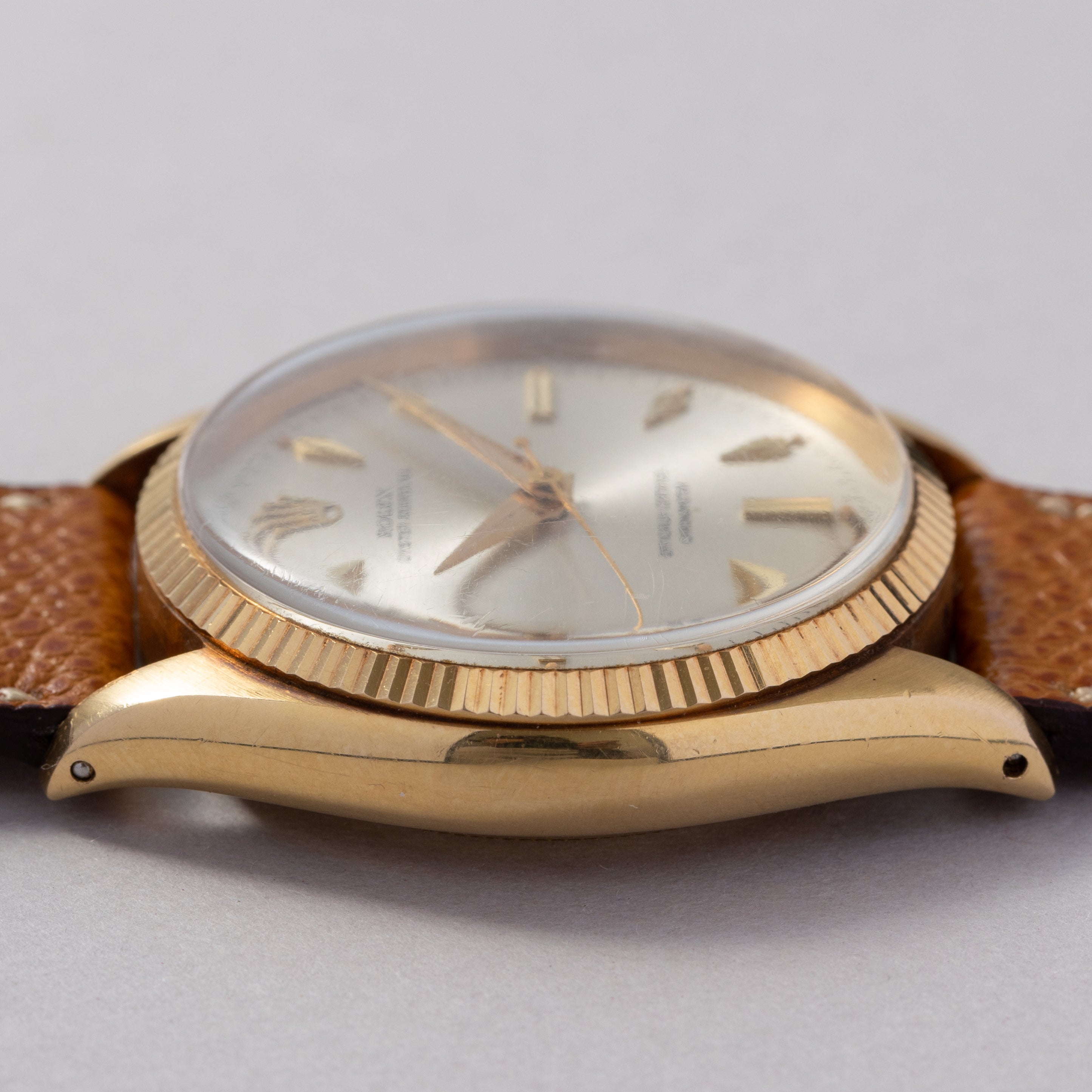 - ヴィンテージ時計の特性上、風防・パッキン・リューズ・バネ棒などの消耗部品は後年メンテナンス過程で交換されている場合がございます。オリジナル性を重視しておりますが、必要に応じて適切な部品にて調整されていますので、よりコレクション性重視のお求めのお客様は事前にご確認ください。