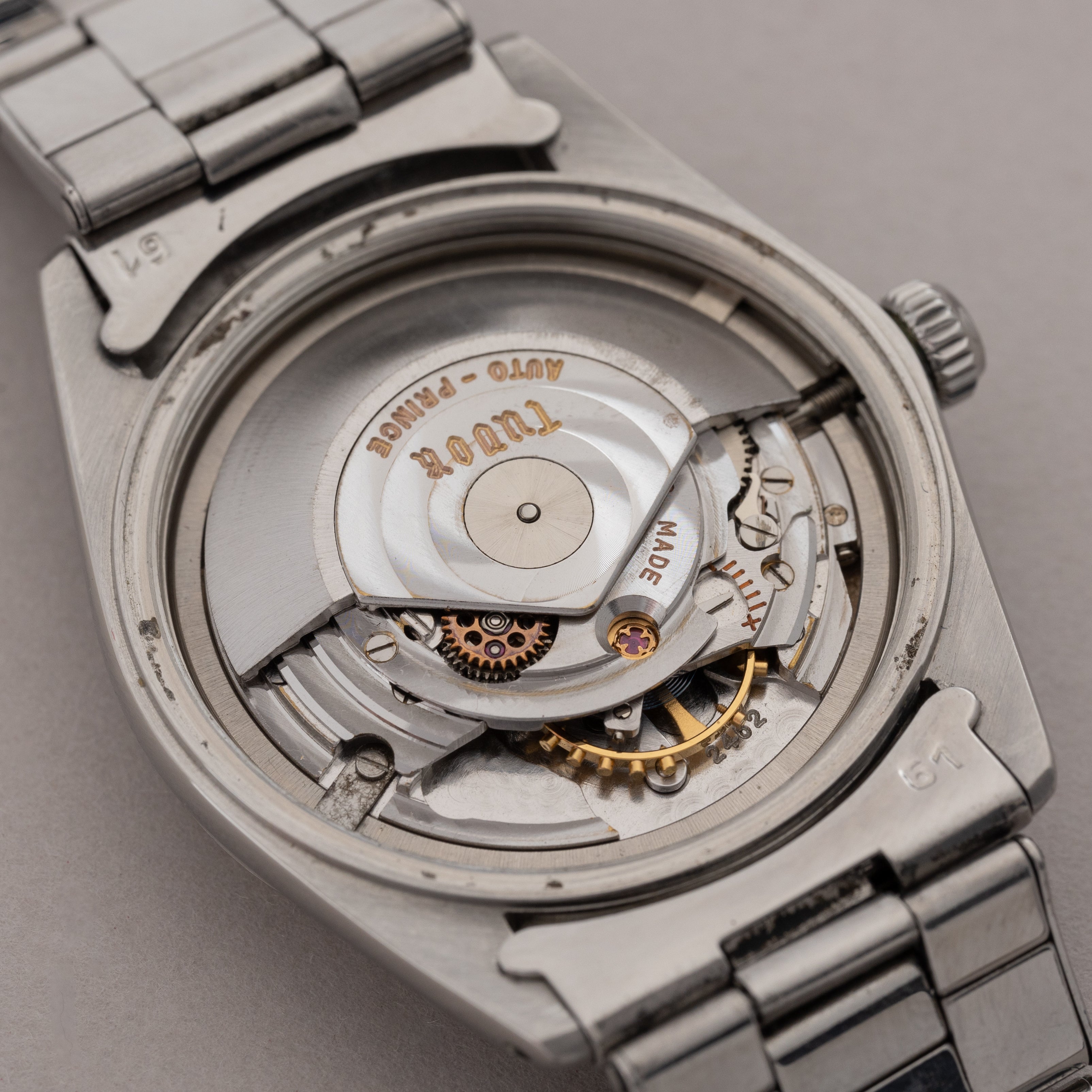 - ヴィンテージ時計の特性上、風防・パッキン・リューズ・バネ棒などの消耗部品は後年メンテナンス過程で交換されている場合がございます。オリジナル性を重視しておりますが、必要に応じて適切な部品にて調整されていますので、よりコレクション性重視のお求めのお客様は事前にご確認ください。