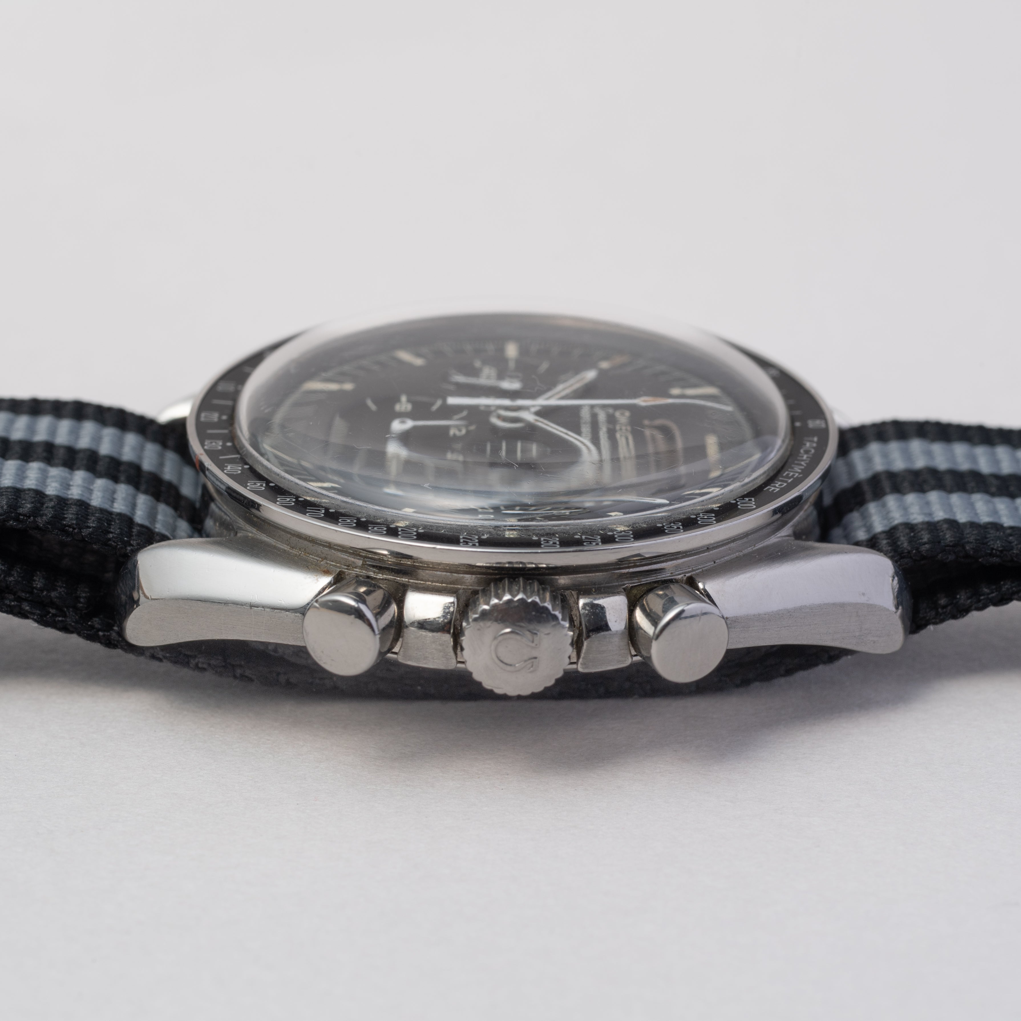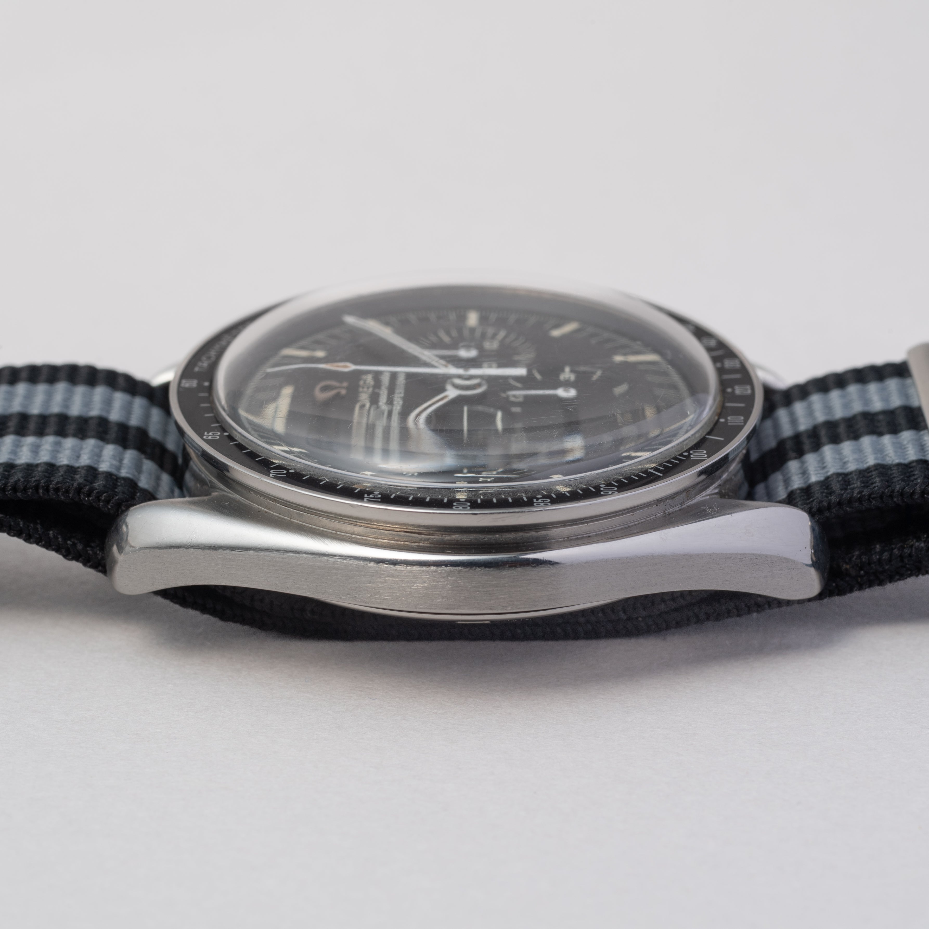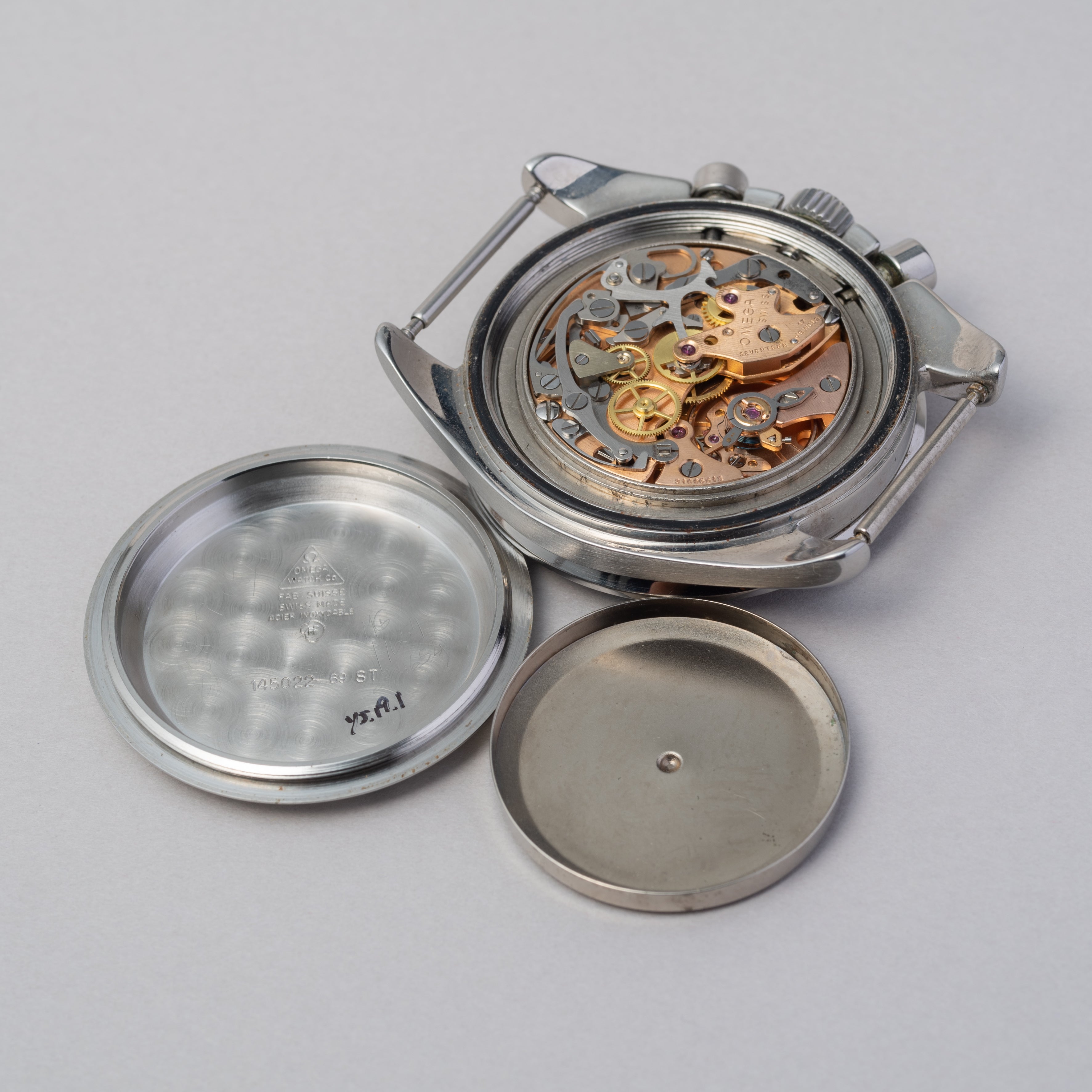 - ヴィンテージ時計の特性上、風防・パッキン・リューズ・バネ棒などの消耗部品は後年メンテナンス過程で交換されている場合がございます。オリジナル性を重視しておりますが、必要に応じて適切な部品にて調整されていますので、よりコレクション性重視のお求めのお客様は事前にご確認ください。