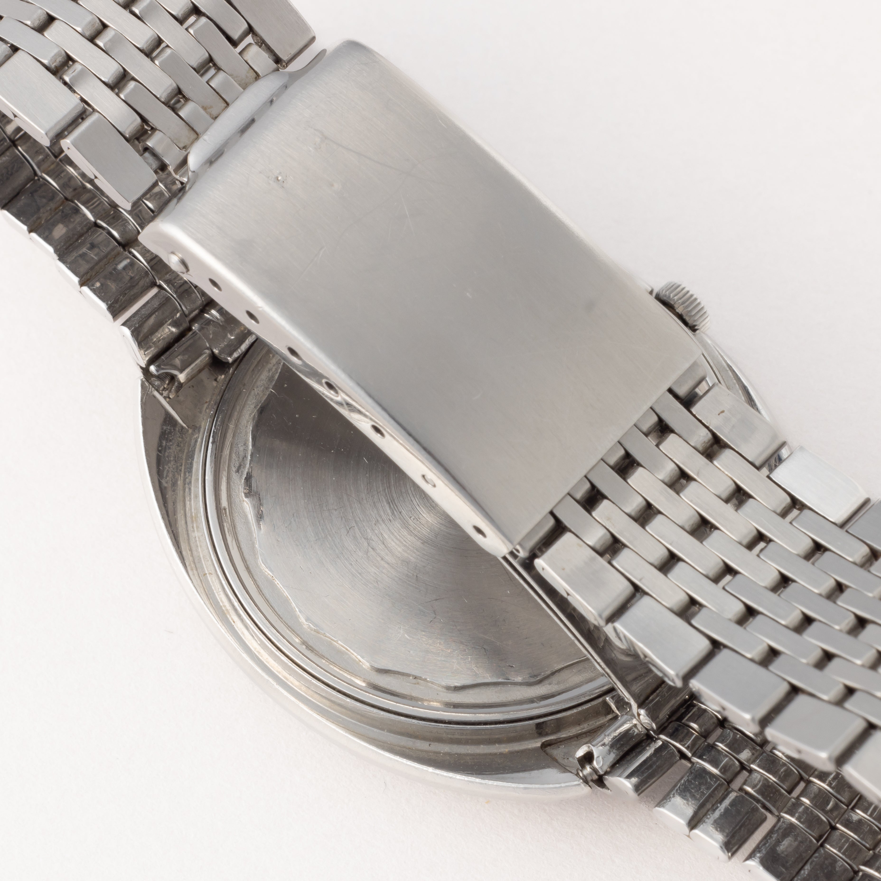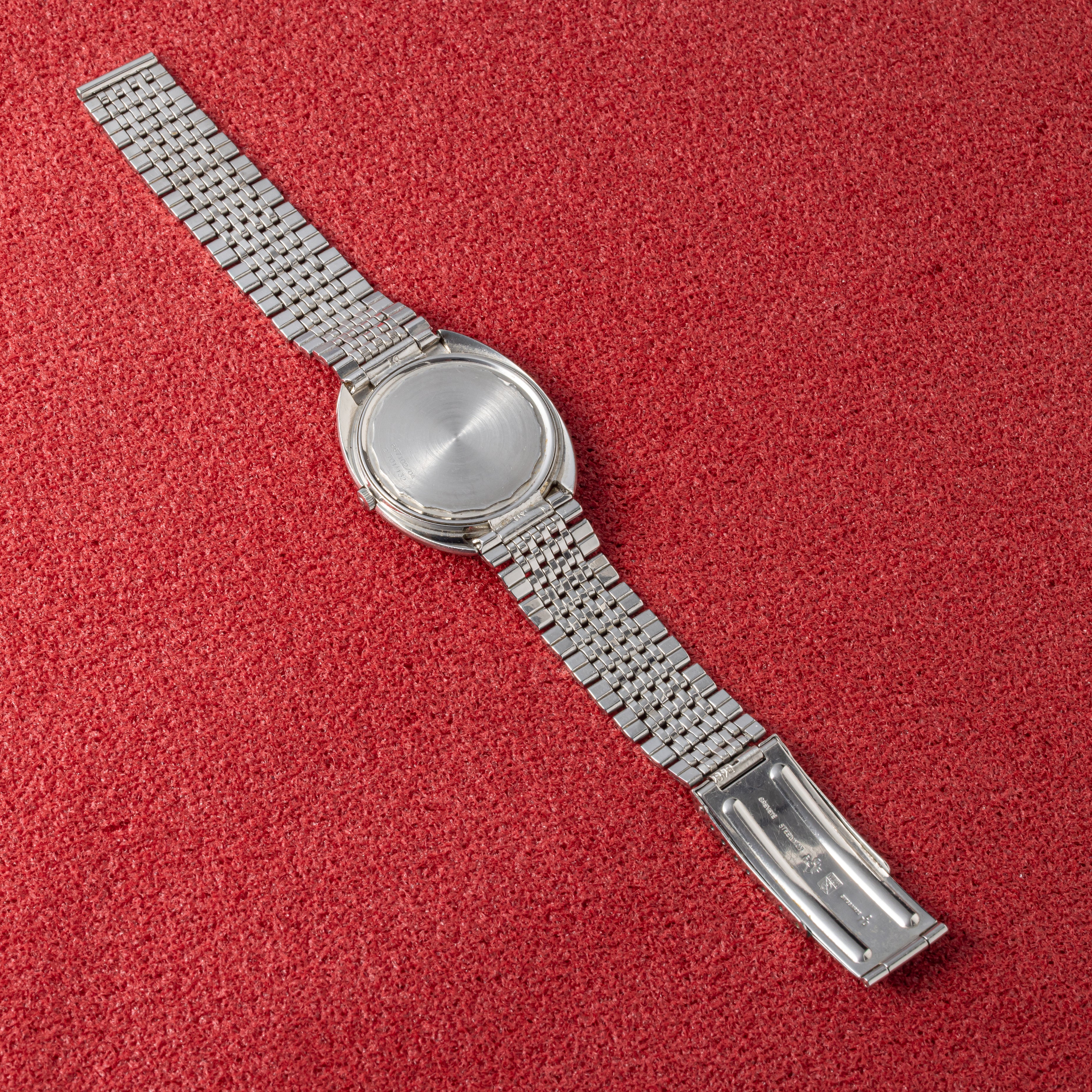 - ヴィンテージ時計の特性上、風防・パッキン・リューズ・バネ棒などの消耗部品は後年メンテナンス過程で交換されている場合がございます。オリジナル性を重視しておりますが、必要に応じて適切な部品にて調整されていますので、よりコレクション性重視のお求めのお客様は事前にご確認ください。