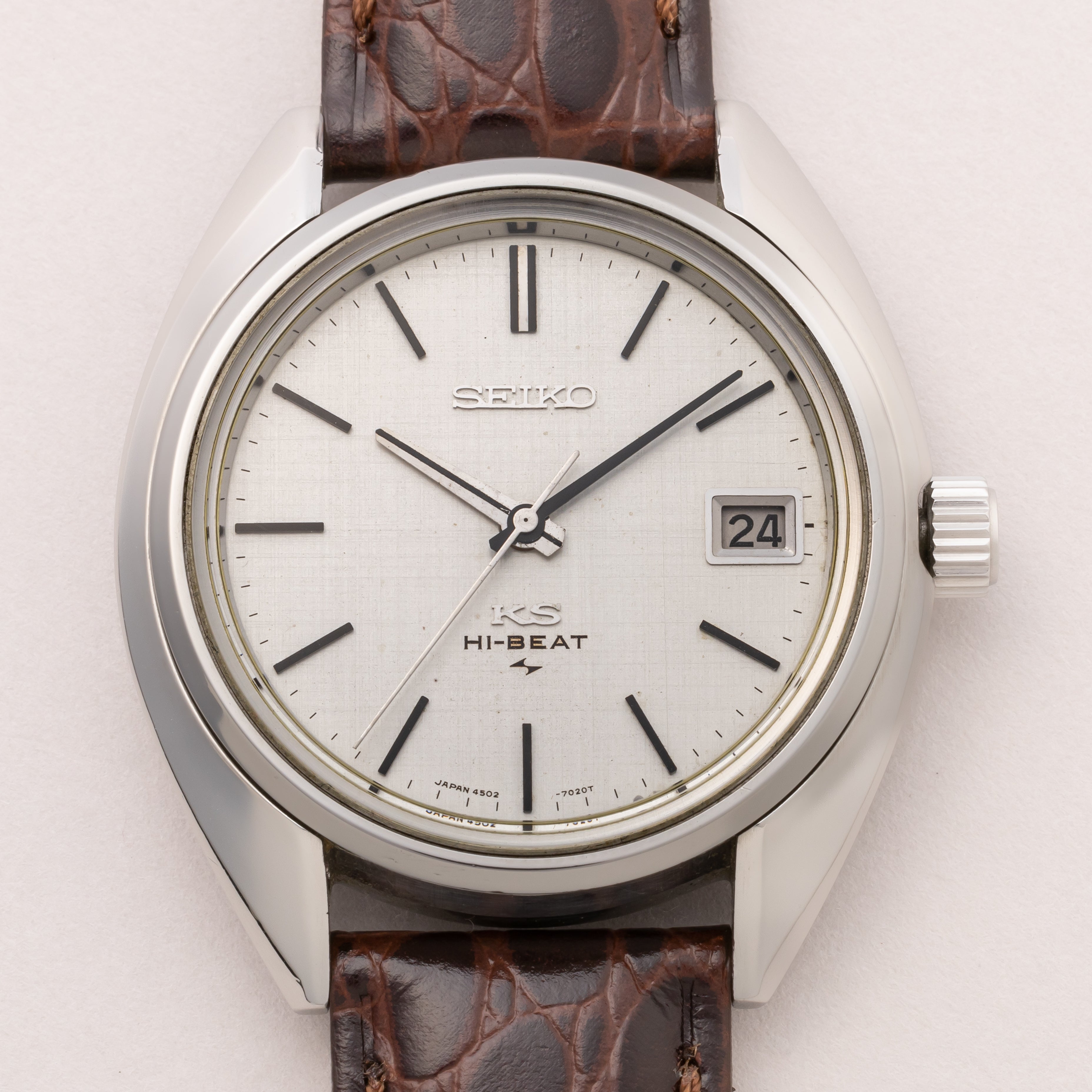 - ヴィンテージ時計の特性上、風防・パッキン・リューズ・バネ棒などの消耗部品は後年メンテナンス過程で交換されている場合がございます。オリジナル性を重視しておりますが、必要に応じて適切な部品にて調整されていますので、よりコレクション性重視のお求めのお客様は事前にご確認ください。