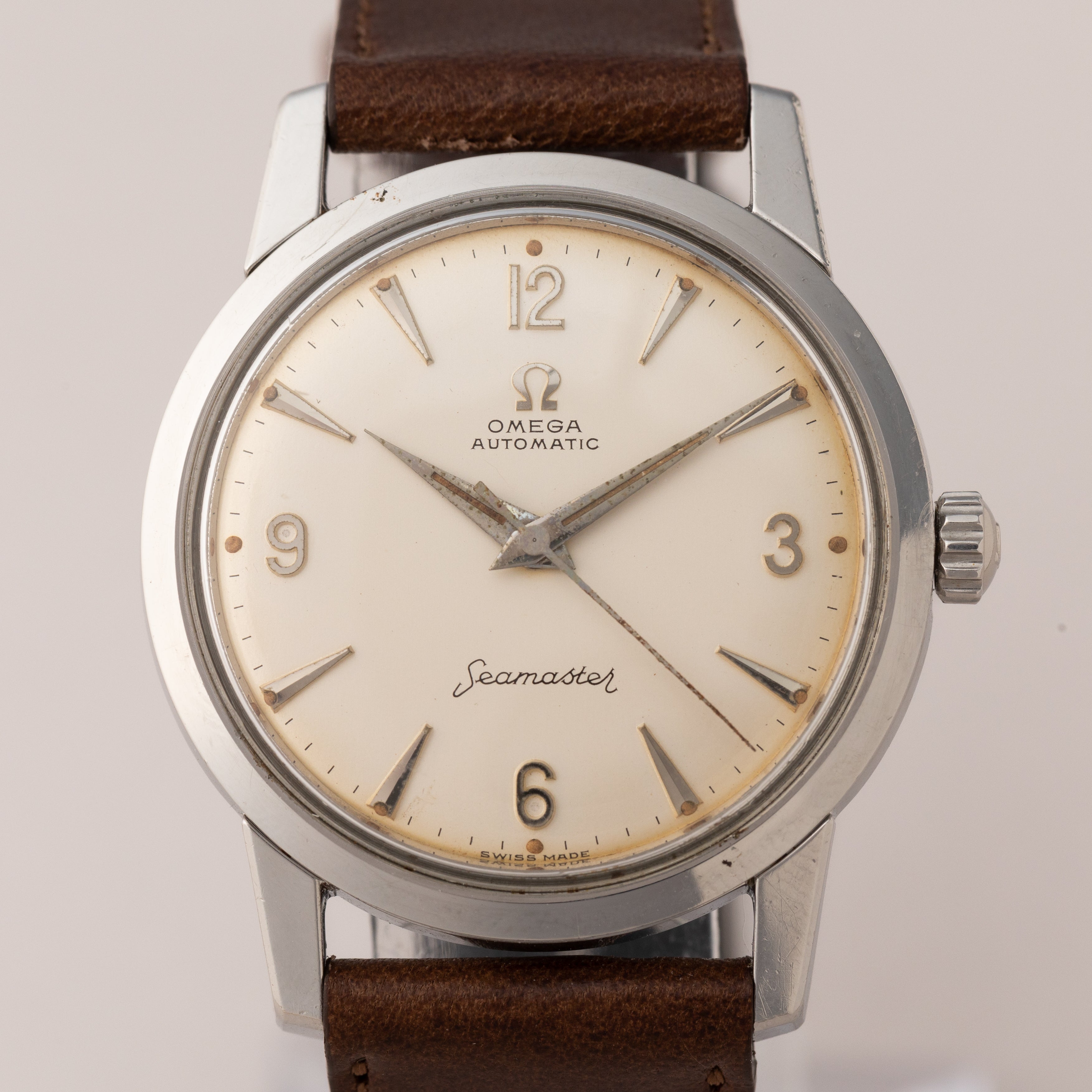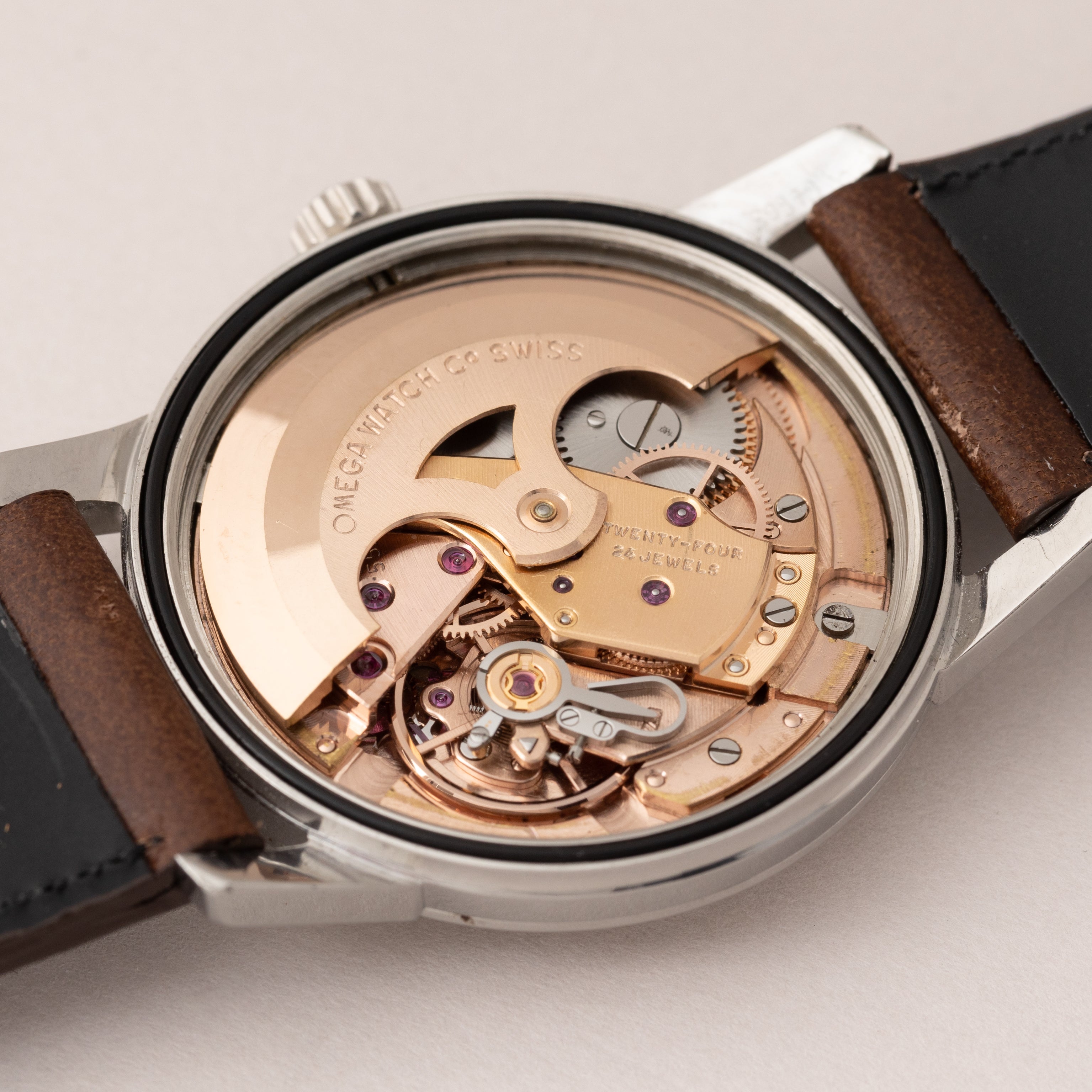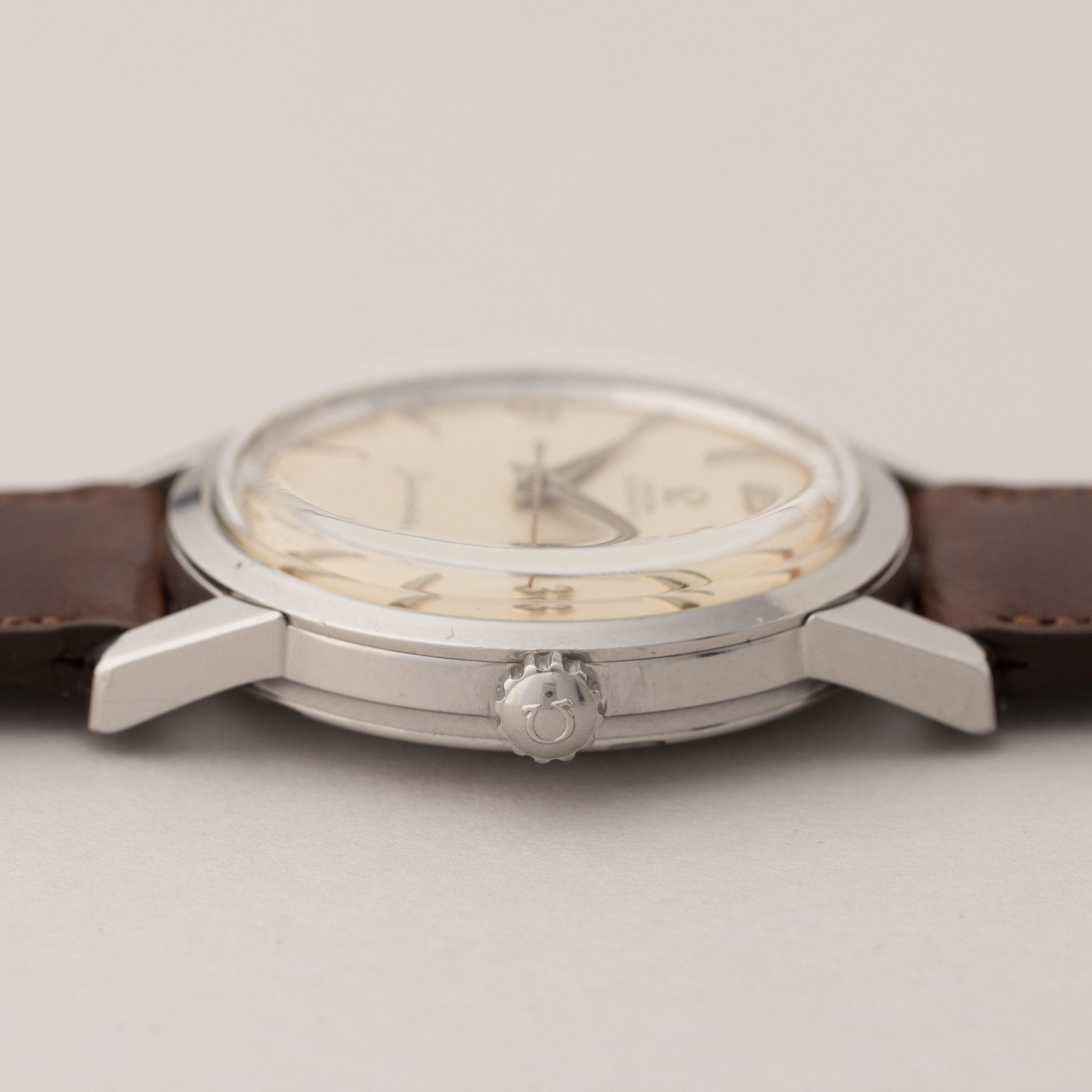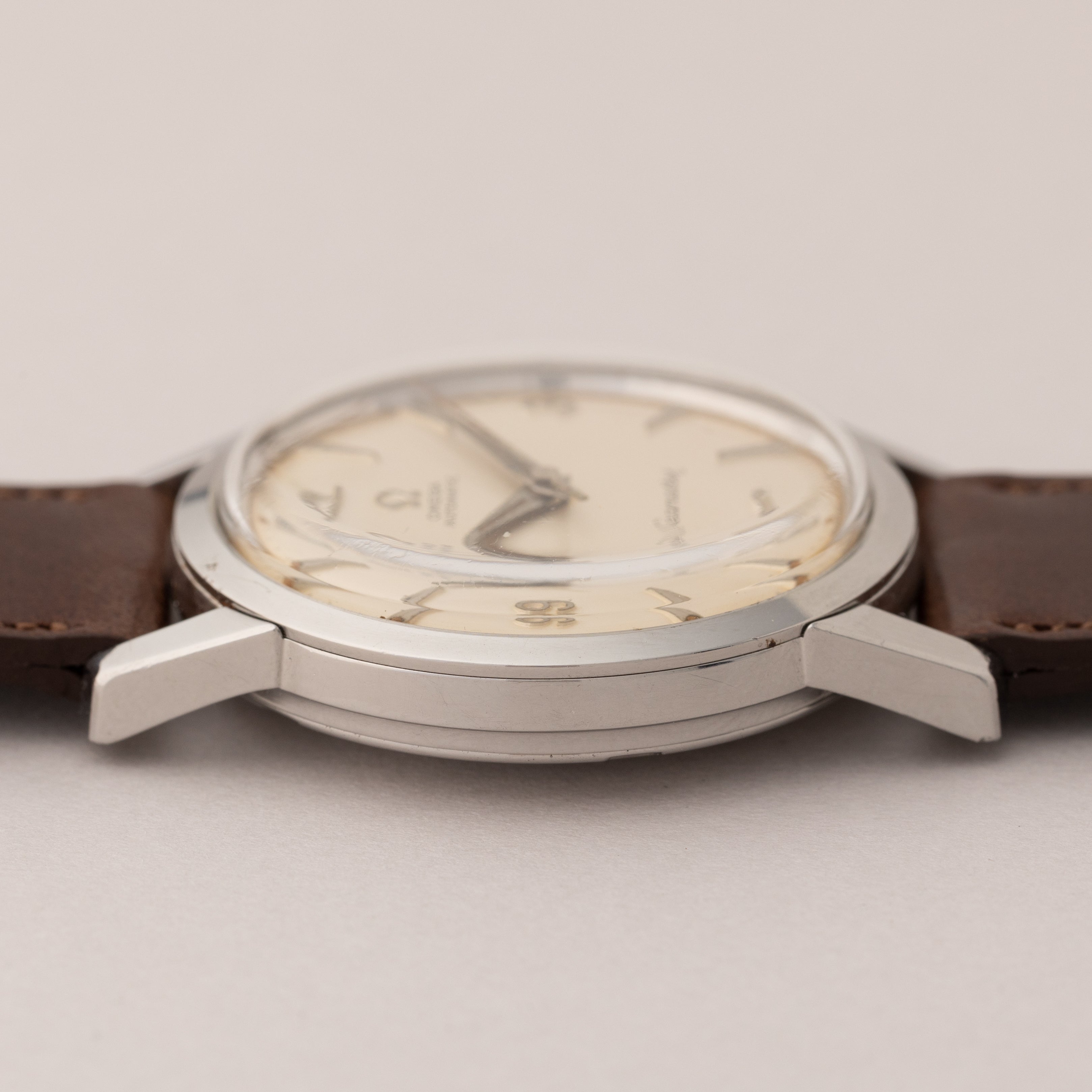 - ヴィンテージ時計の特性上、風防・パッキン・リューズ・バネ棒などの消耗部品は後年メンテナンス過程で交換されている場合がございます。オリジナル性を重視しておりますが、必要に応じて適切な部品にて調整されていますので、よりコレクション性重視のお求めのお客様は事前にご確認ください。