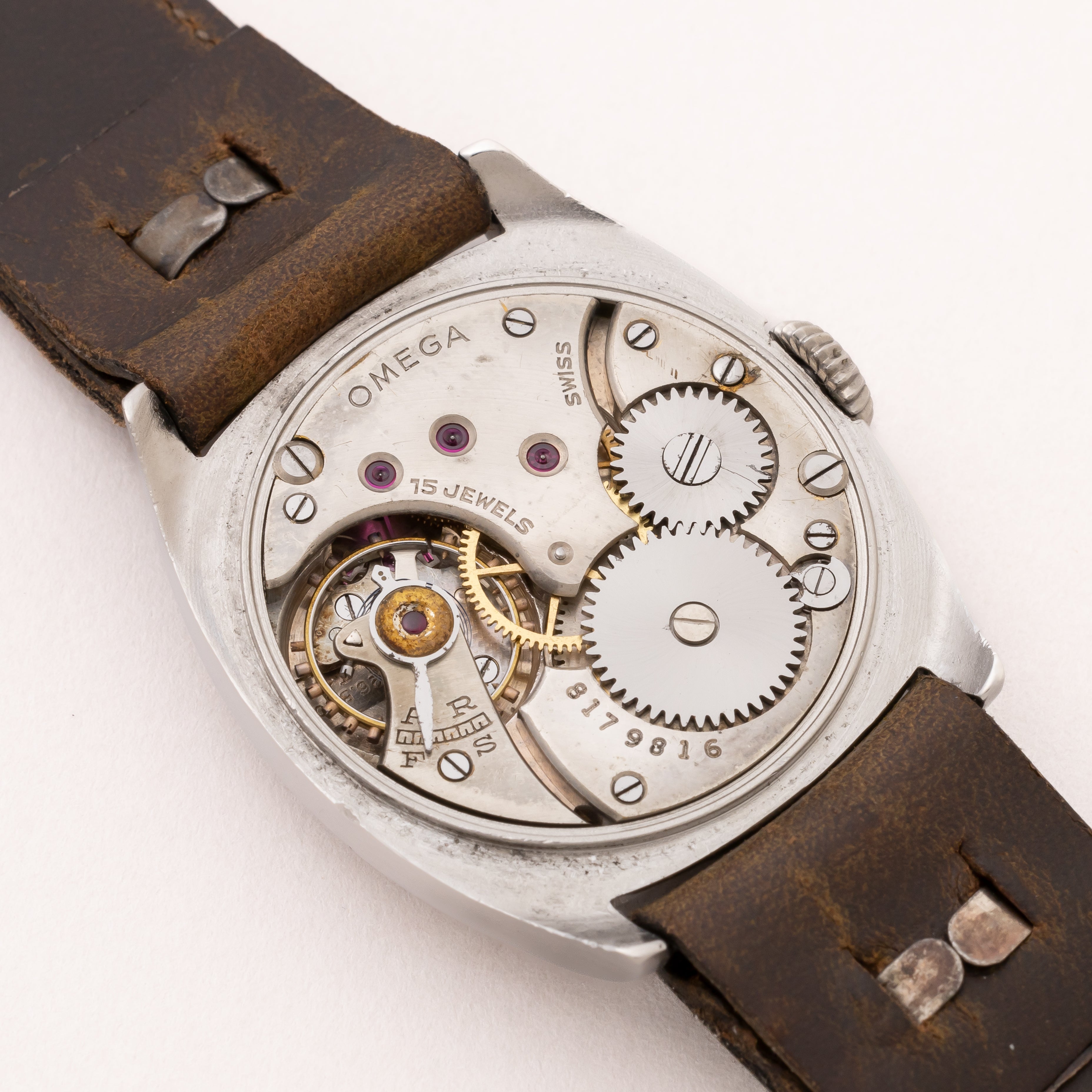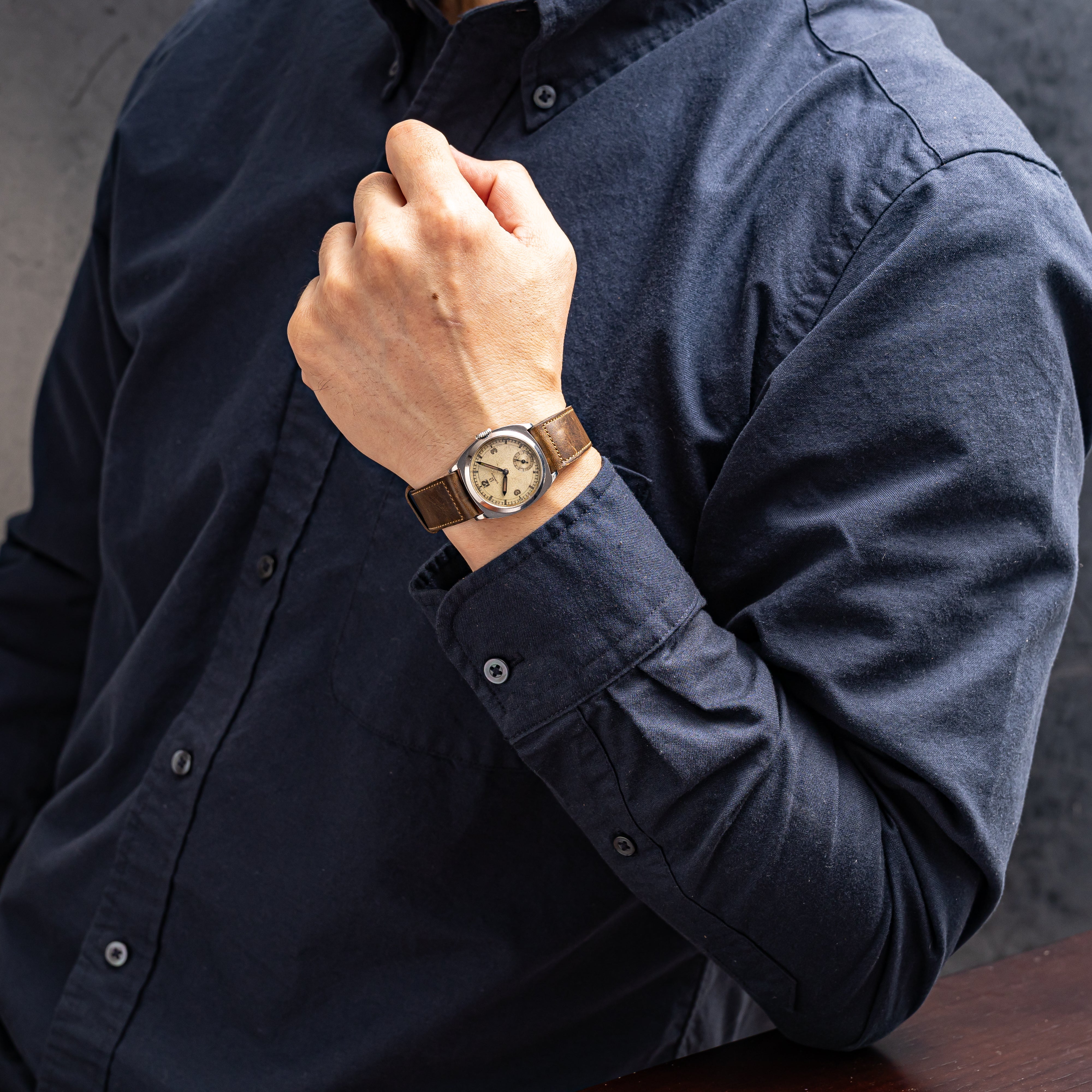 - ヴィンテージ時計の特性上、風防・パッキン・リューズ・バネ棒などの消耗部品は後年メンテナンス過程で交換されている場合がございます。オリジナル性を重視しておりますが、必要に応じて適切な部品にて調整されていますので、よりコレクション性重視のお求めのお客様は事前にご確認ください。