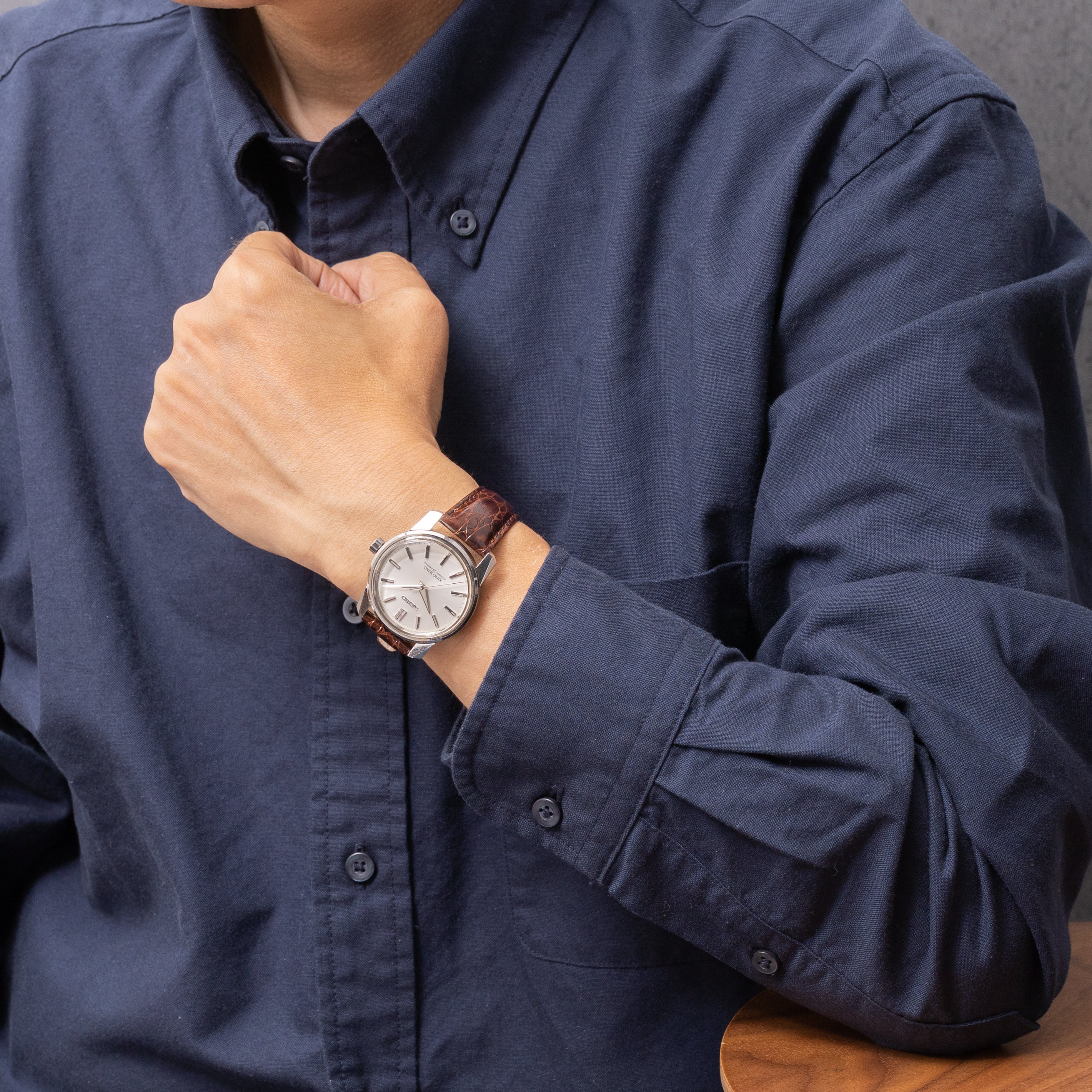 - ヴィンテージ時計の特性上、風防・パッキン・リューズ・バネ棒などの消耗部品は後年メンテナンス過程で交換されている場合がございます。オリジナル性を重視しておりますが、必要に応じて適切な部品にて調整されていますので、よりコレクション性重視のお求めのお客様は事前にご確認ください。