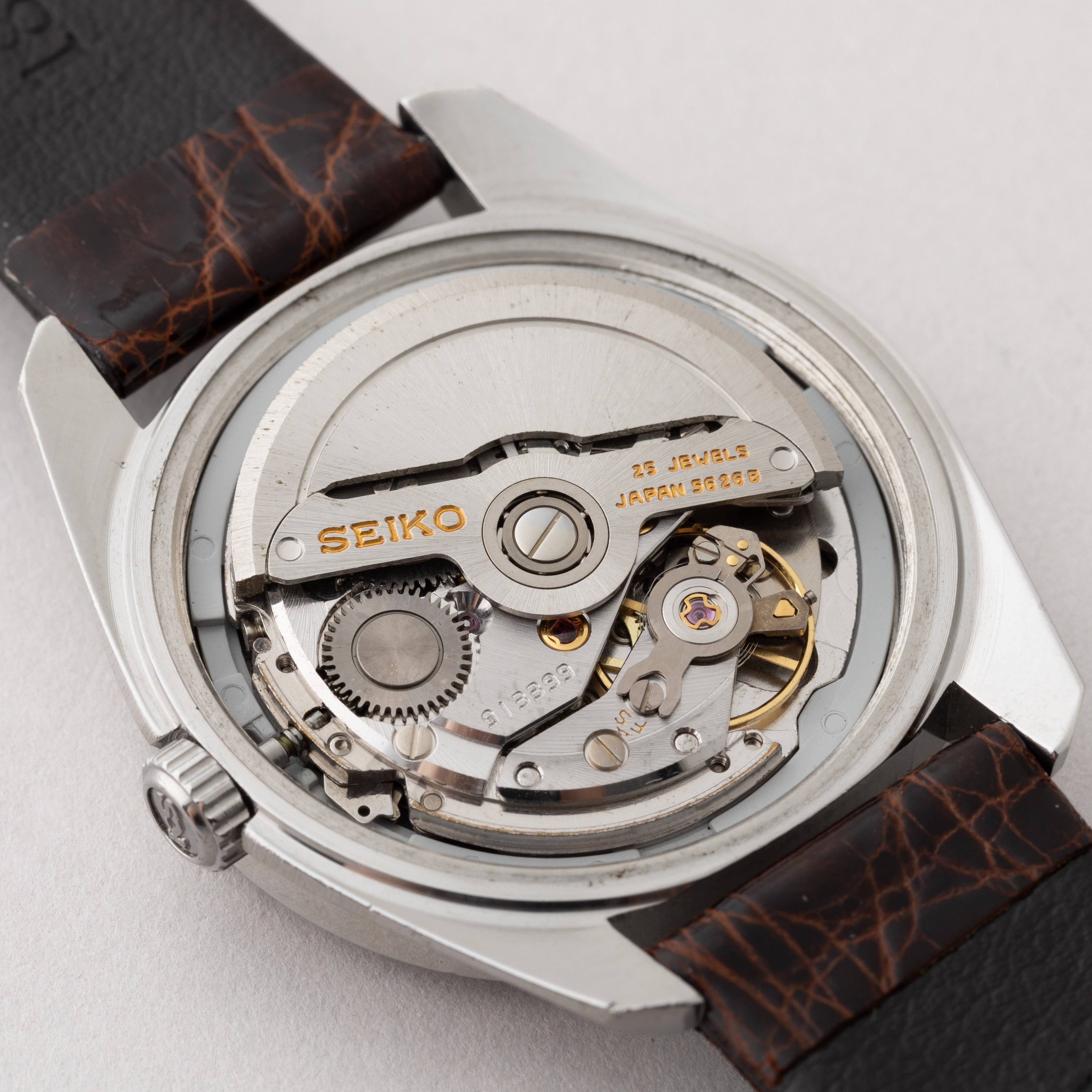 - ヴィンテージ時計の特性上、風防・パッキン・リューズ・バネ棒などの消耗部品は後年メンテナンス過程で交換されている場合がございます。オリジナル性を重視しておりますが、必要に応じて適切な部品にて調整されていますので、よりコレクション性重視のお求めのお客様は事前にご確認ください。
