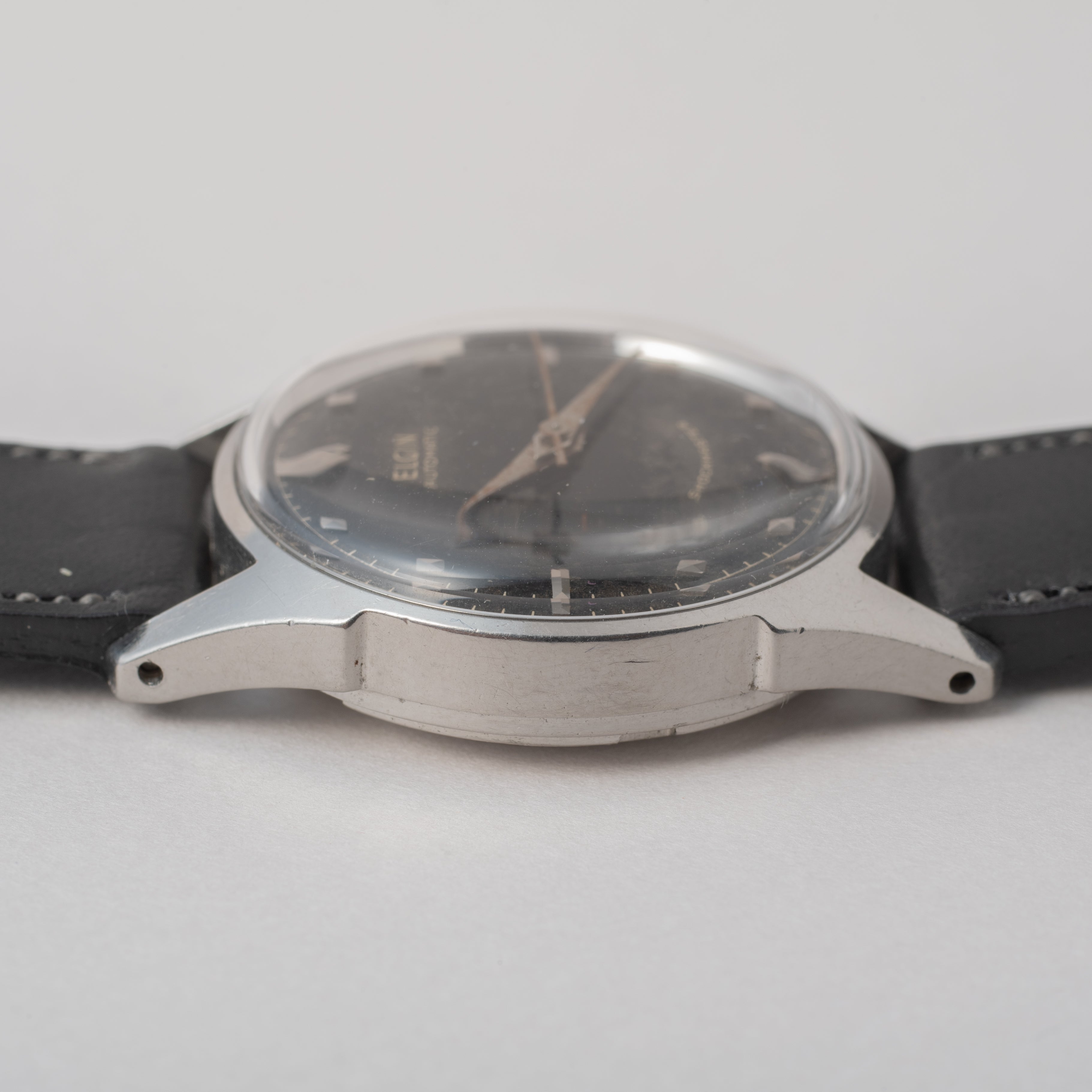- ヴィンテージ時計の特性上、風防・パッキン・リューズ・バネ棒などの消耗部品は後年メンテナンス過程で交換されている場合がございます。オリジナル性を重視しておりますが、必要に応じて適切な部品にて調整されていますので、よりコレクション性重視のお求めのお客様は事前にご確認ください。