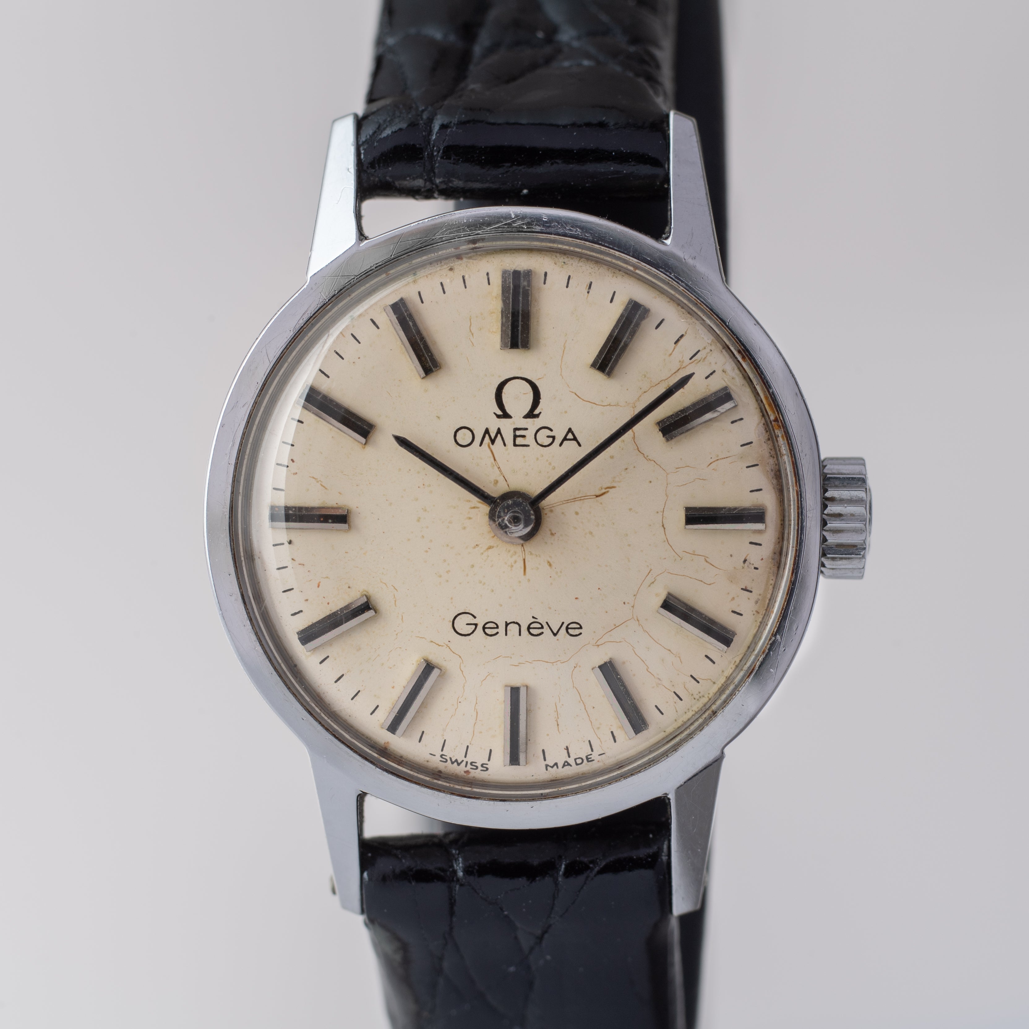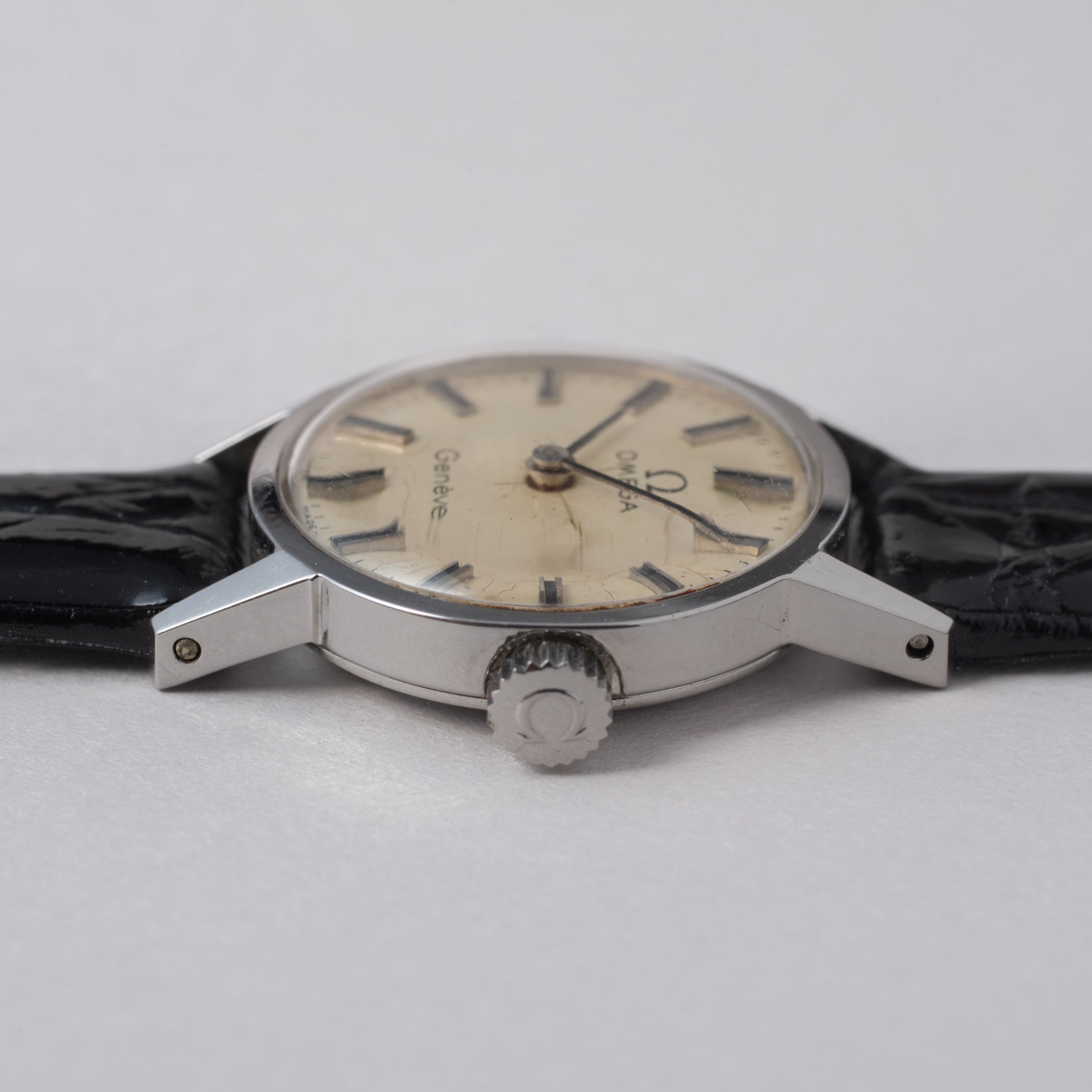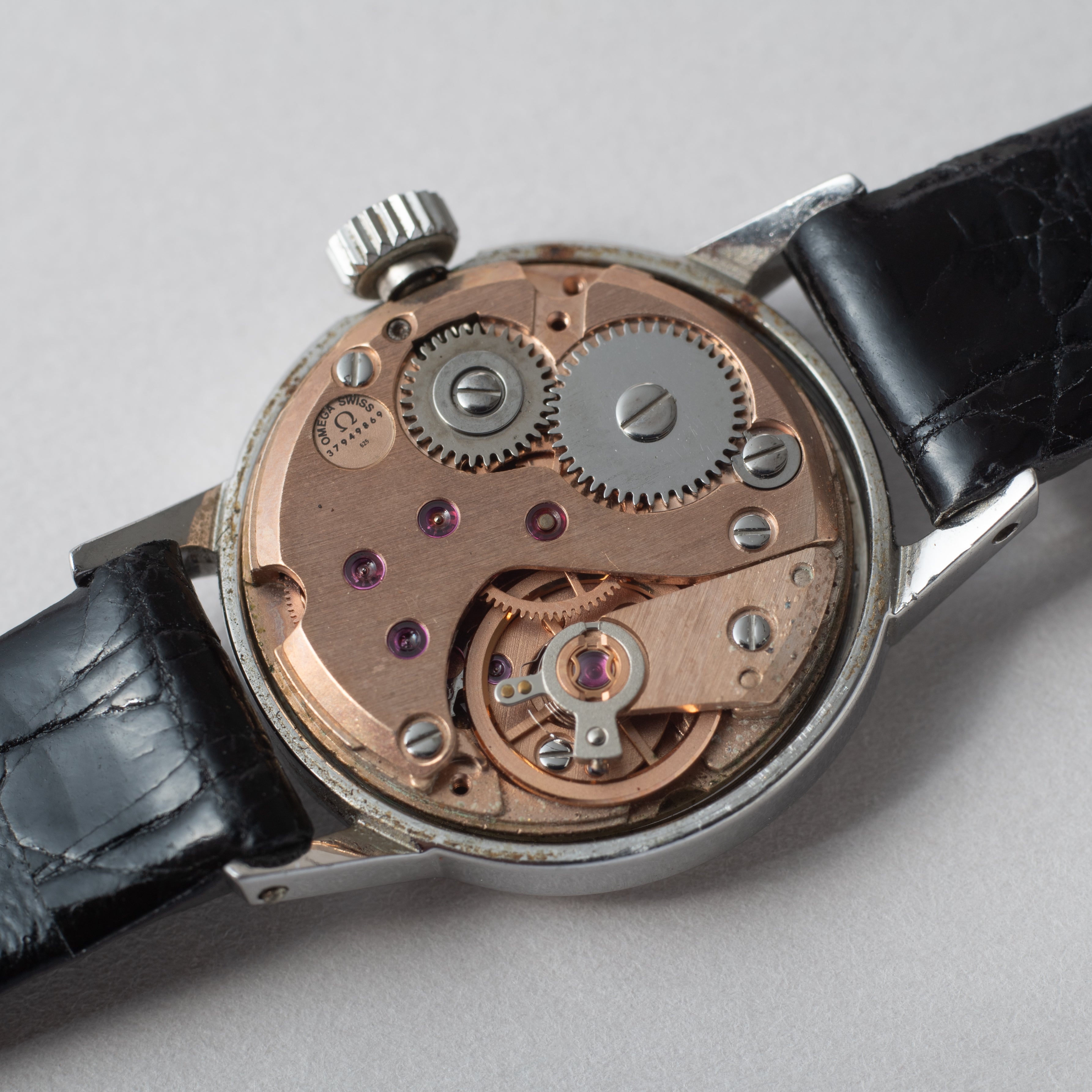 - ヴィンテージ時計の特性上、風防・パッキン・リューズ・バネ棒などの消耗部品は後年メンテナンス過程で交換されている場合がございます。オリジナル性を重視しておりますが、必要に応じて適切な部品にて調整されていますので、よりコレクション性重視のお求めのお客様は事前にご確認ください。