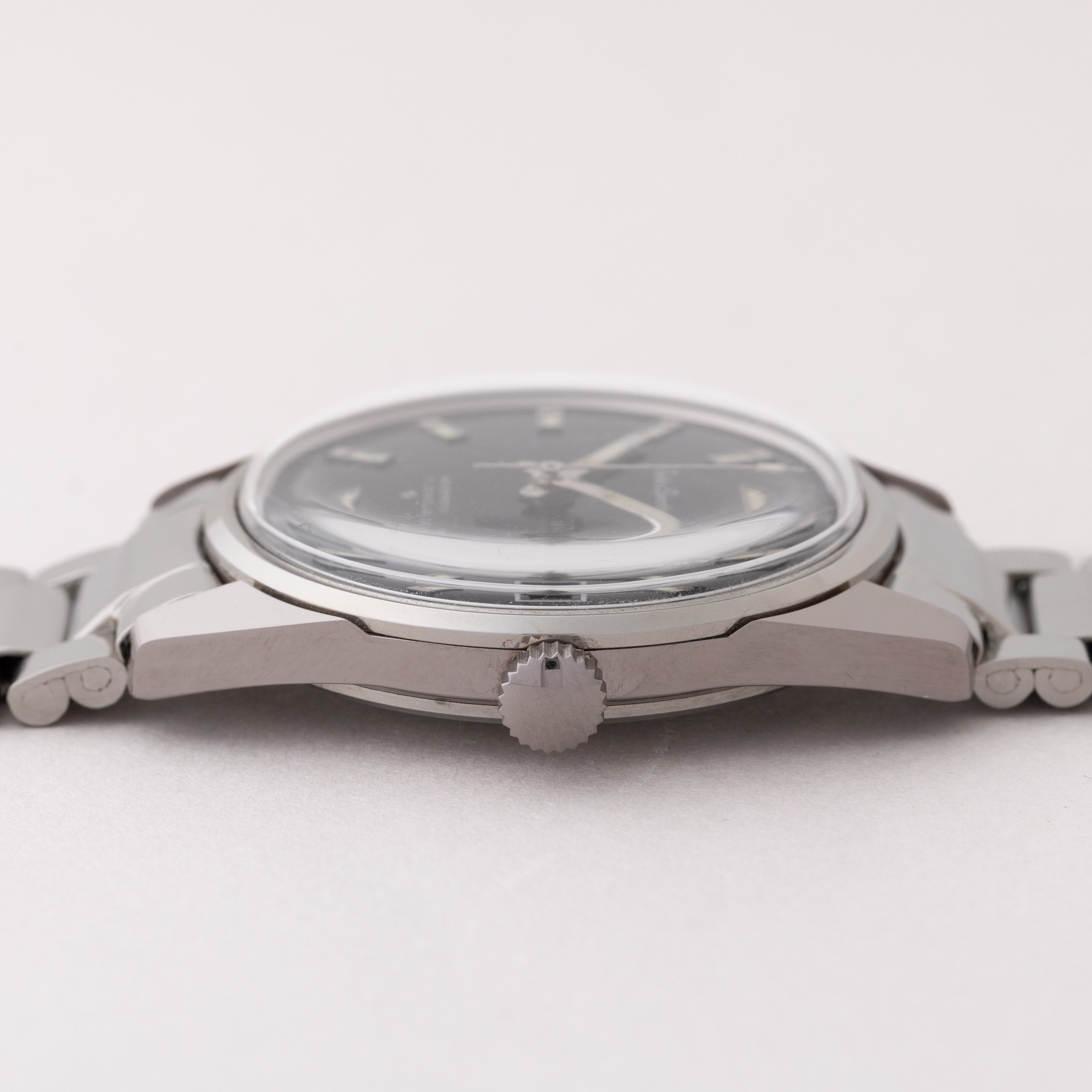 - ヴィンテージ時計の特性上、風防・パッキン・リューズ・バネ棒などの消耗部品は後年メンテナンス過程で交換されている場合がございます。オリジナル性を重視しておりますが、必要に応じて適切な部品にて調整されていますので、よりコレクション性重視のお求めのお客様は事前にご確認ください。