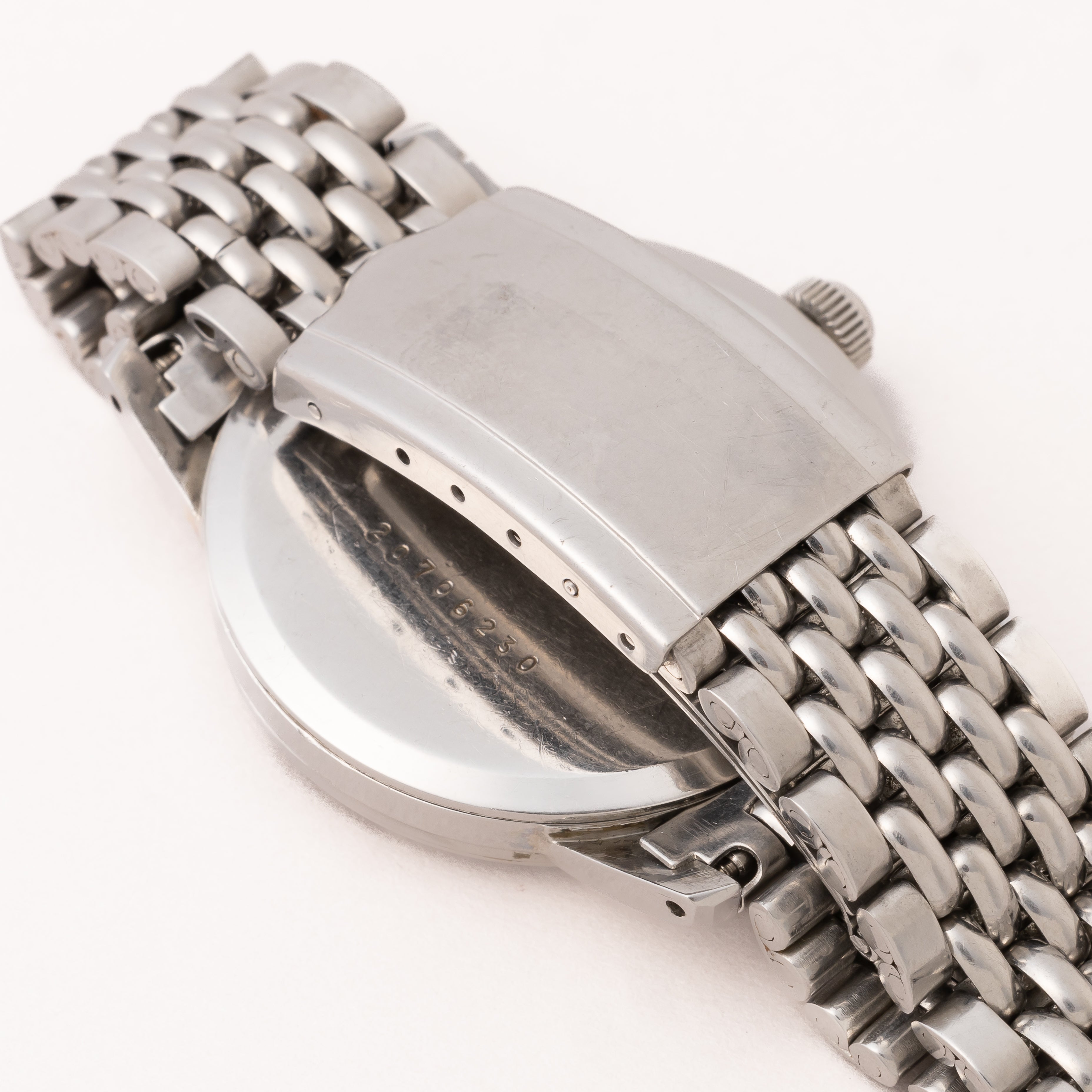 - ヴィンテージ時計の特性上、風防・パッキン・リューズ・バネ棒などの消耗部品は後年メンテナンス過程で交換されている場合がございます。オリジナル性を重視しておりますが、必要に応じて適切な部品にて調整されていますので、よりコレクション性重視のお求めのお客様は事前にご確認ください。
