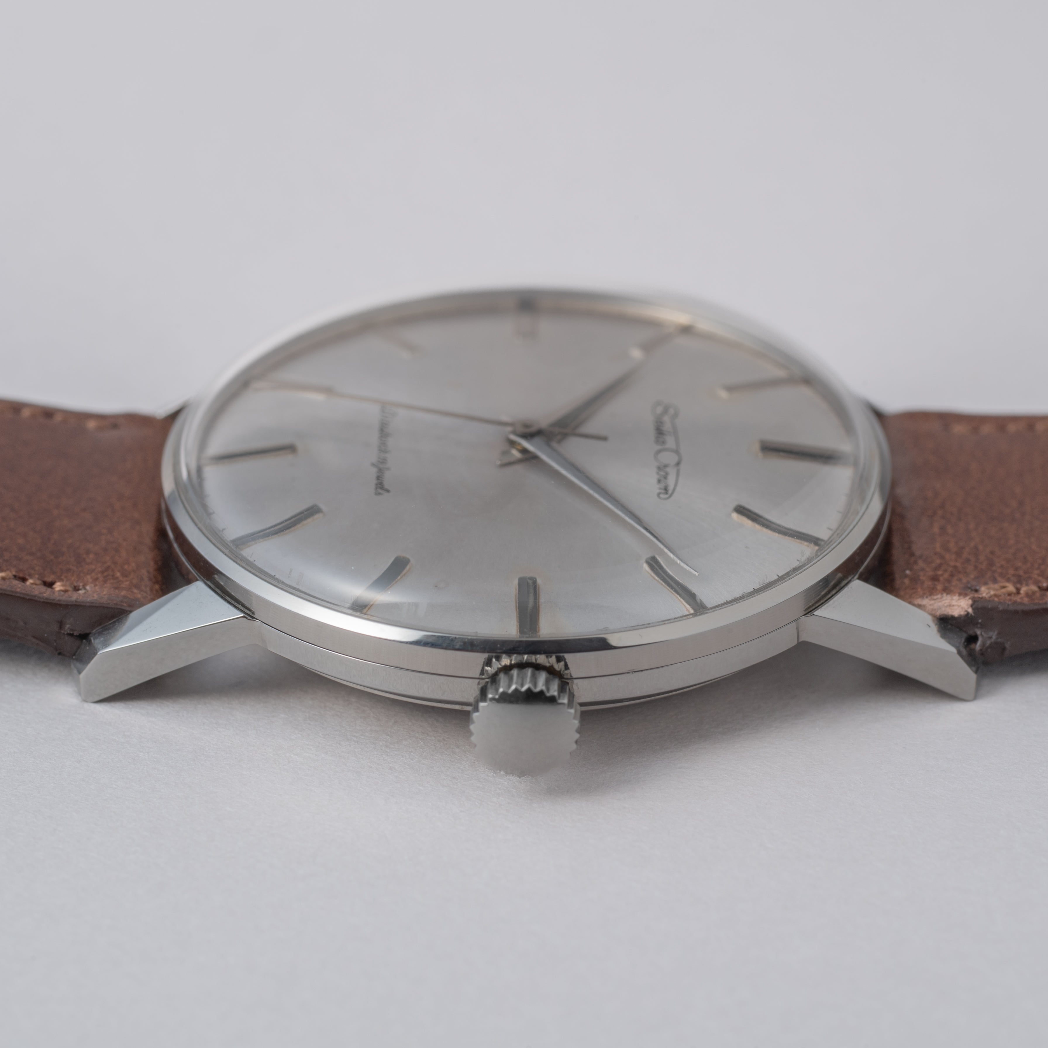 - ヴィンテージ時計の特性上、風防・パッキン・リューズ・バネ棒などの消耗部品は後年メンテナンス過程で交換されている場合がございます。オリジナル性を重視しておりますが、必要に応じて適切な部品にて調整されていますので、よりコレクション性重視のお求めのお客様は事前にご確認ください。