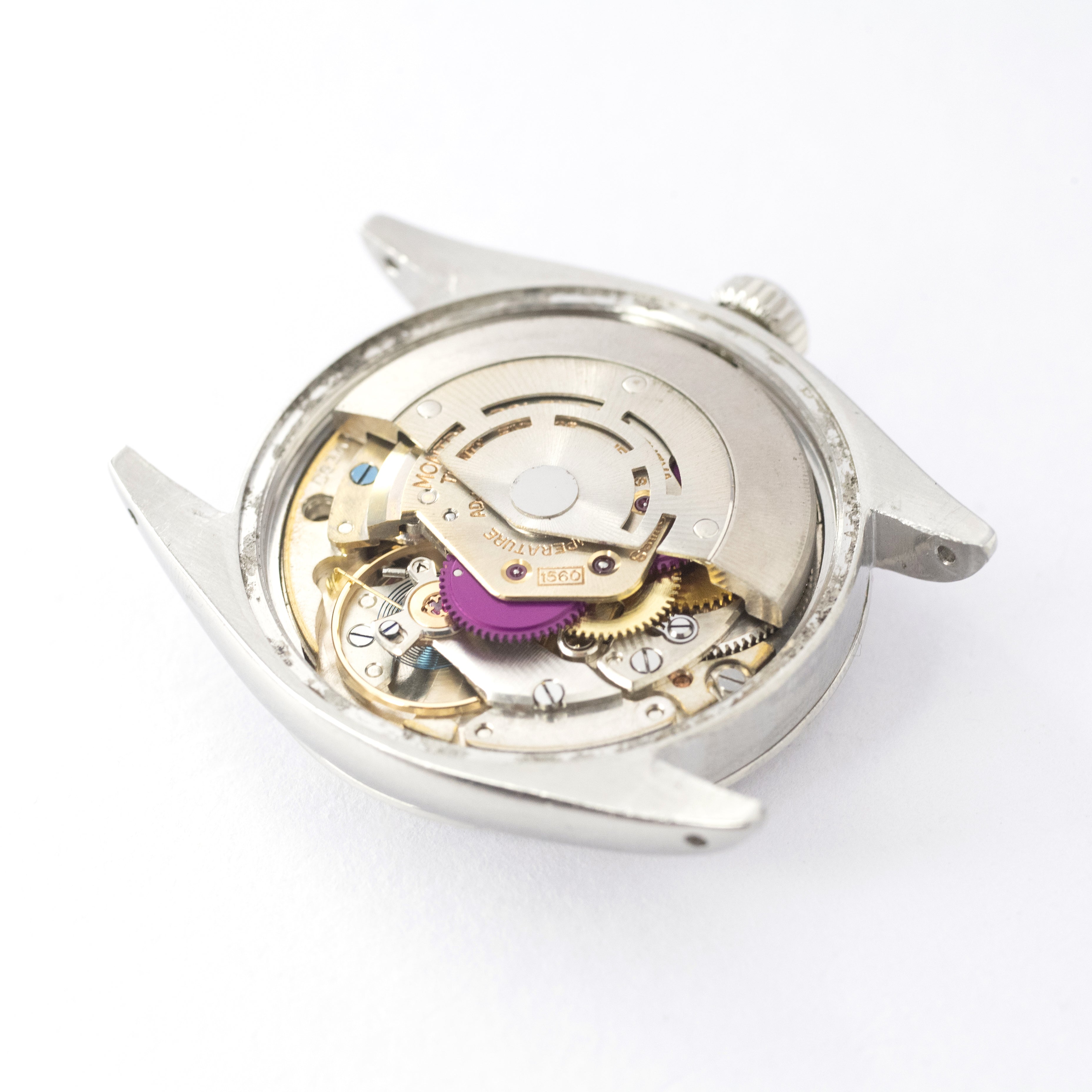 - ヴィンテージ時計の特性上、風防・パッキン・リューズ・バネ棒などの消耗部品は後年メンテナンス過程で交換されている場合がございます。オリジナル性を重視しておりますが、必要に応じて適切な部品にて調整されていますので、よりコレクション性重視のお求めのお客様は事前にご確認ください。