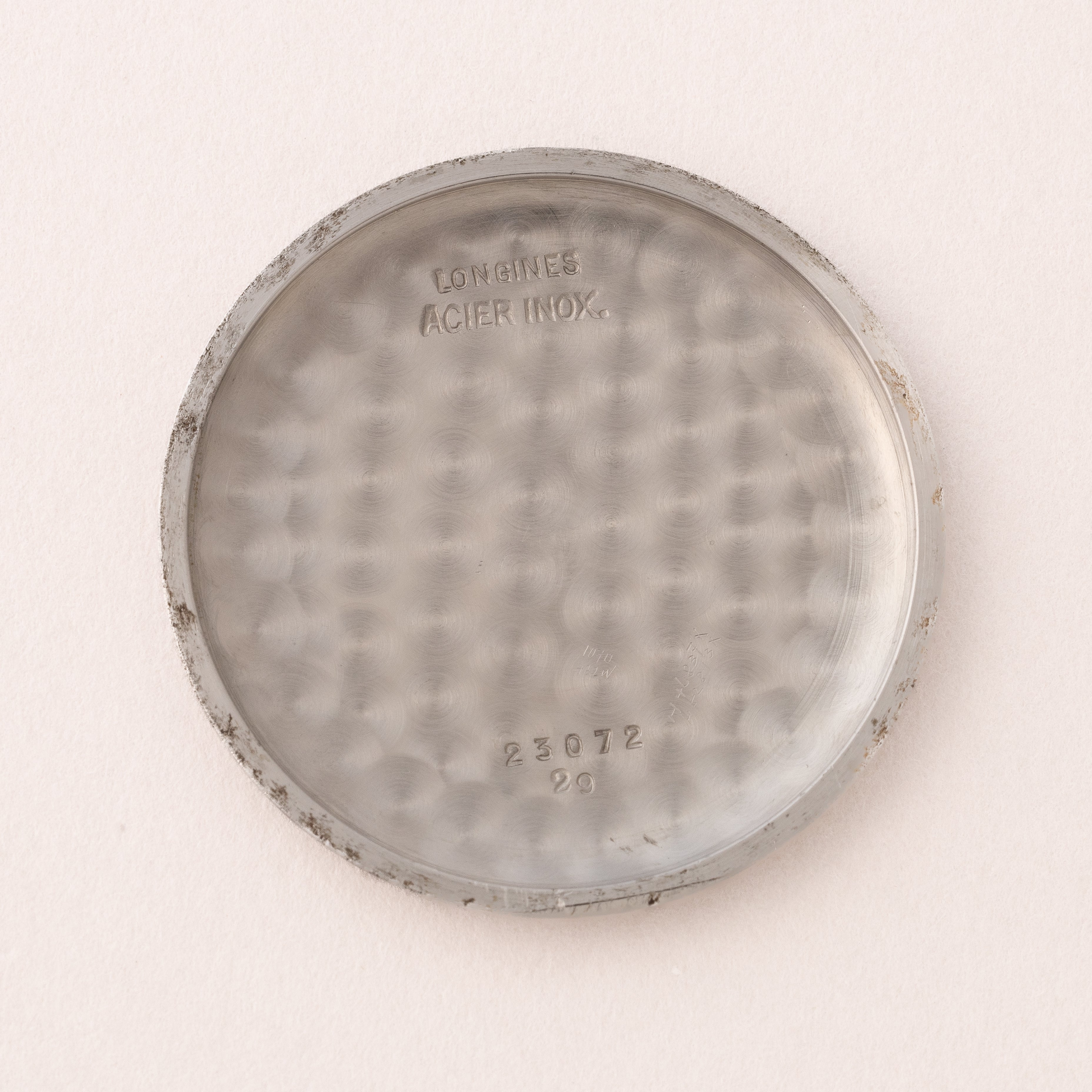 - ヴィンテージ時計の特性上、風防・パッキン・リューズ・バネ棒などの消耗部品は後年メンテナンス過程で交換されている場合がございます。オリジナル性を重視しておりますが、必要に応じて適切な部品にて調整されていますので、よりコレクション性重視のお求めのお客様は事前にご確認ください。