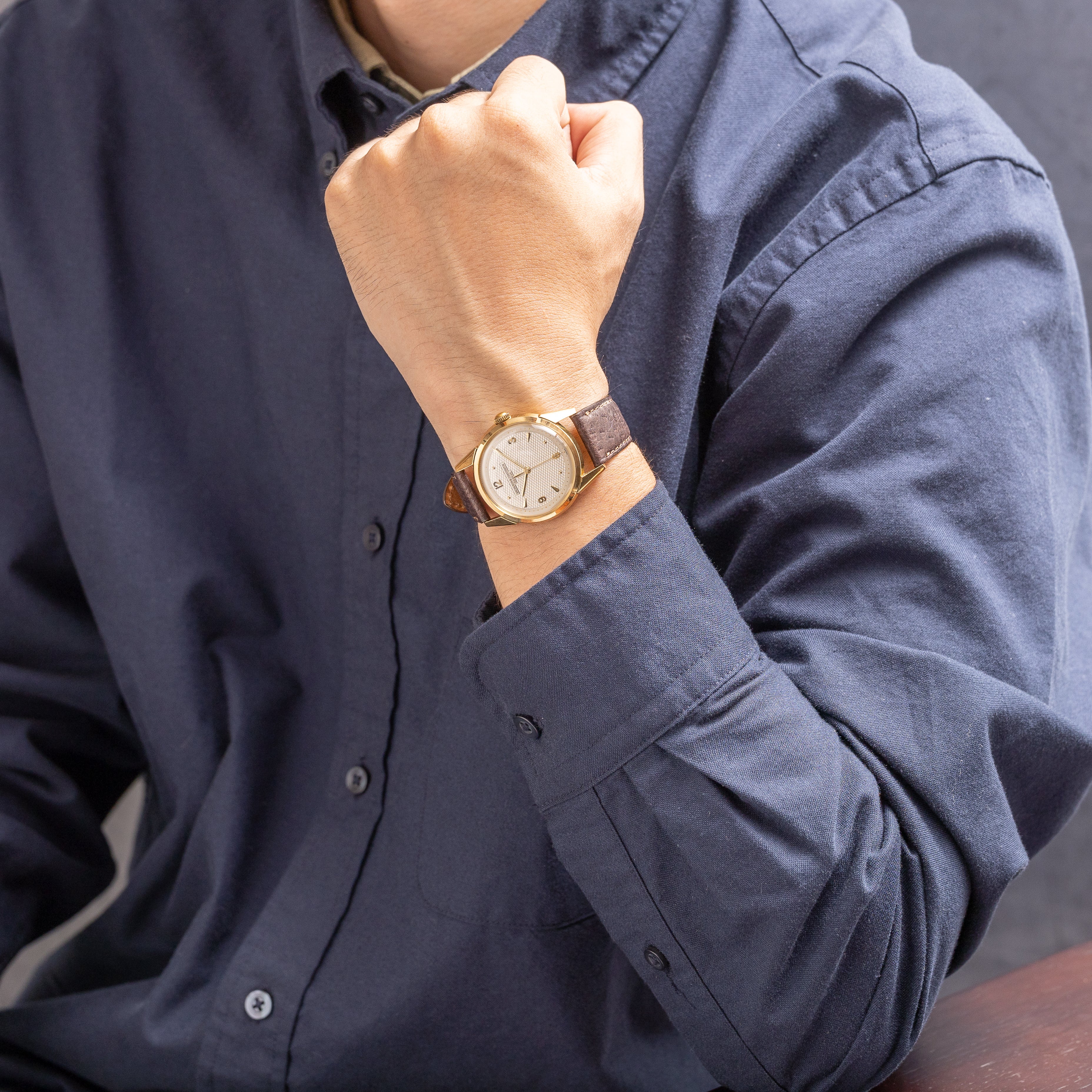 - ヴィンテージ時計の特性上、風防・パッキン・リューズ・バネ棒などの消耗部品は後年メンテナンス過程で交換されている場合がございます。オリジナル性を重視しておりますが、必要に応じて適切な部品にて調整されていますので、よりコレクション性重視のお求めのお客様は事前にご確認ください。