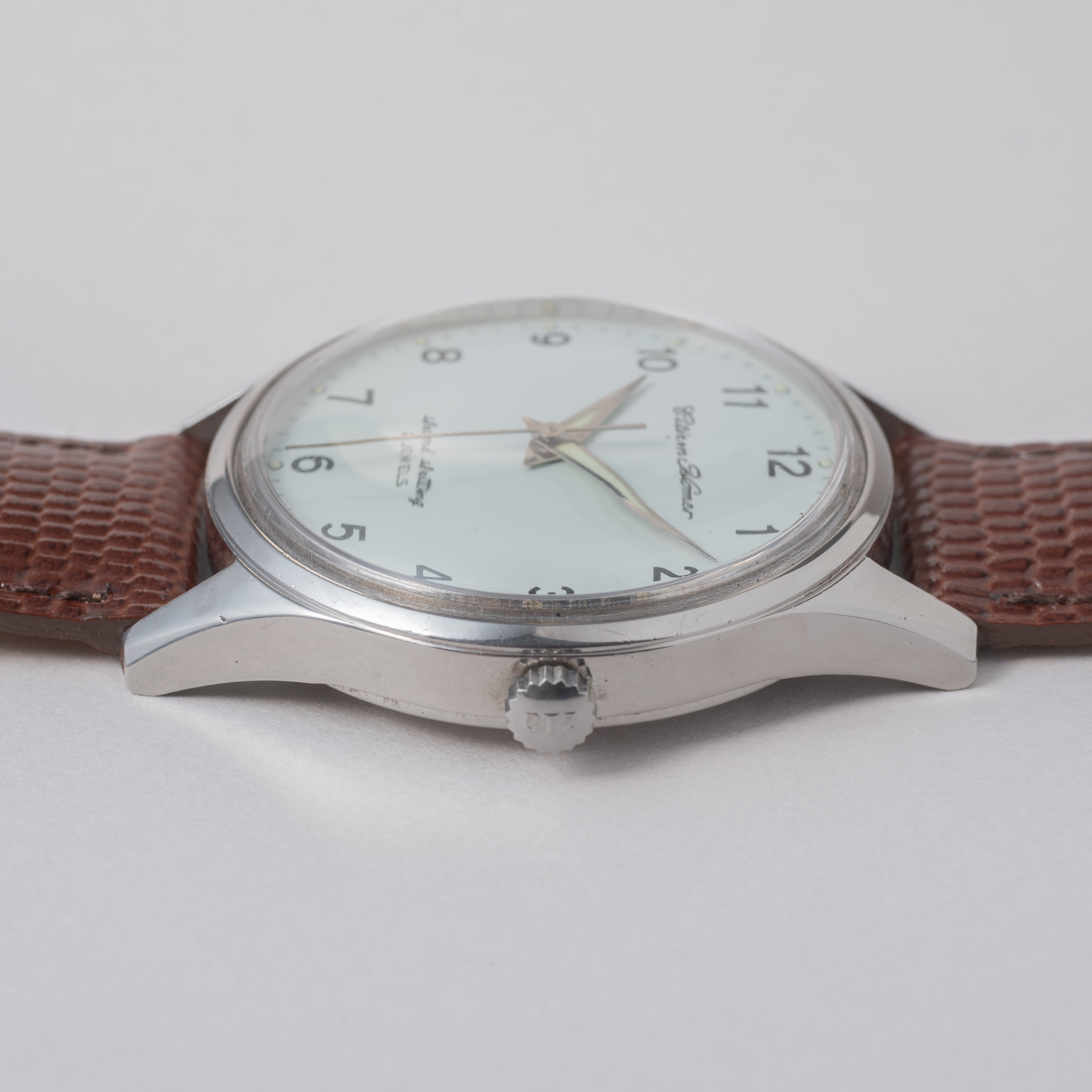 - ヴィンテージ時計の特性上、風防・パッキン・リューズ・バネ棒などの消耗部品は後年メンテナンス過程で交換されている場合がございます。オリジナル性を重視しておりますが、必要に応じて適切な部品にて調整されていますので、よりコレクション性重視のお求めのお客様は事前にご確認ください。