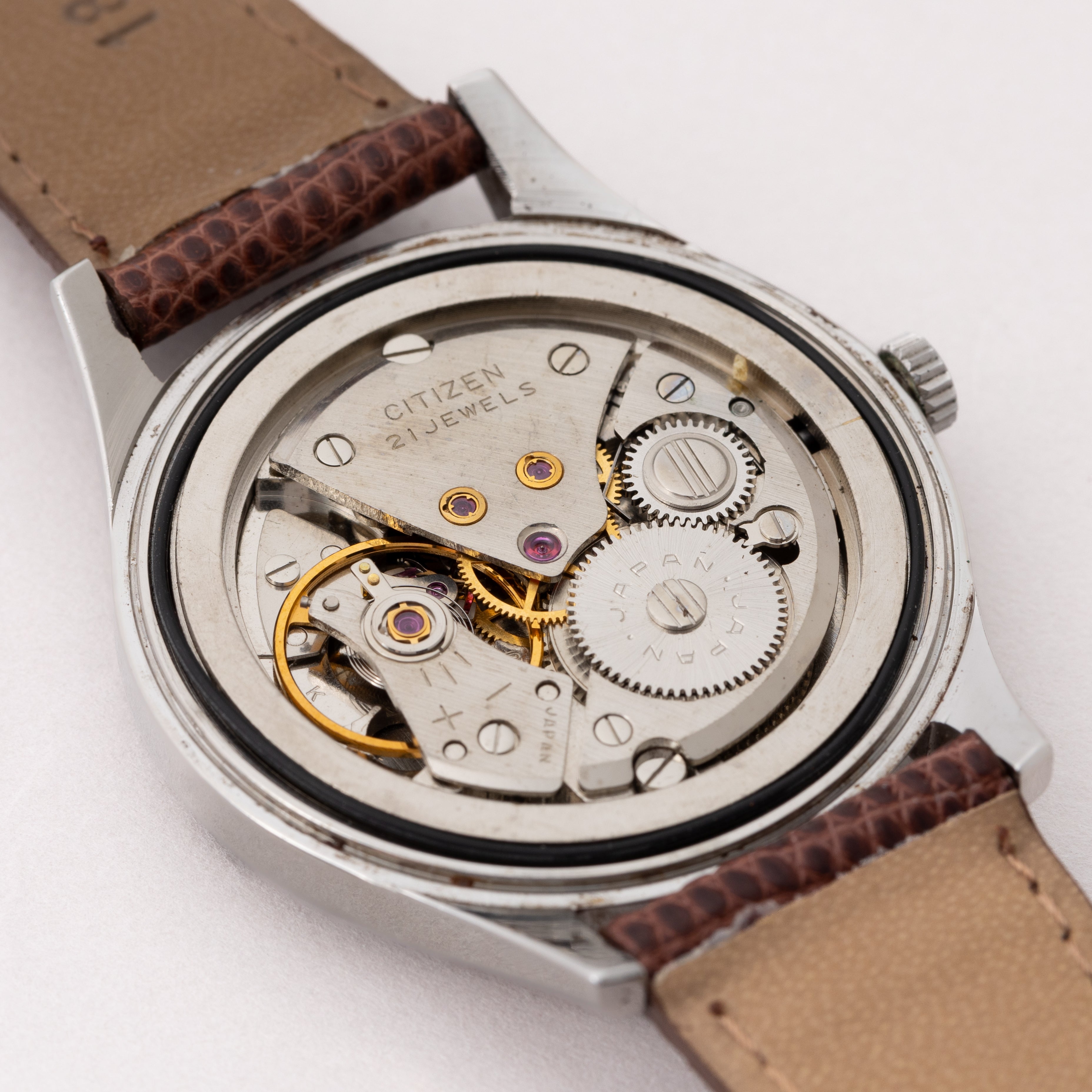 - ヴィンテージ時計の特性上、風防・パッキン・リューズ・バネ棒などの消耗部品は後年メンテナンス過程で交換されている場合がございます。オリジナル性を重視しておりますが、必要に応じて適切な部品にて調整されていますので、よりコレクション性重視のお求めのお客様は事前にご確認ください。