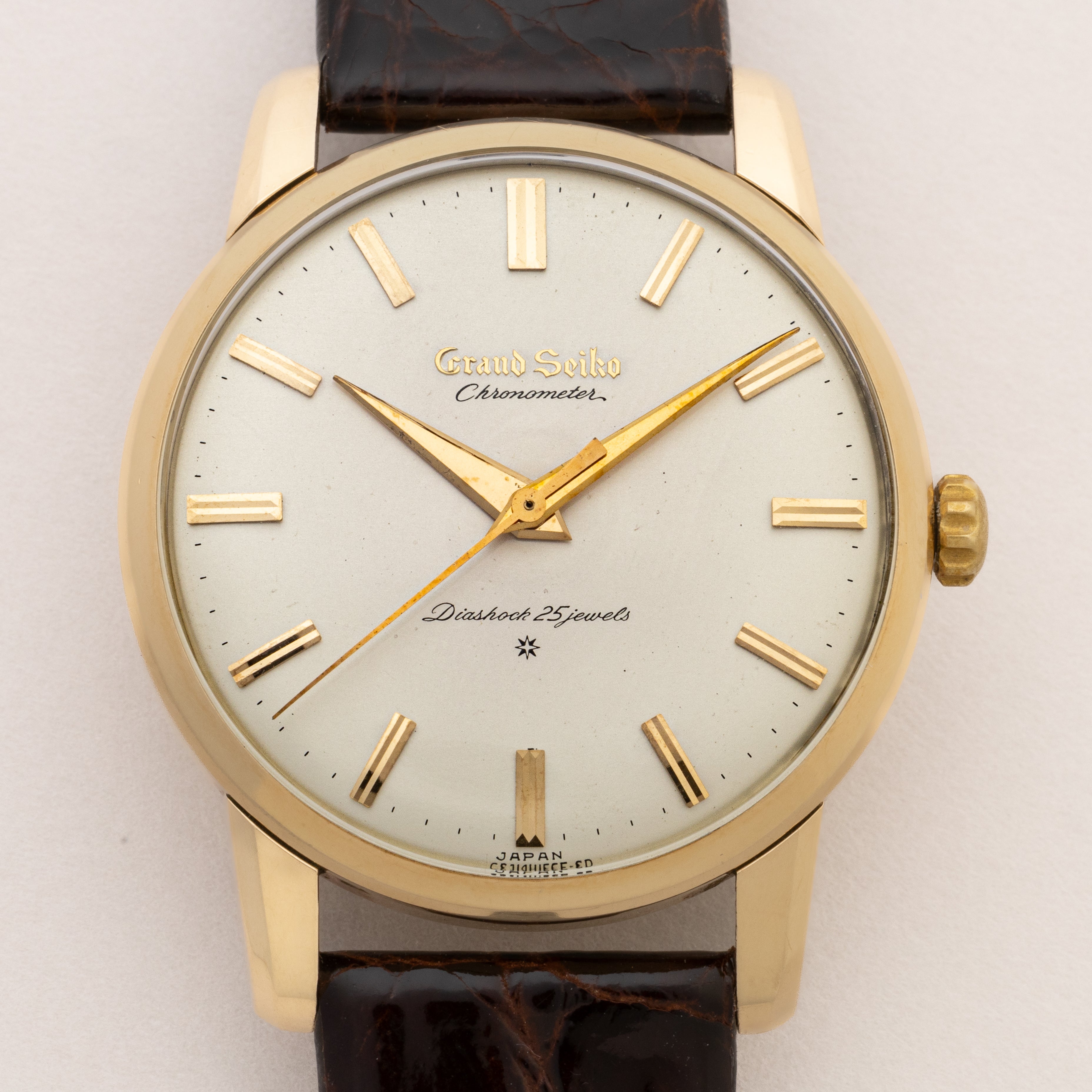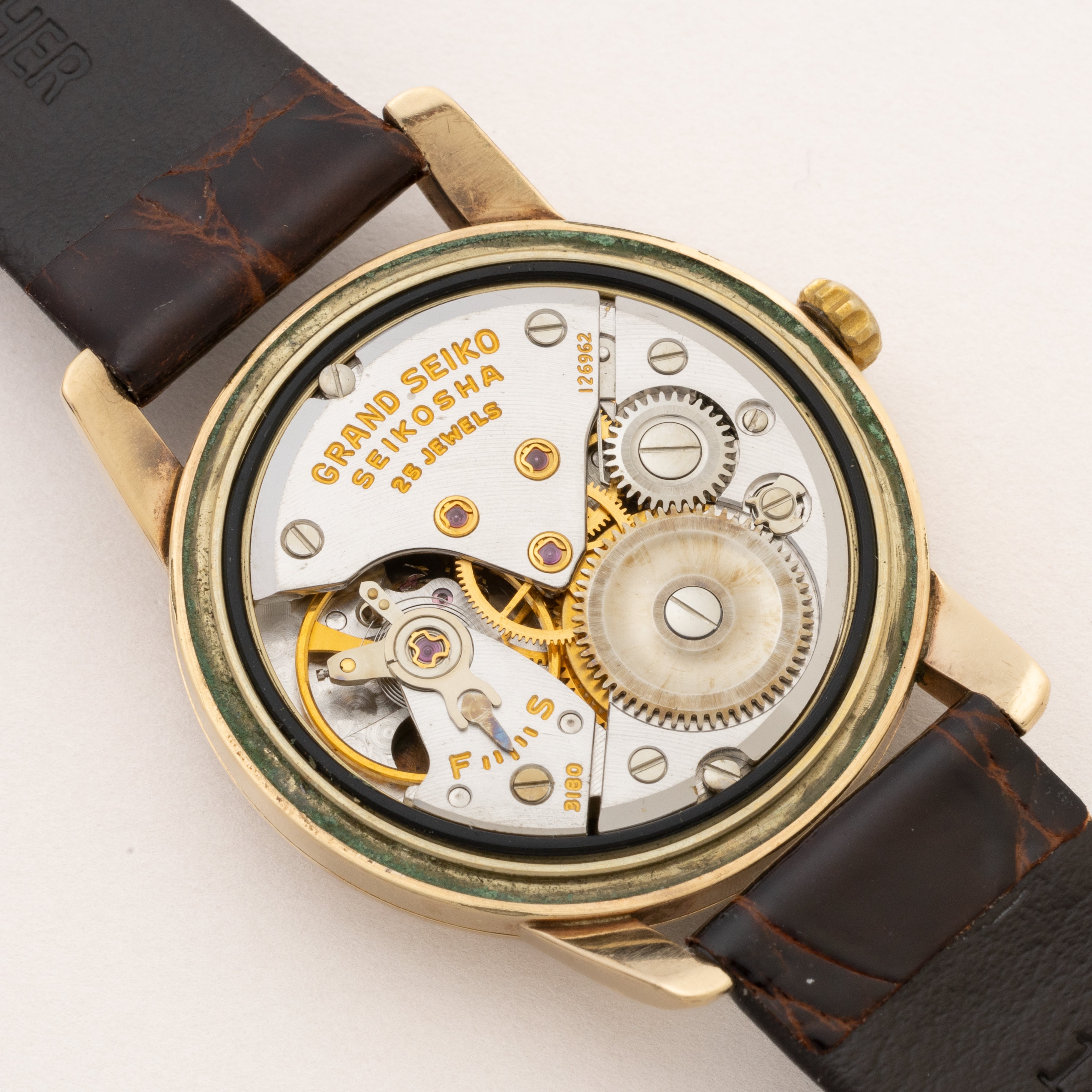 - ヴィンテージ時計の特性上、風防・パッキン・リューズ・バネ棒などの消耗部品は後年メンテナンス過程で交換されている場合がございます。オリジナル性を重視しておりますが、必要に応じて適切な部品にて調整されていますので、よりコレクション性重視のお求めのお客様は事前にご確認ください。