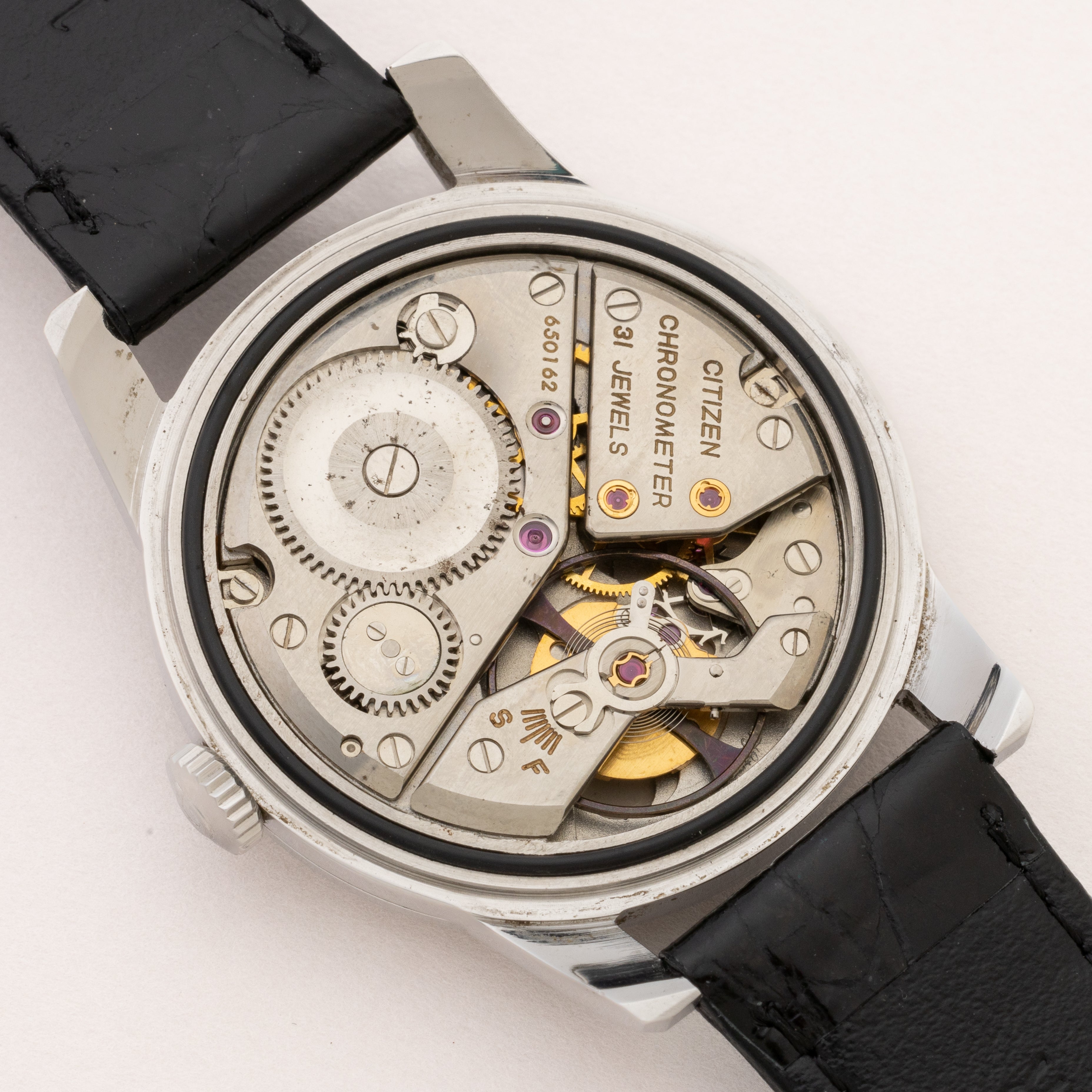 - ヴィンテージ時計の特性上、風防・パッキン・リューズ・バネ棒などの消耗部品は後年メンテナンス過程で交換されている場合がございます。オリジナル性を重視しておりますが、必要に応じて適切な部品にて調整されていますので、よりコレクション性重視のお求めのお客様は事前にご確認ください。