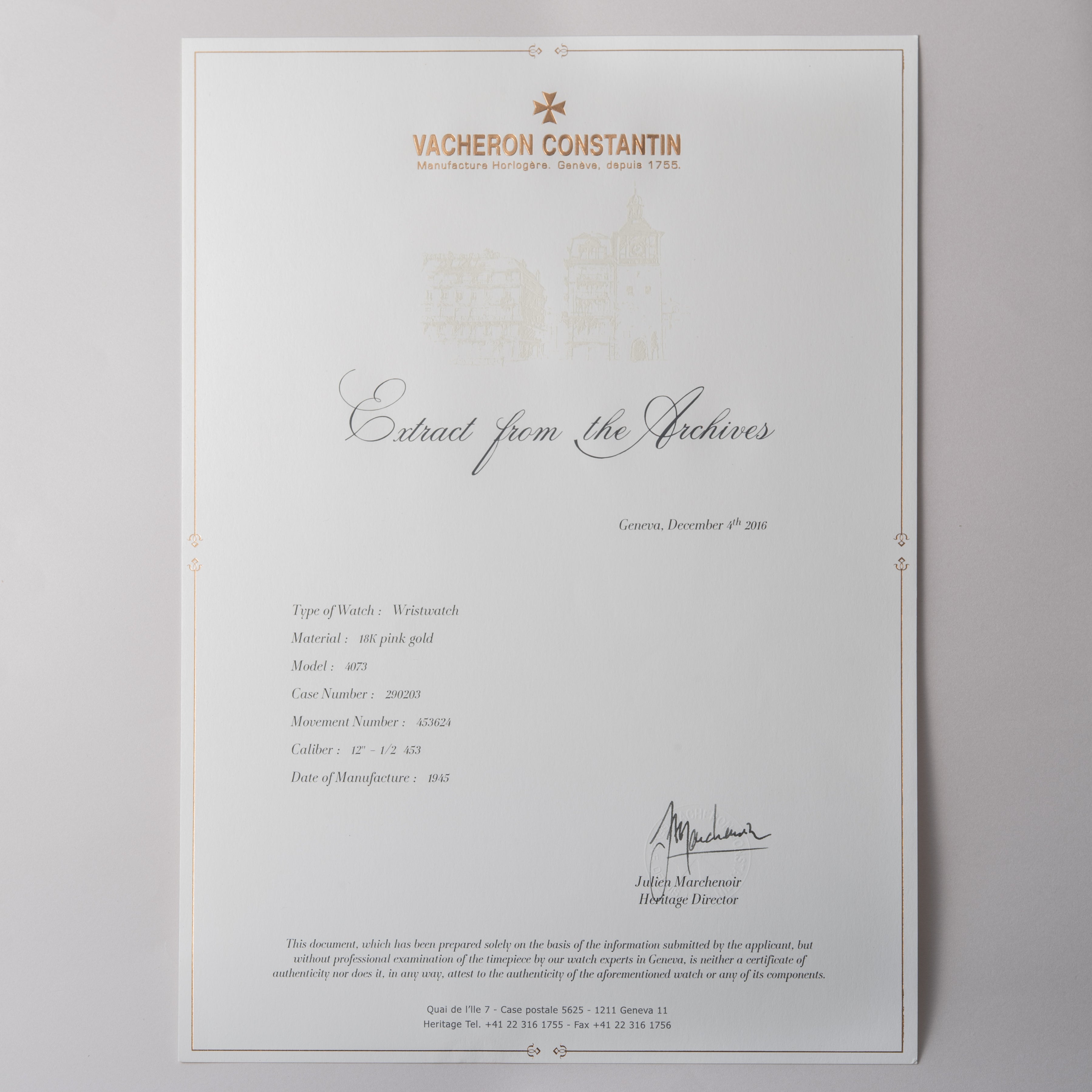 ヴァシュロン・コンスタンタン ラウンド18KPG スモールセコンド 1945年製 アーカイブ付き