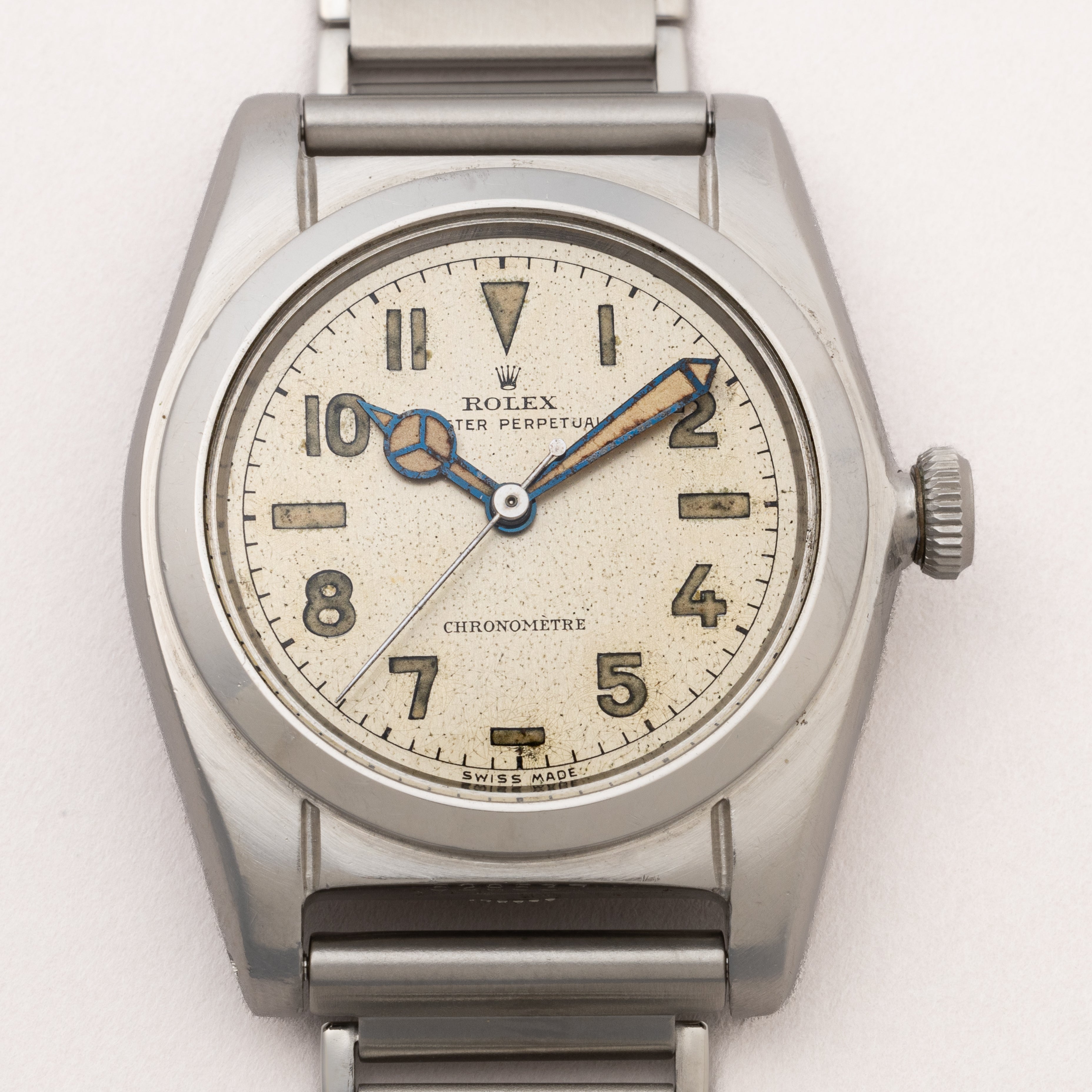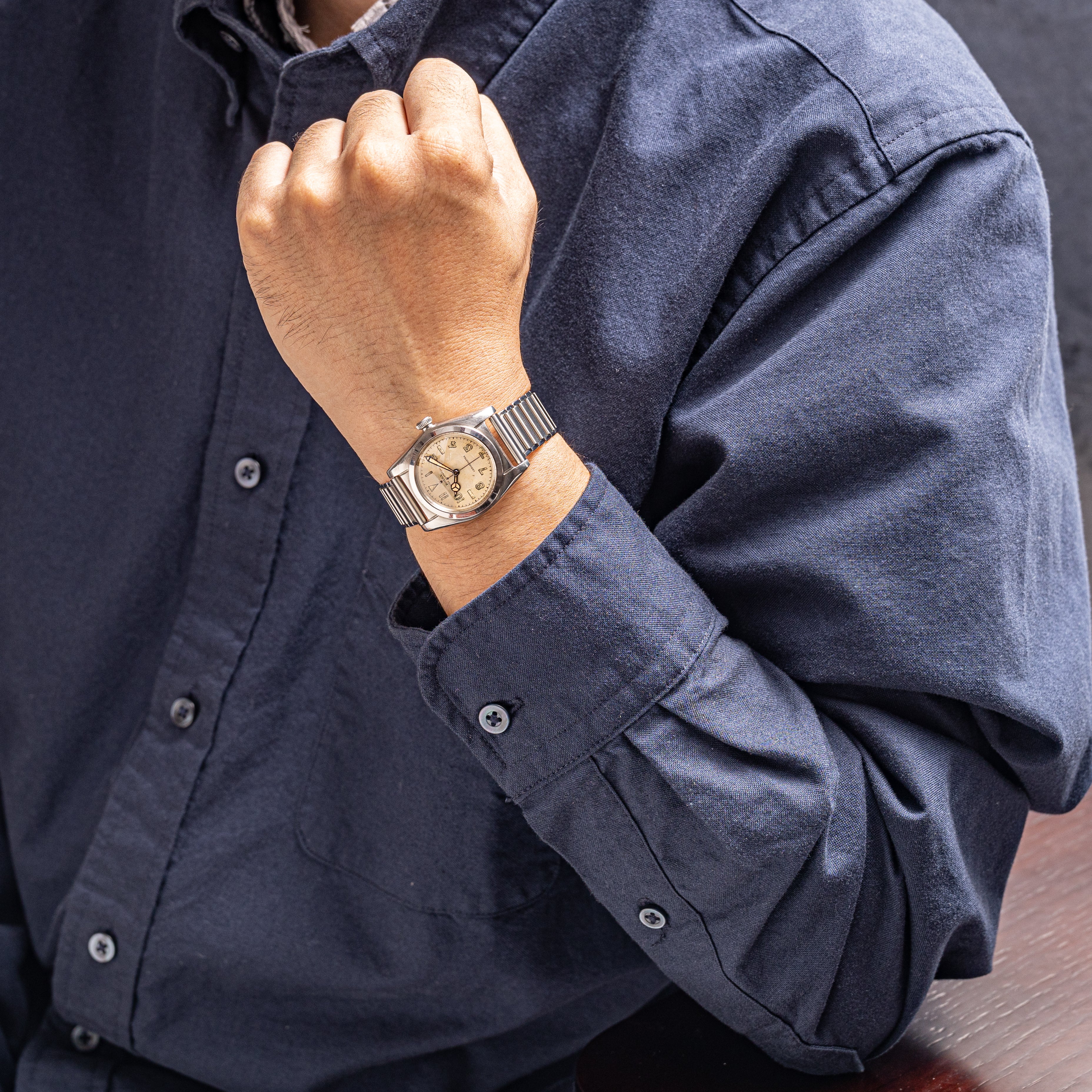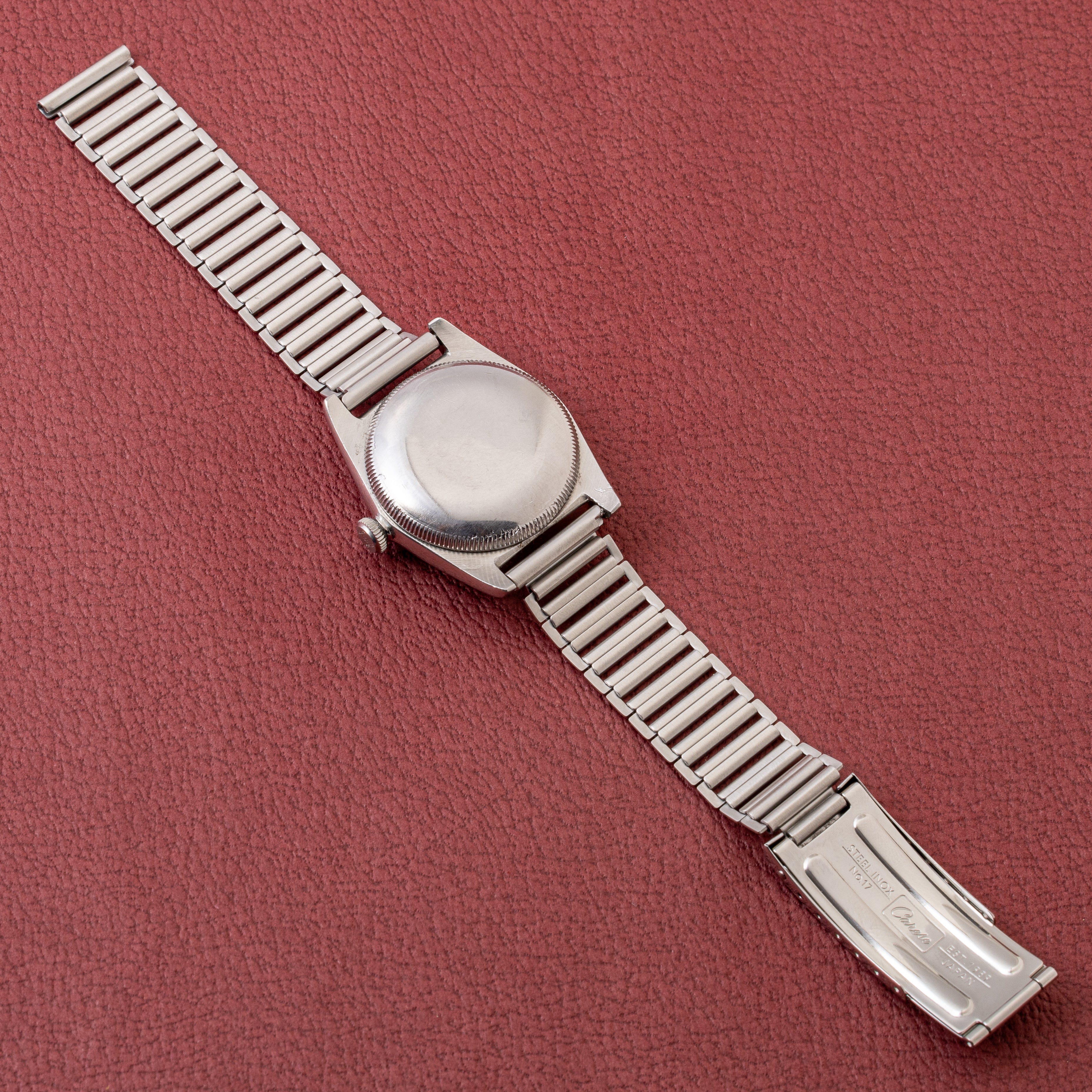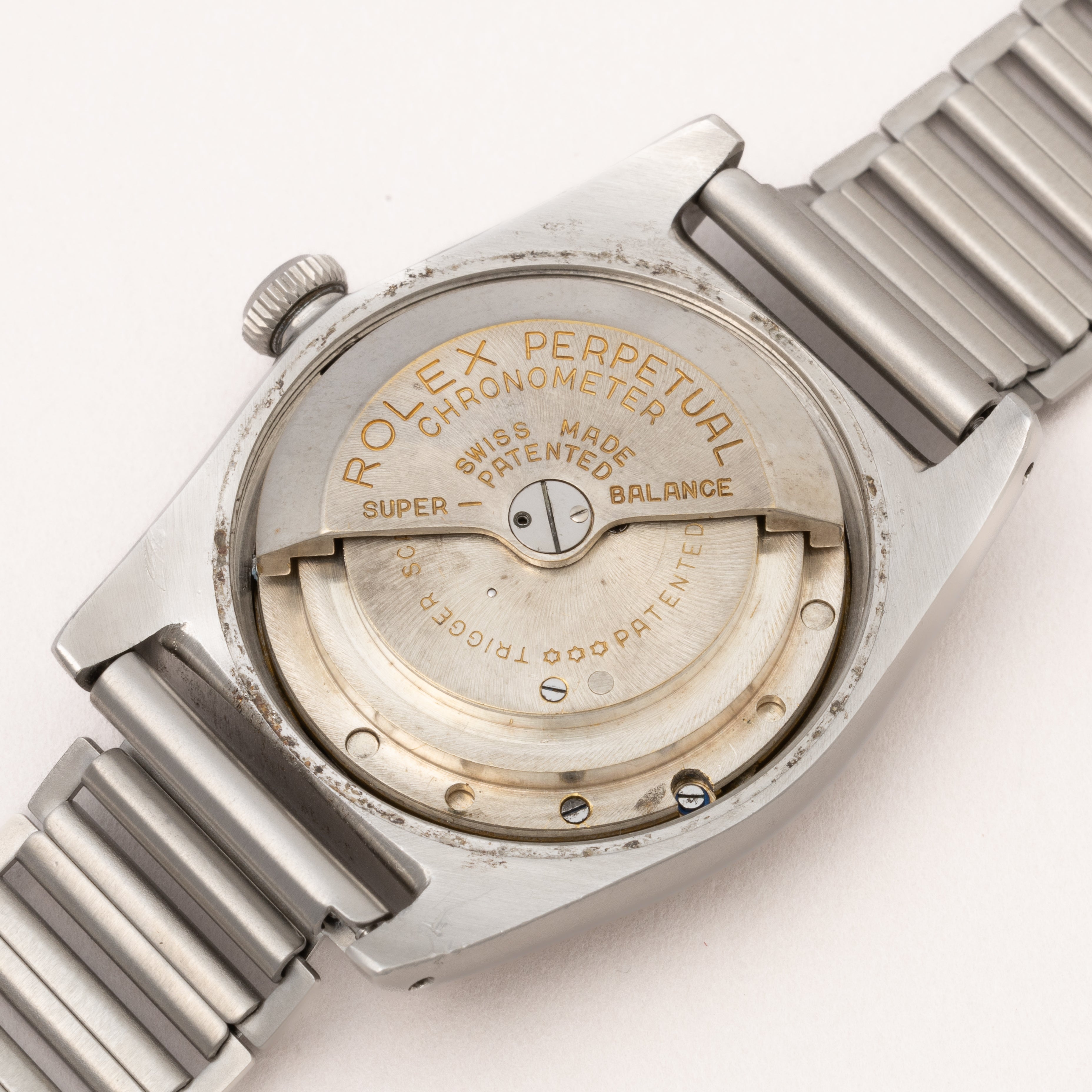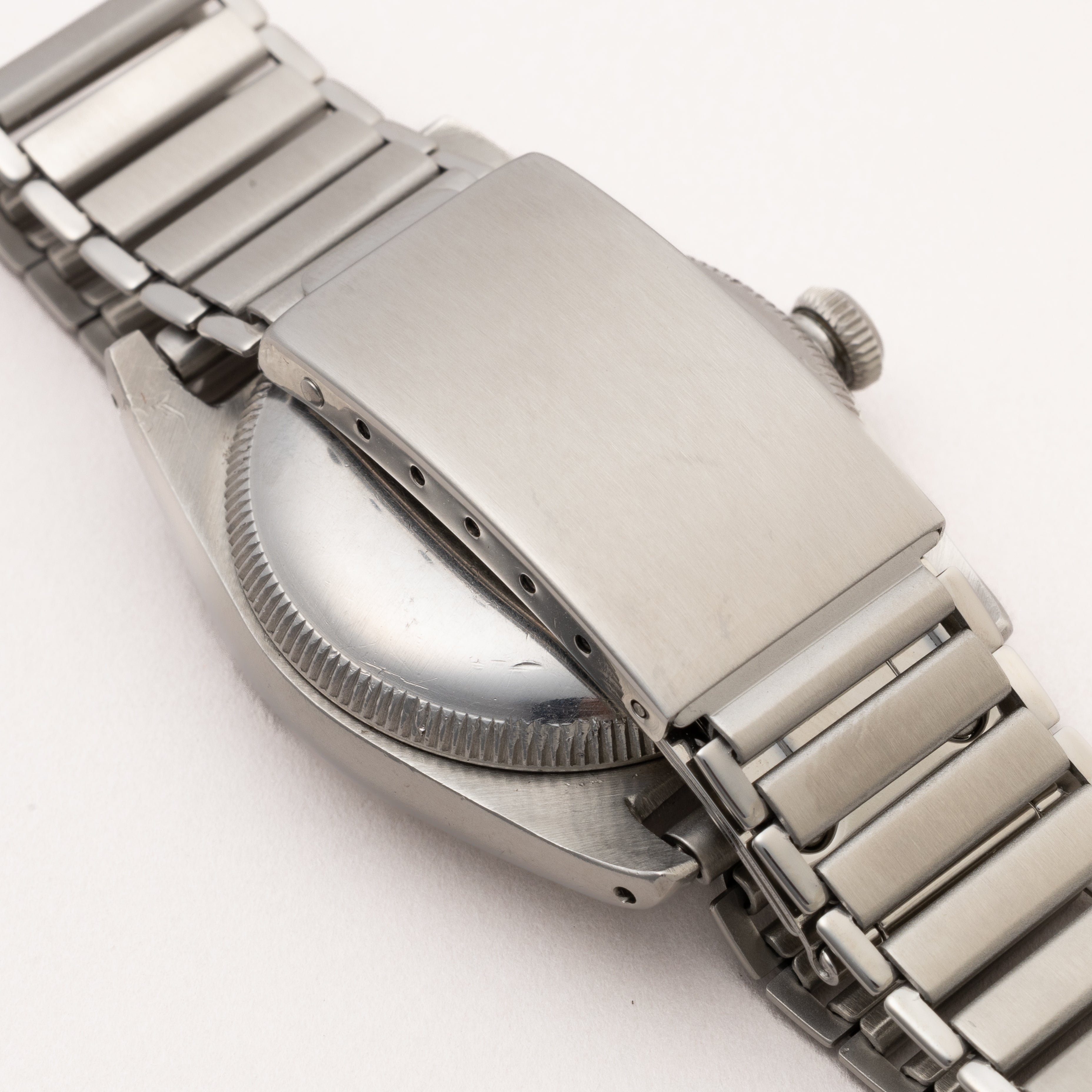 - ヴィンテージ時計の特性上、風防・パッキン・リューズ・バネ棒などの消耗部品は後年メンテナンス過程で交換されている場合がございます。オリジナル性を重視しておりますが、必要に応じて適切な部品にて調整されていますので、よりコレクション性重視のお求めのお客様は事前にご確認ください。
