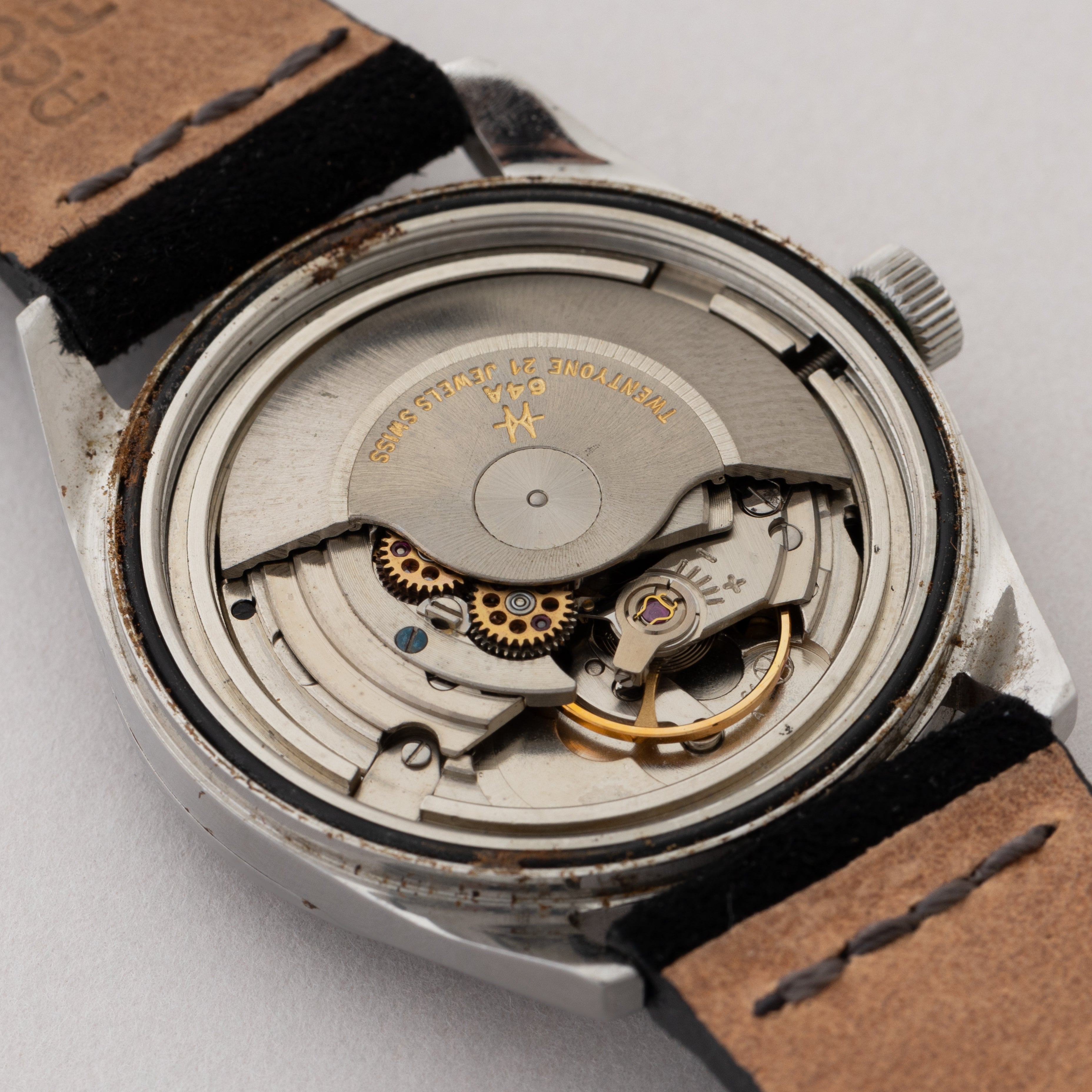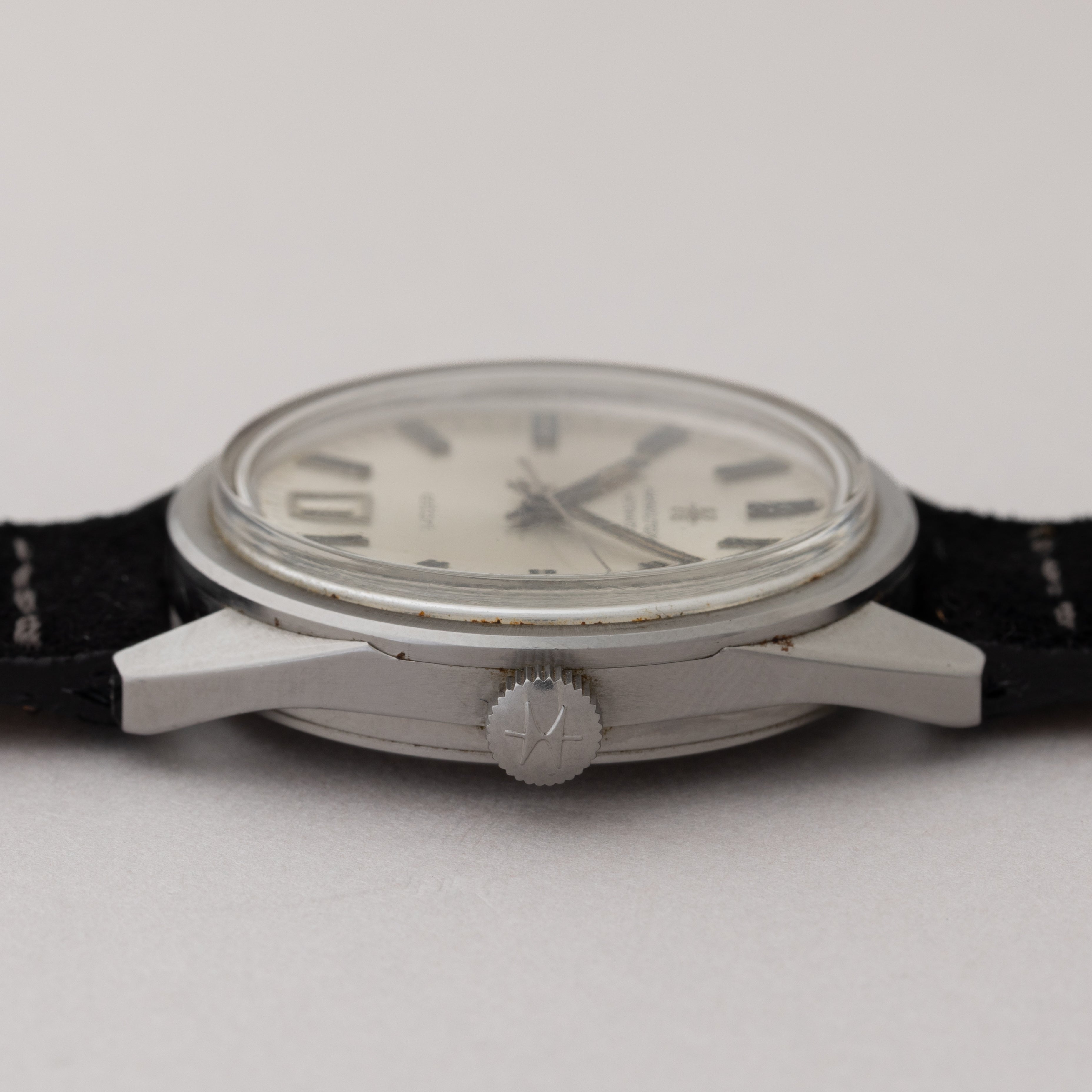 - ヴィンテージ時計の特性上、風防・パッキン・リューズ・バネ棒などの消耗部品は後年メンテナンス過程で交換されている場合がございます。オリジナル性を重視しておりますが、必要に応じて適切な部品にて調整されていますので、よりコレクション性重視のお求めのお客様は事前にご確認ください。
