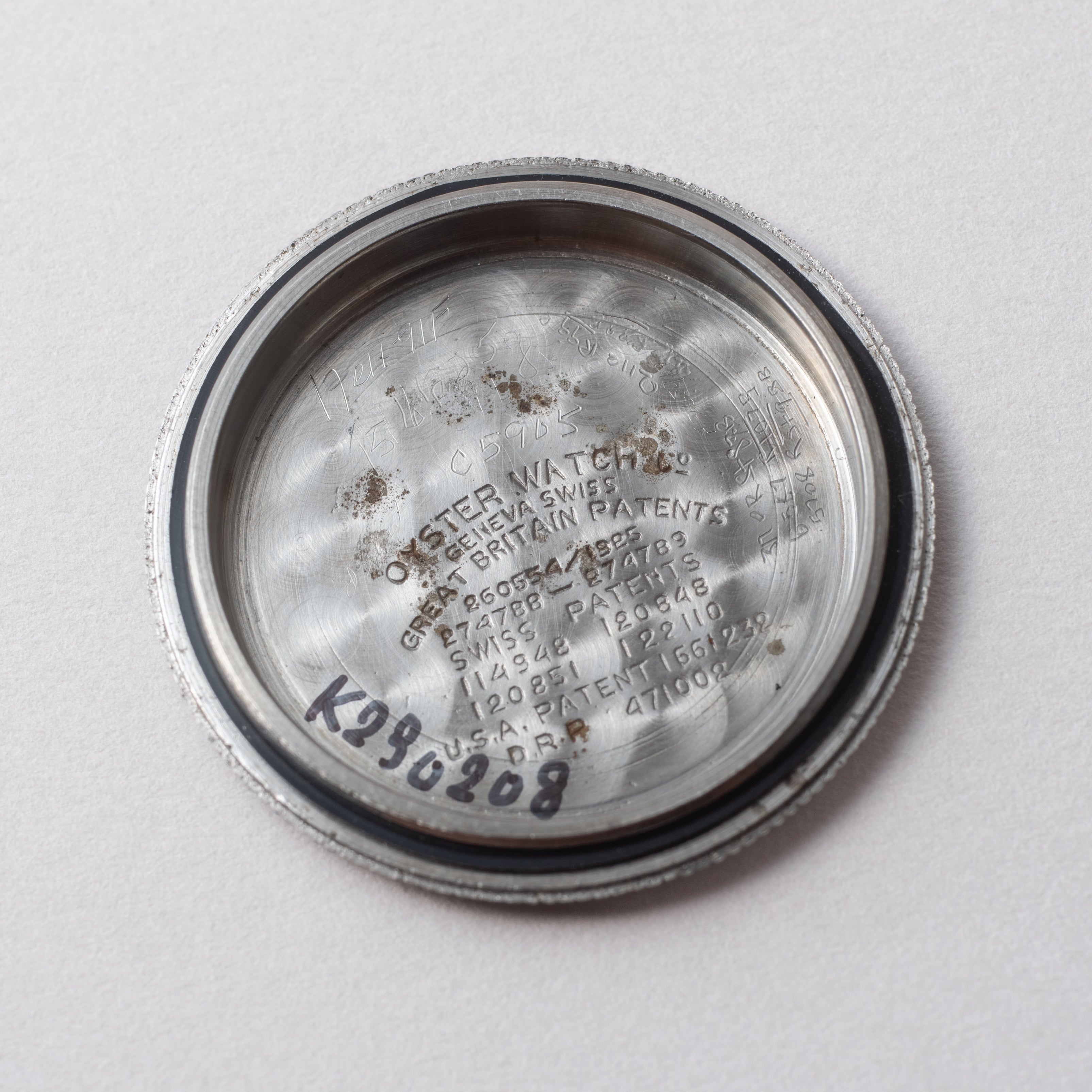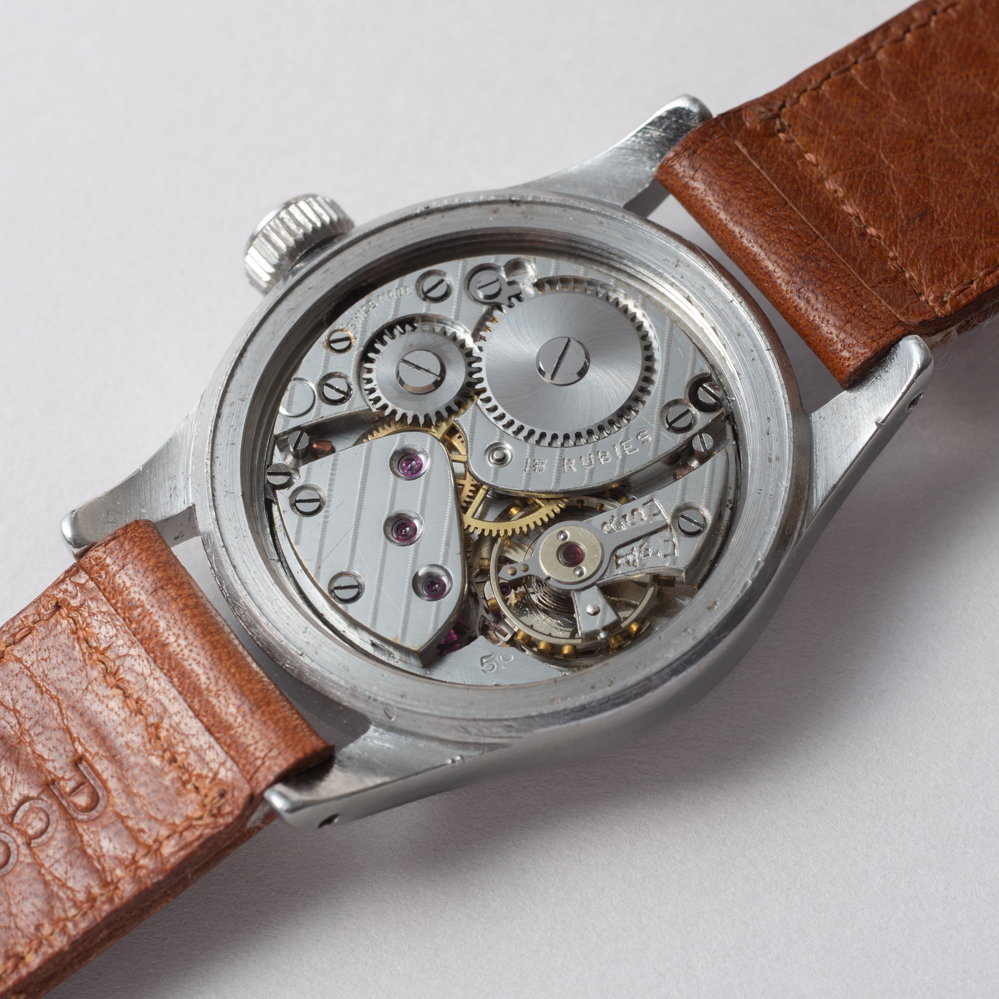- ヴィンテージ時計の特性上、風防・パッキン・リューズ・バネ棒などの消耗部品は後年メンテナンス過程で交換されている場合がございます。オリジナル性を重視しておりますが、必要に応じて適切な部品にて調整されていますので、よりコレクション性重視のお求めのお客様は事前にご確認ください。