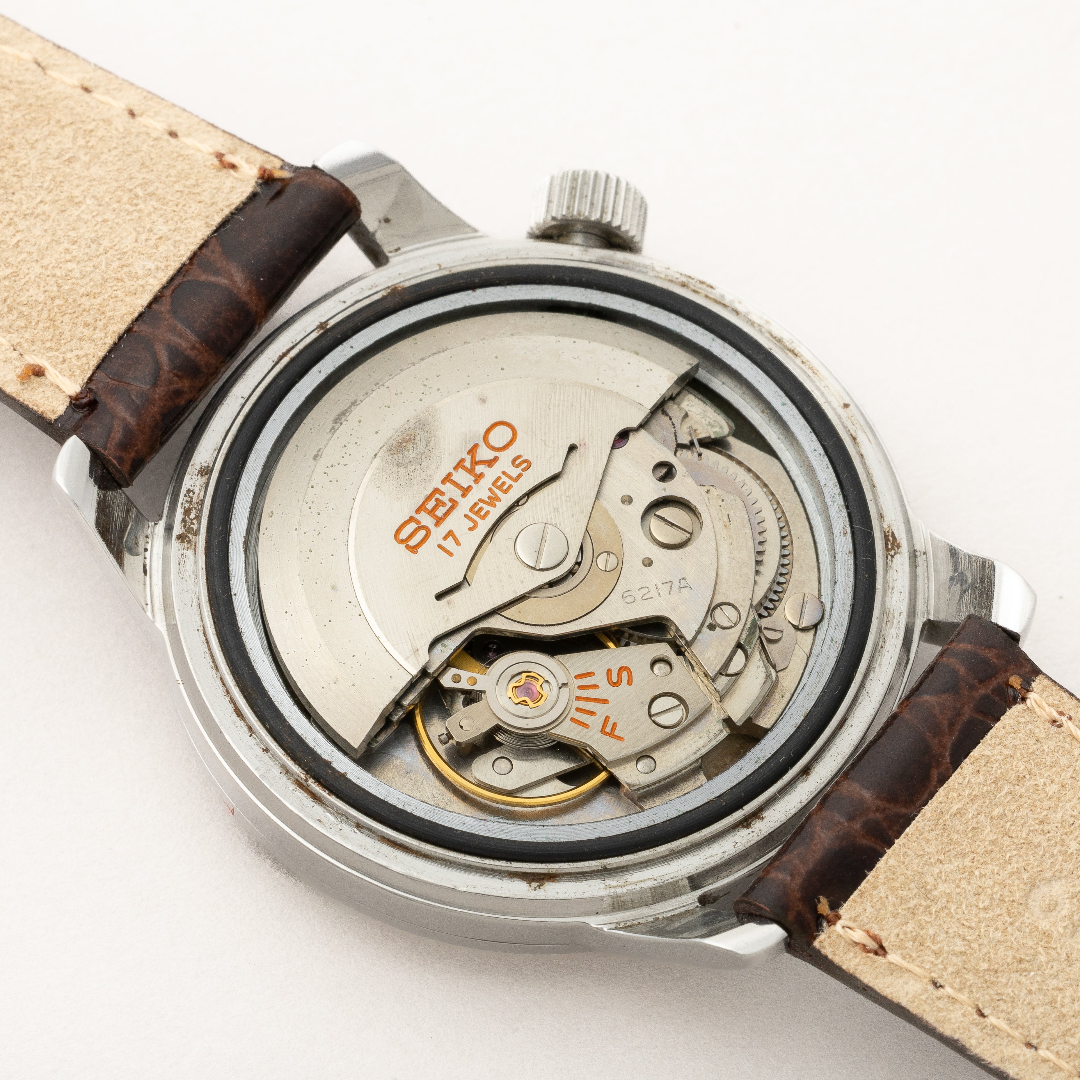 - ヴィンテージ時計の特性上、風防・パッキン・リューズ・バネ棒などの消耗部品は後年メンテナンス過程で交換されている場合がございます。オリジナル性を重視しておりますが、必要に応じて適切な部品にて調整されていますので、よりコレクション性重視のお求めのお客様は事前にご確認ください。