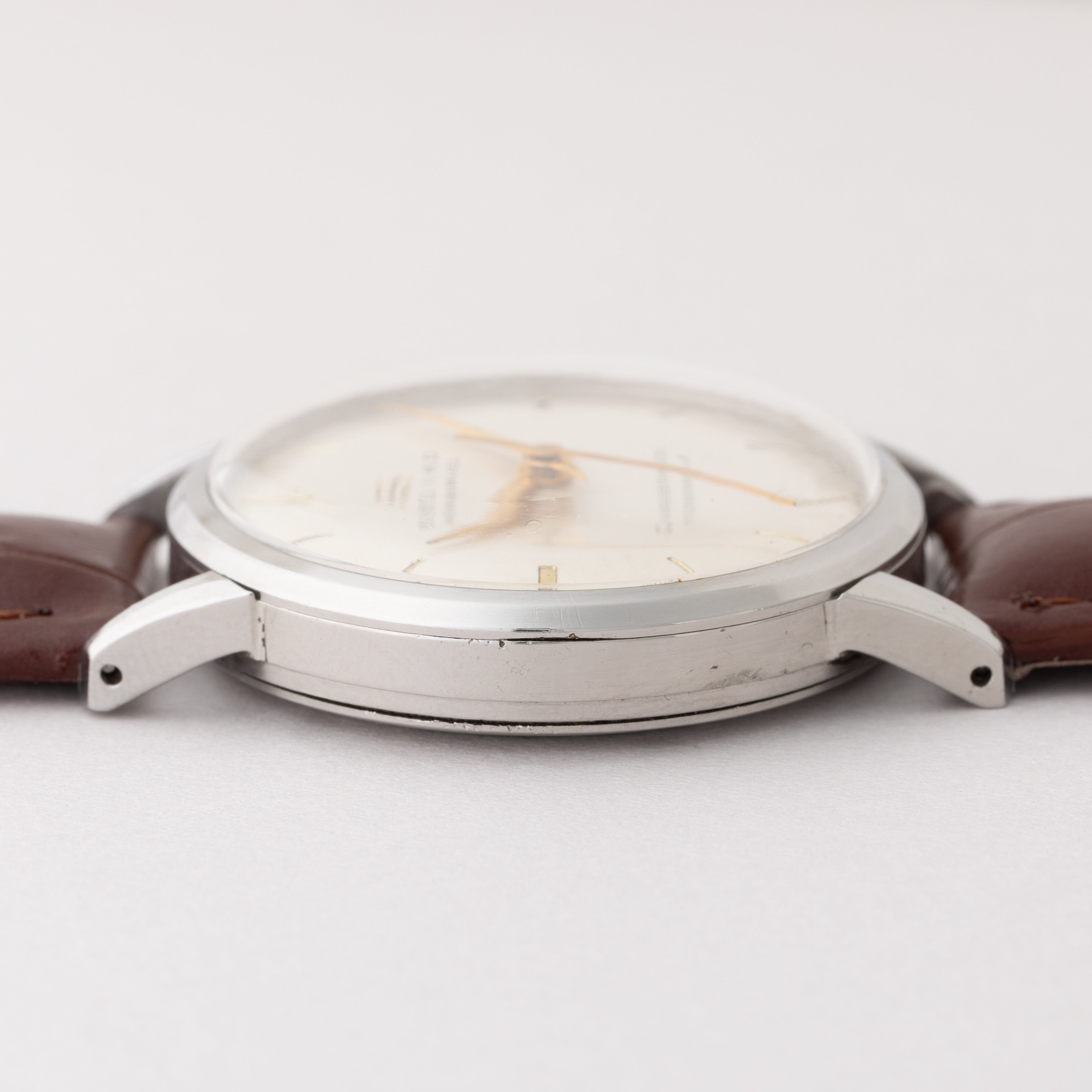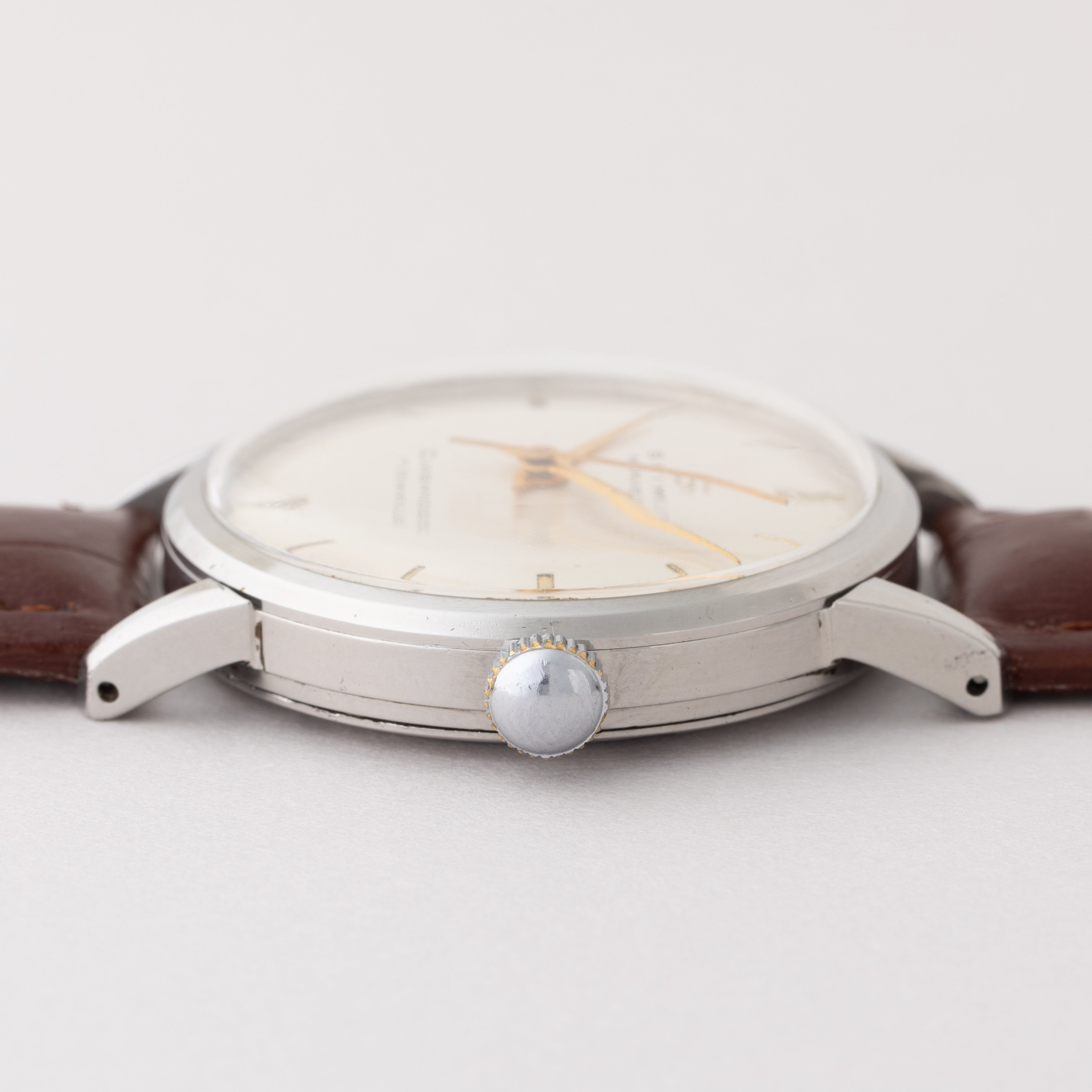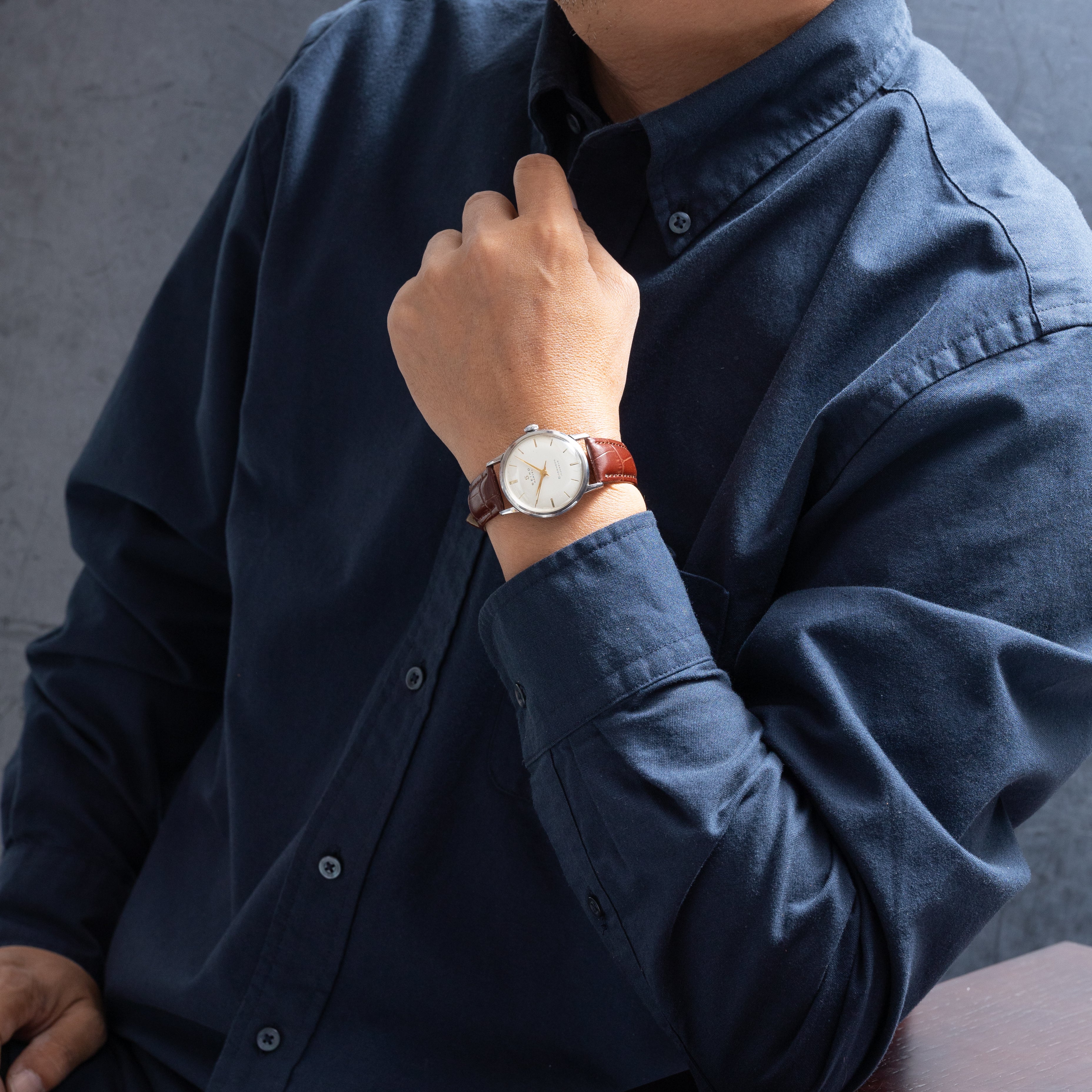 - ヴィンテージ時計の特性上、風防・パッキン・リューズ・バネ棒などの消耗部品は後年メンテナンス過程で交換されている場合がございます。オリジナル性を重視しておりますが、必要に応じて適切な部品にて調整されていますので、よりコレクション性重視のお求めのお客様は事前にご確認ください。