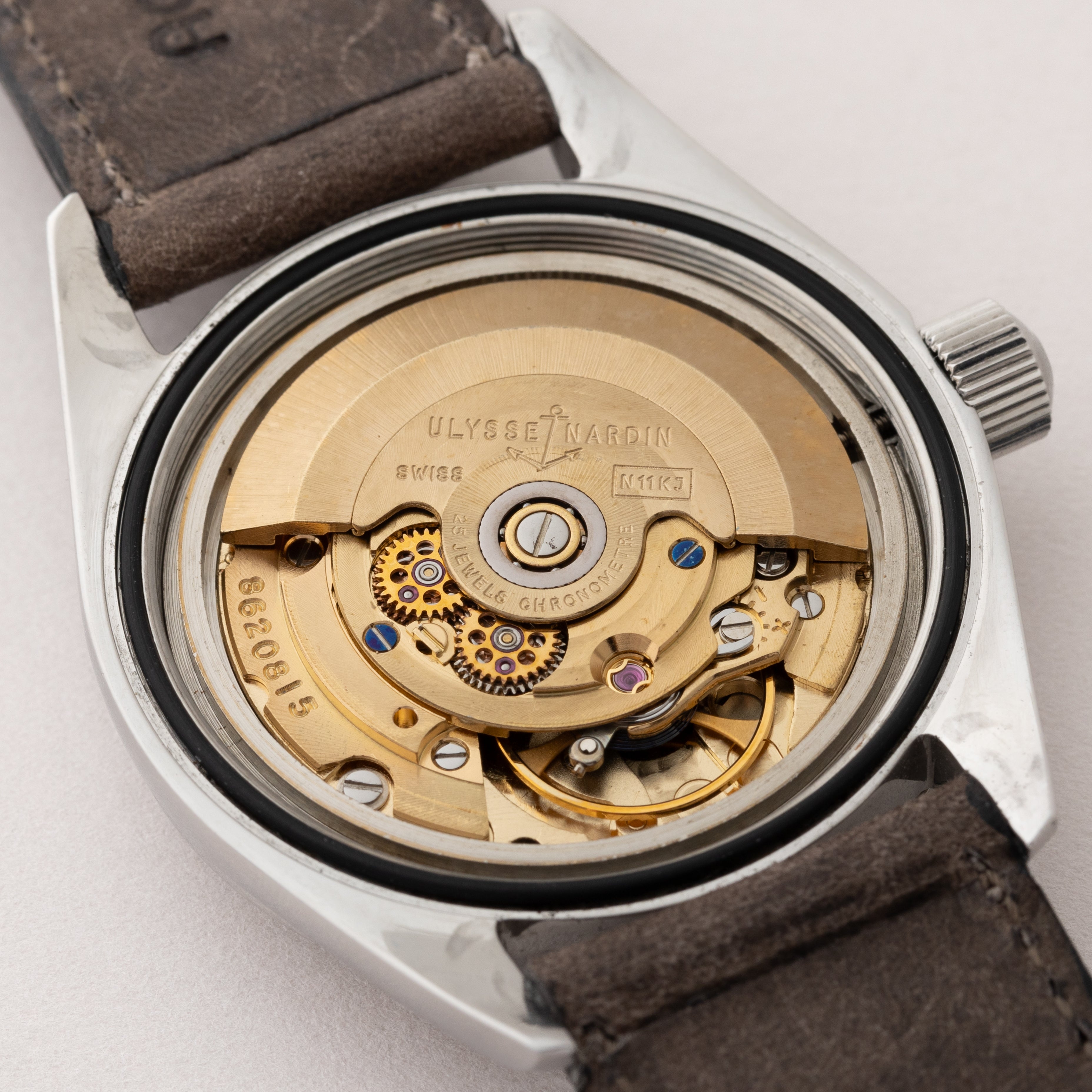- ヴィンテージ時計の特性上、風防・パッキン・リューズ・バネ棒などの消耗部品は後年メンテナンス過程で交換されている場合がございます。オリジナル性を重視しておりますが、必要に応じて適切な部品にて調整されていますので、よりコレクション性重視のお求めのお客様は事前にご確認ください。