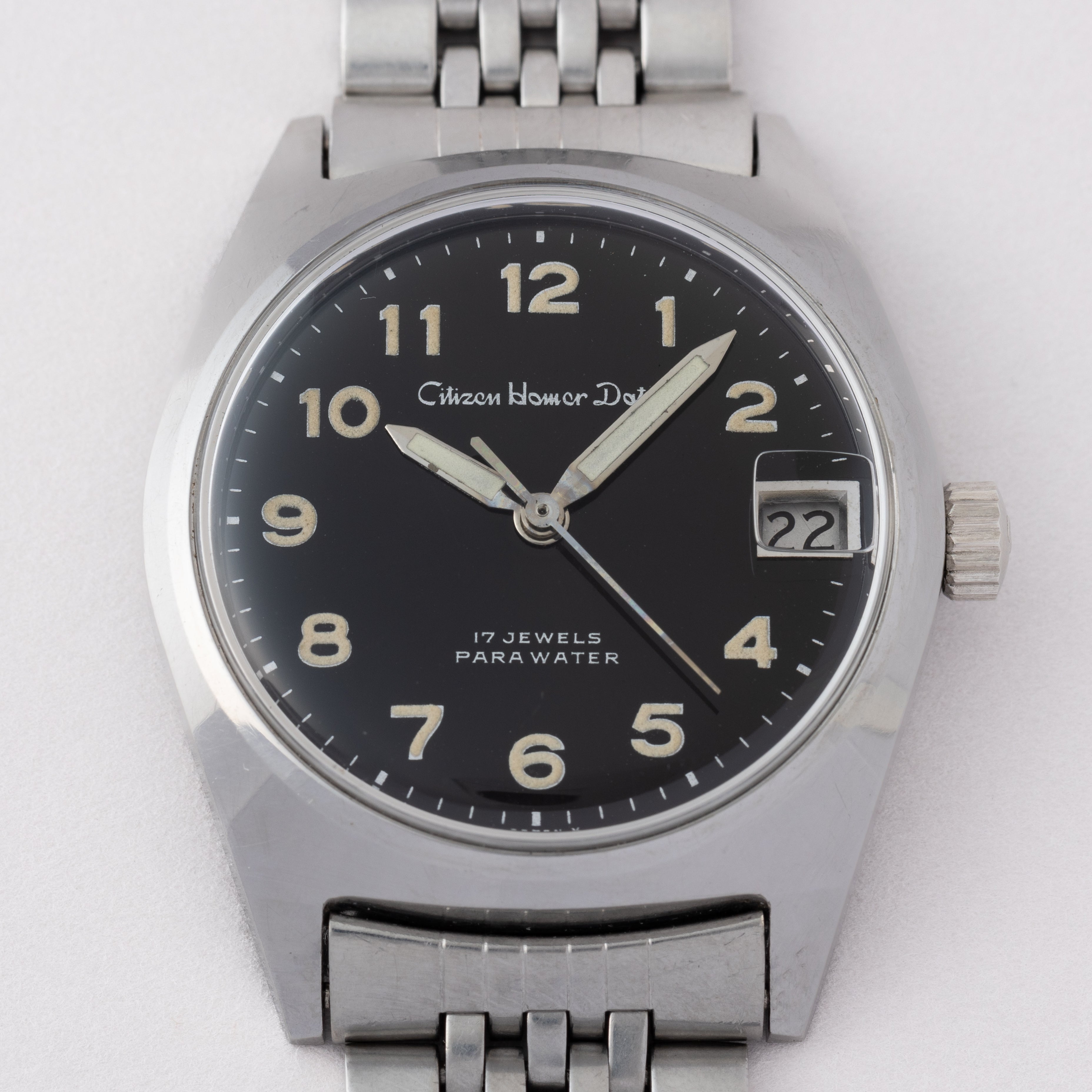 - ヴィンテージ時計の特性上、風防・パッキン・リューズ・バネ棒などの消耗部品は後年メンテナンス過程で交換されている場合がございます。オリジナル性を重視しておりますが、必要に応じて適切な部品にて調整されていますので、よりコレクション性重視のお求めのお客様は事前にご確認ください。