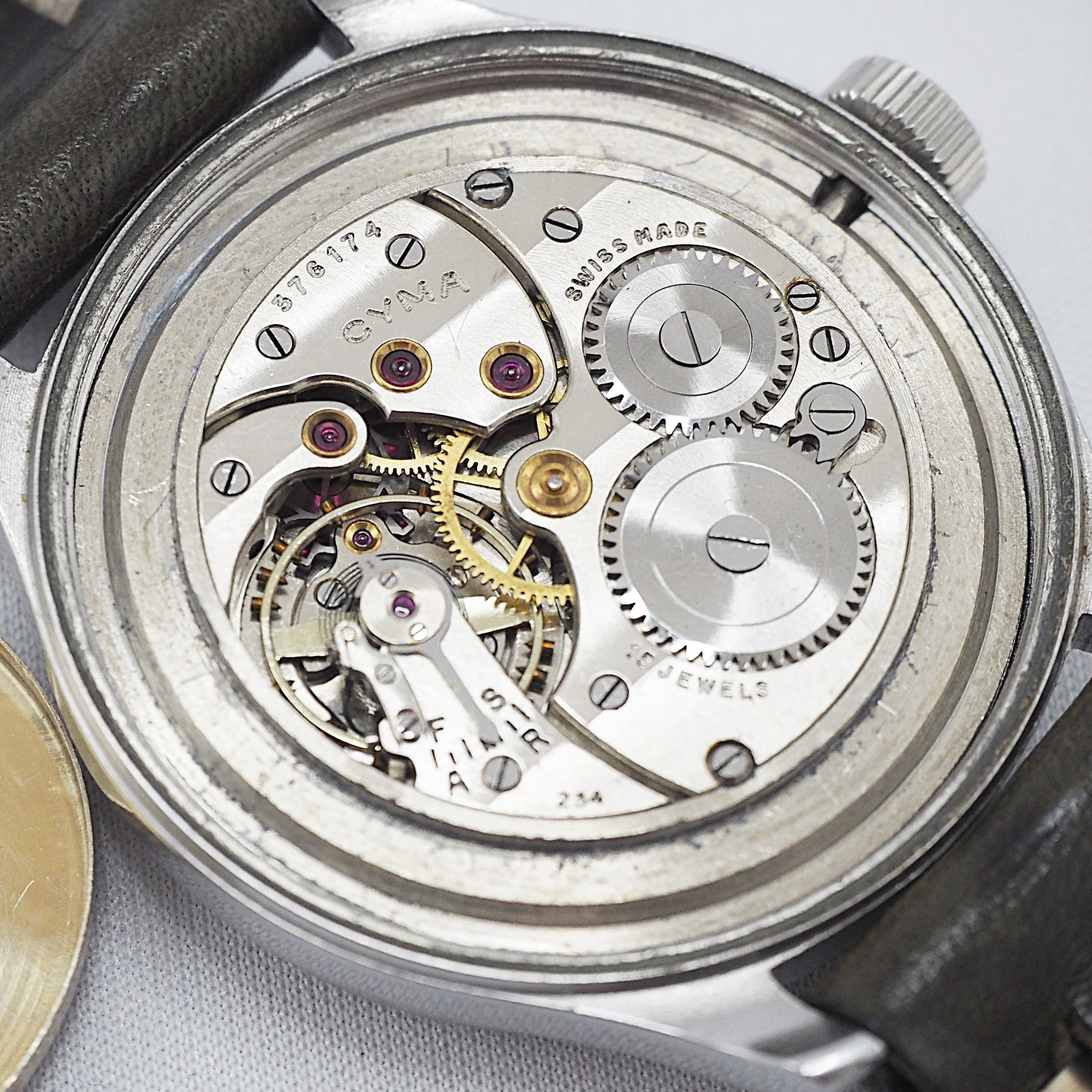 - ヴィンテージ時計の特性上、風防・パッキン・リューズ・バネ棒などの消耗部品は後年メンテナンス過程で交換されている場合がございます。オリジナル性を重視しておりますが、必要に応じて適切な部品にて調整されていますので、よりコレクション性重視のお求めのお客様は事前にご確認ください。