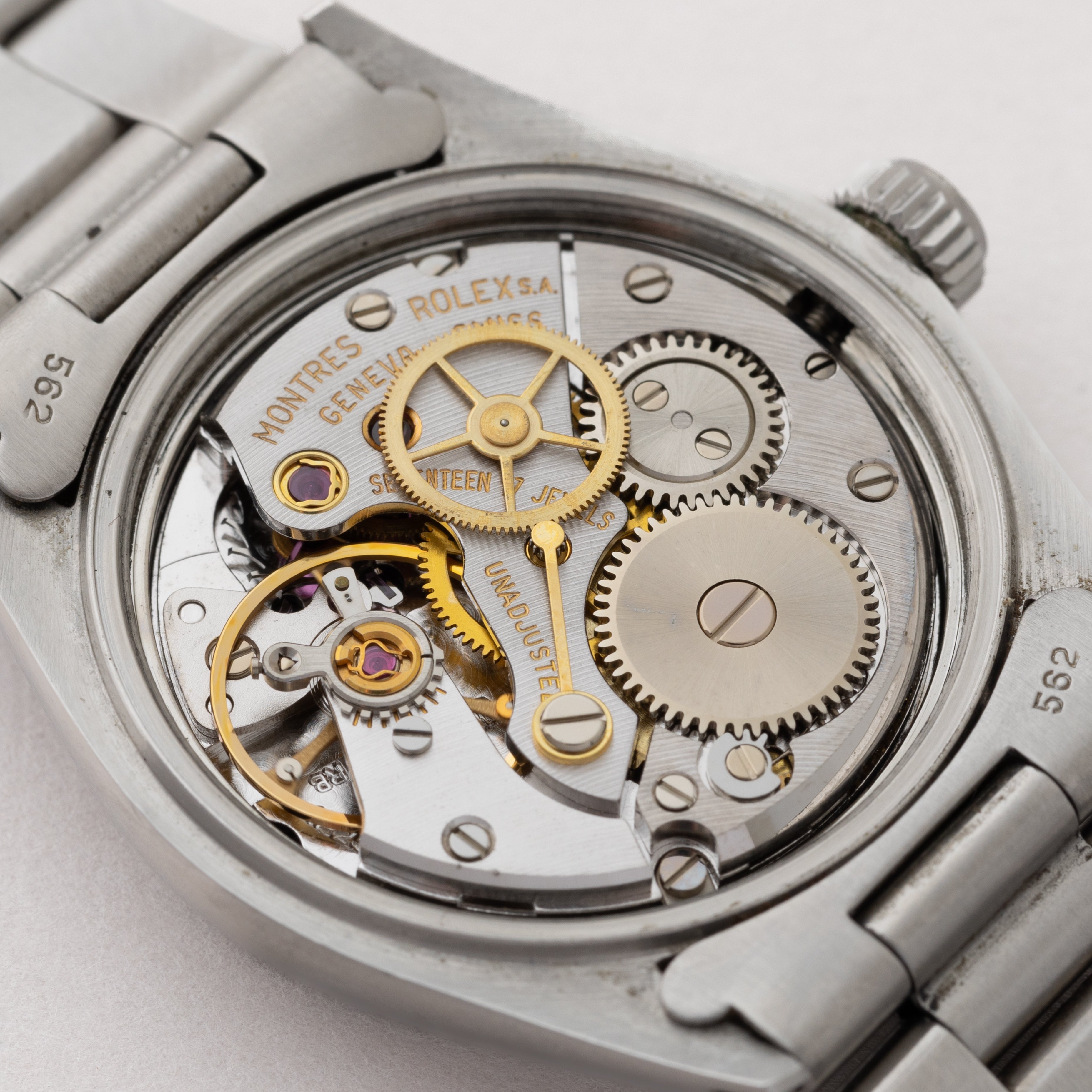 - ヴィンテージ時計の特性上、風防・パッキン・リューズ・バネ棒などの消耗部品は後年メンテナンス過程で交換されている場合がございます。オリジナル性を重視しておりますが、必要に応じて適切な部品にて調整されていますので、よりコレクション性重視のお求めのお客様は事前にご確認ください。