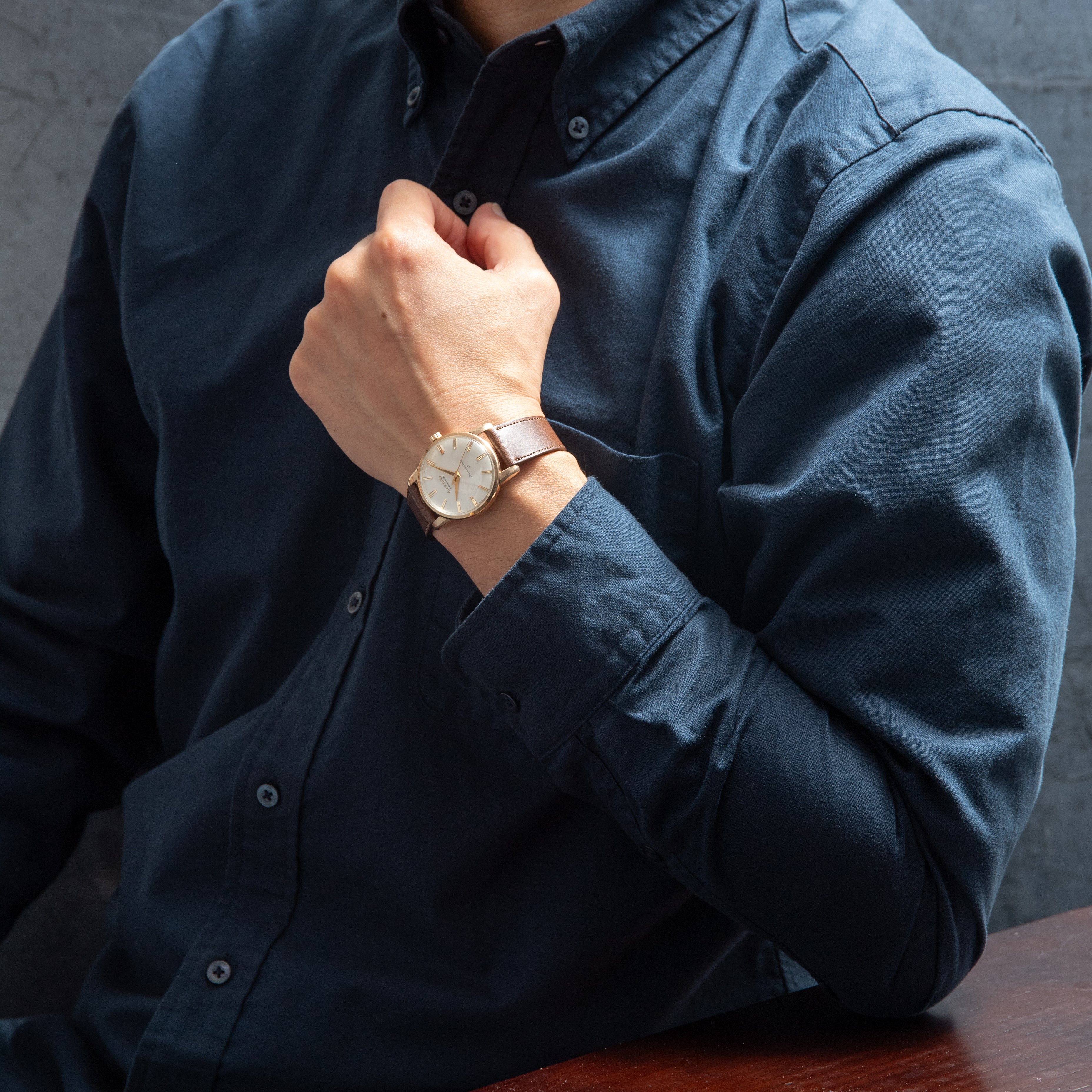- ヴィンテージ時計の特性上、風防・パッキン・リューズ・バネ棒などの消耗部品は後年メンテナンス過程で交換されている場合がございます。オリジナル性を重視しておりますが、必要に応じて適切な部品にて調整されていますので、よりコレクション性重視のお求めのお客様は事前にご確認ください。