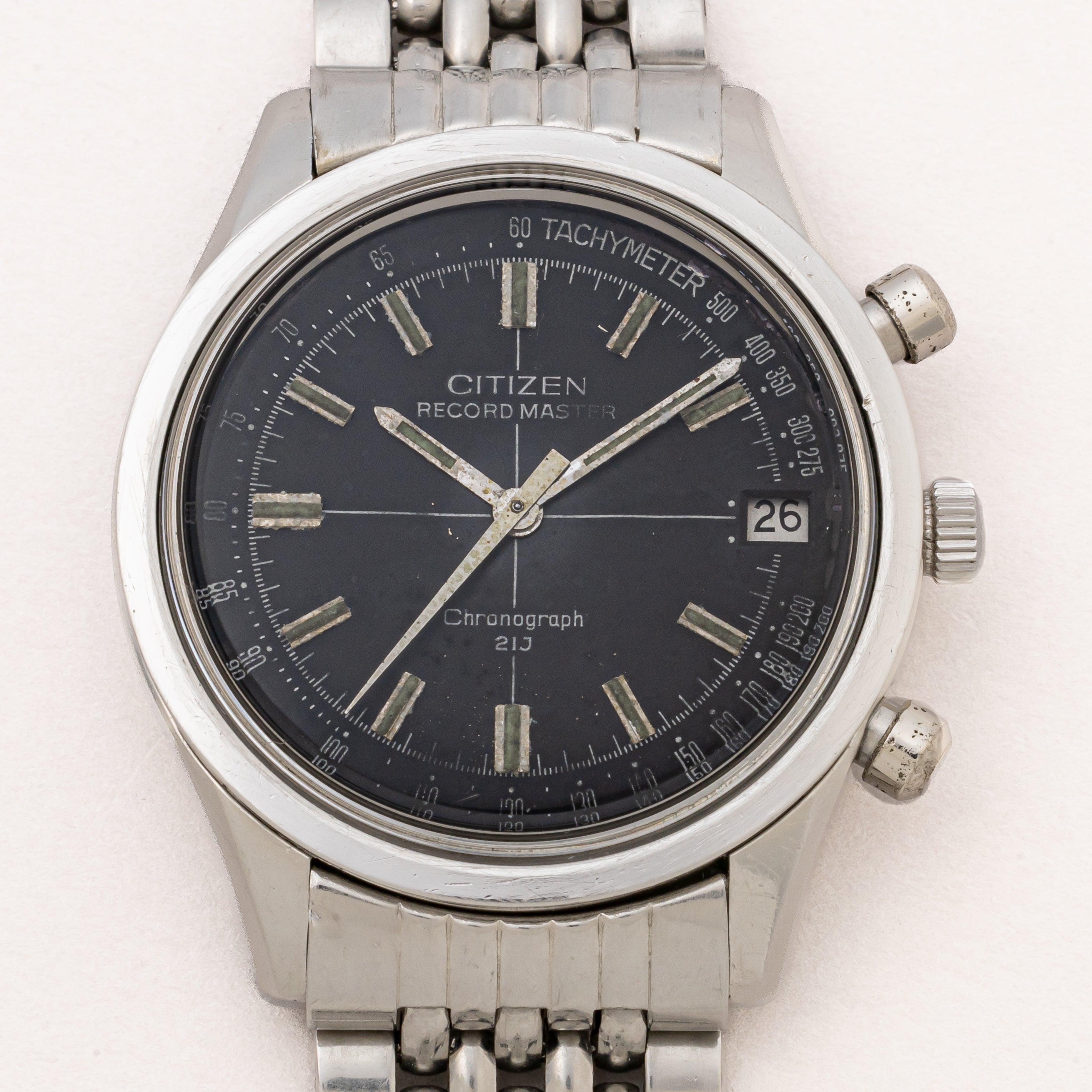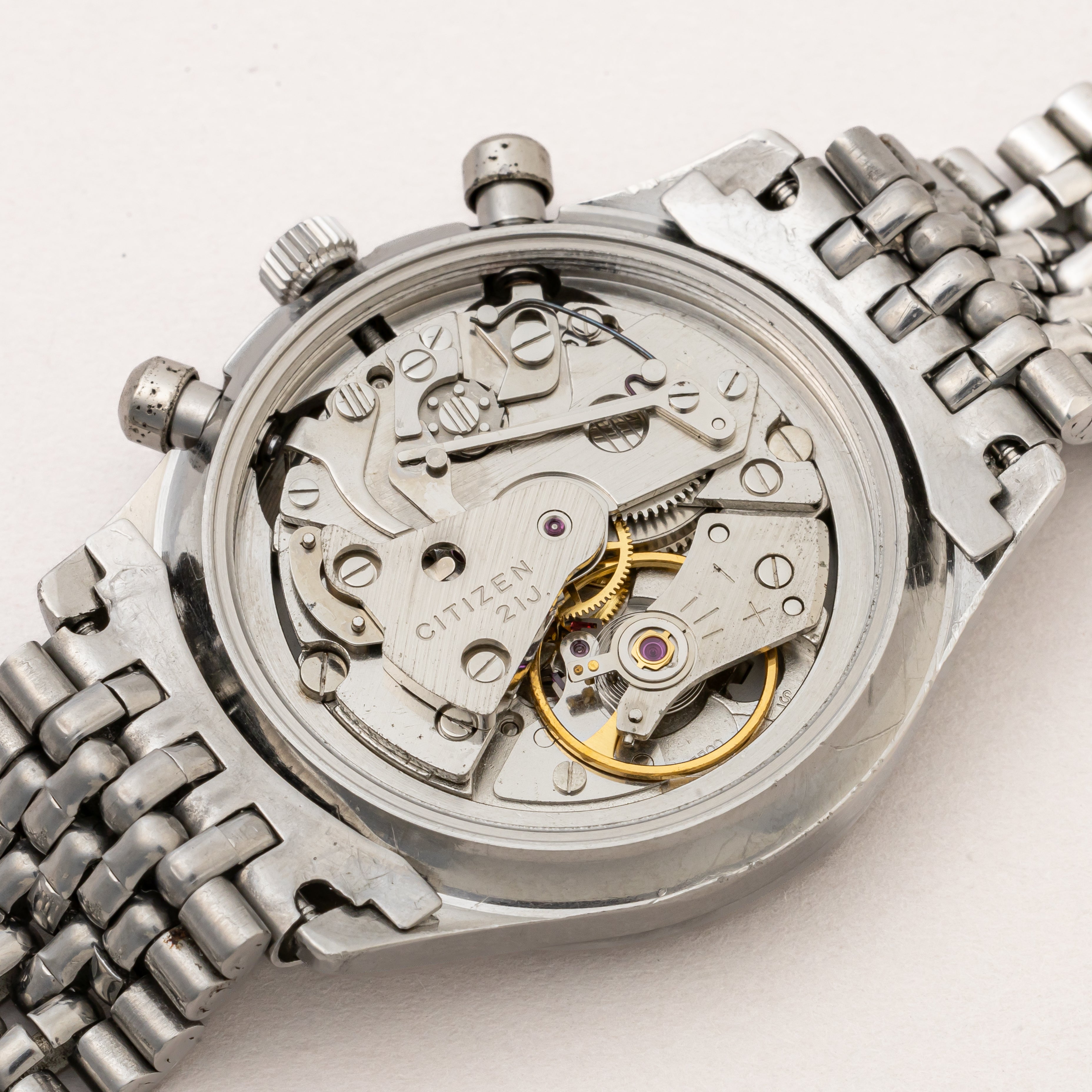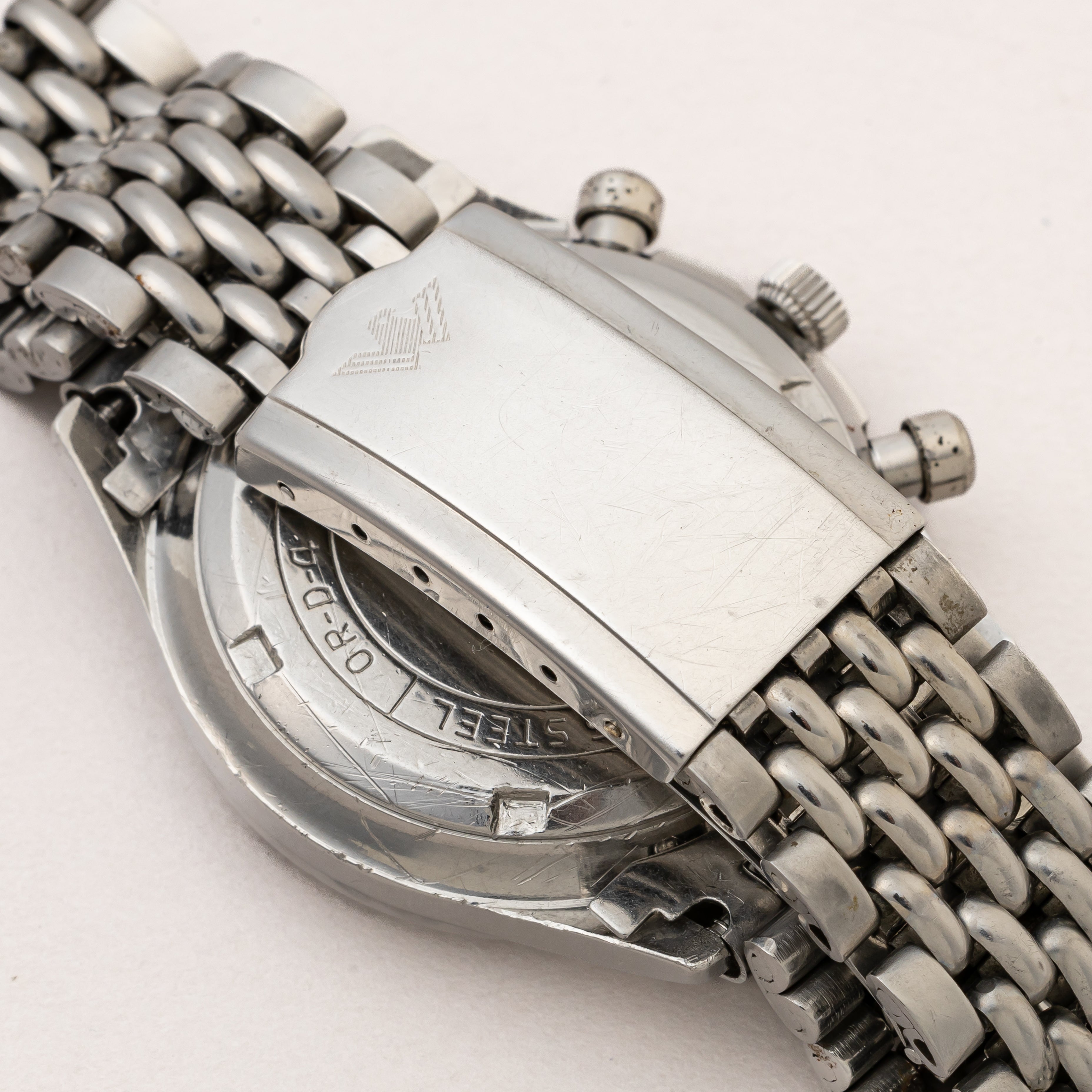 - ヴィンテージ時計の特性上、風防・パッキン・リューズ・バネ棒などの消耗部品は後年メンテナンス過程で交換されている場合がございます。オリジナル性を重視しておりますが、必要に応じて適切な部品にて調整されていますので、よりコレクション性重視のお求めのお客様は事前にご確認ください。