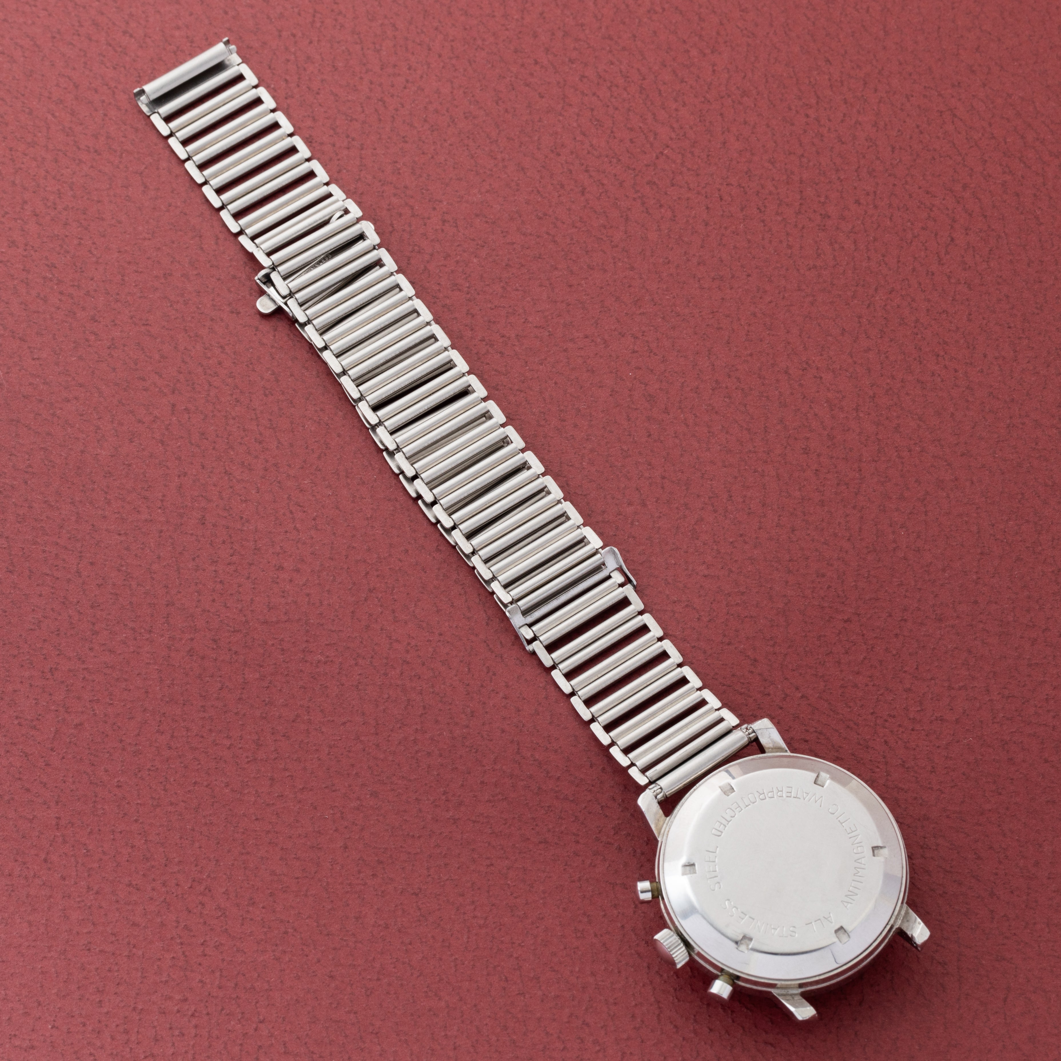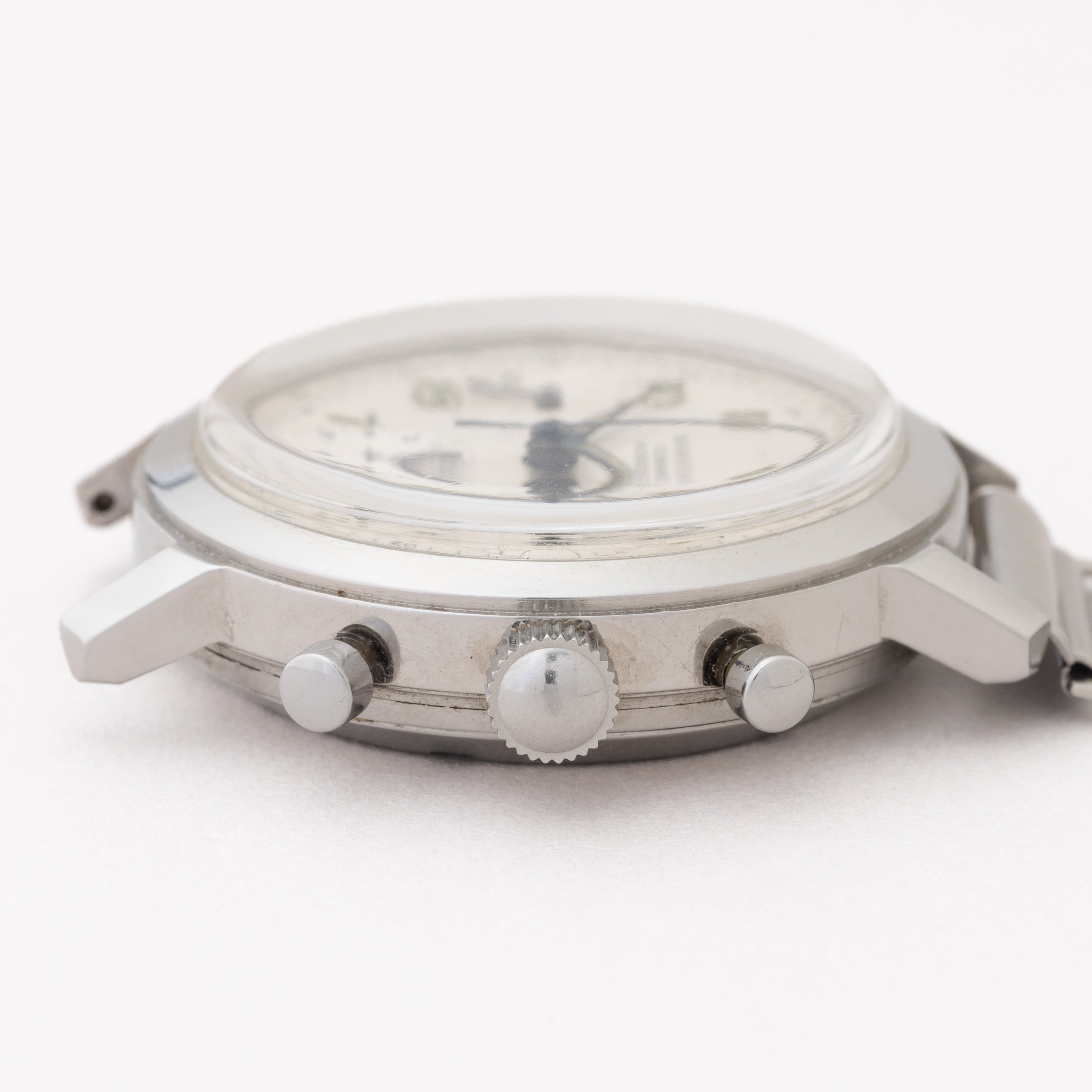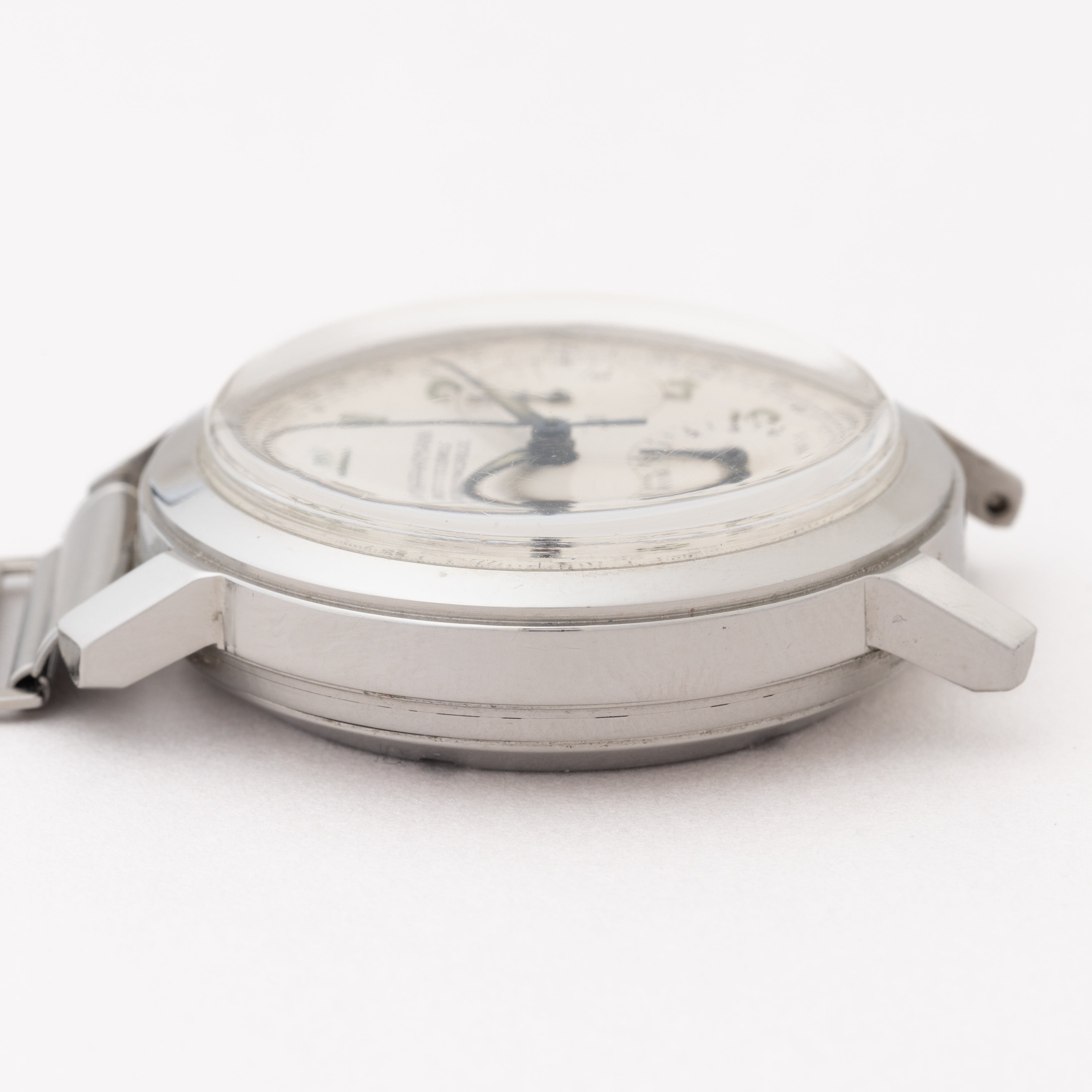 - ヴィンテージ時計の特性上、風防・パッキン・リューズ・バネ棒などの消耗部品は後年メンテナンス過程で交換されている場合がございます。オリジナル性を重視しておりますが、必要に応じて適切な部品にて調整されていますので、よりコレクション性重視のお求めのお客様は事前にご確認ください。