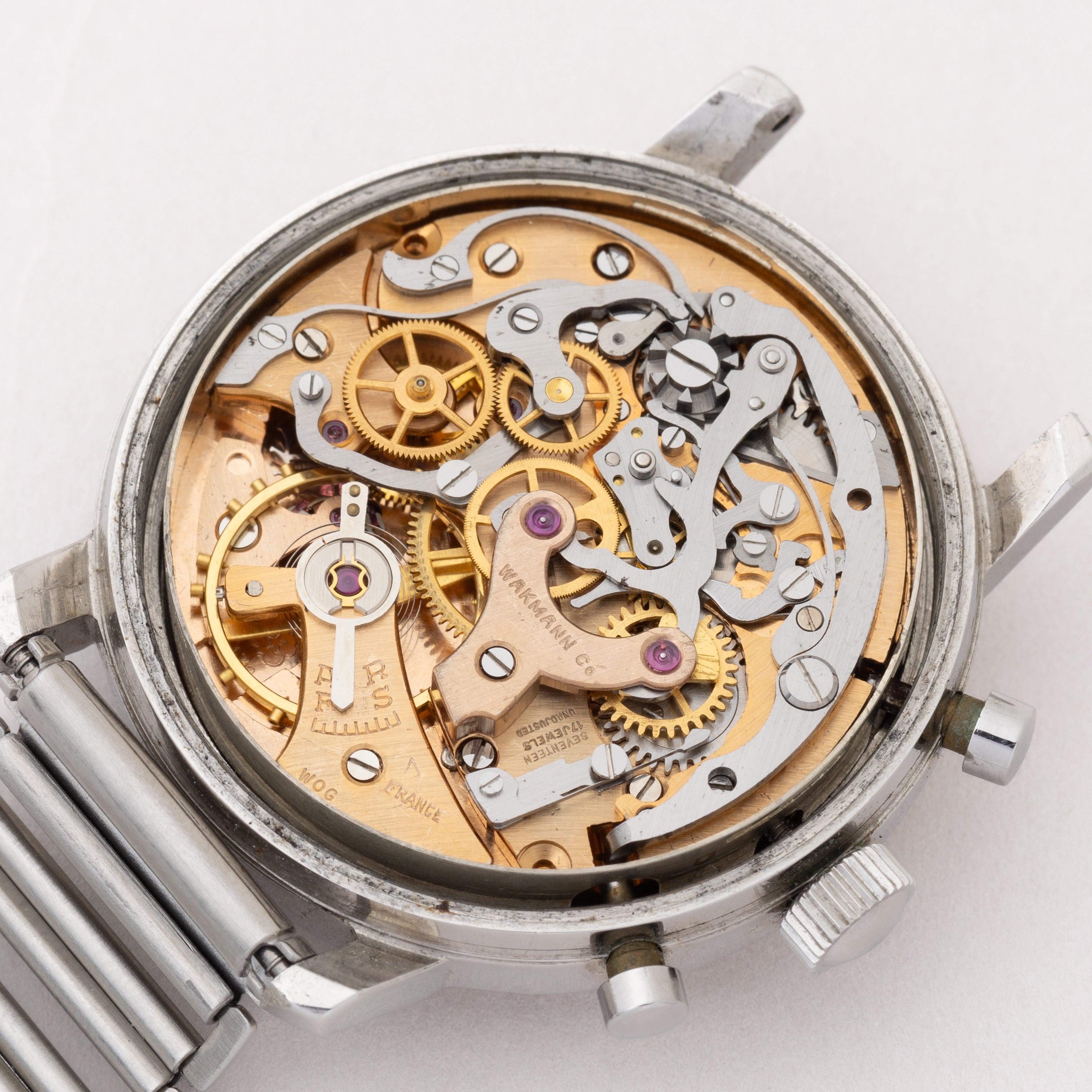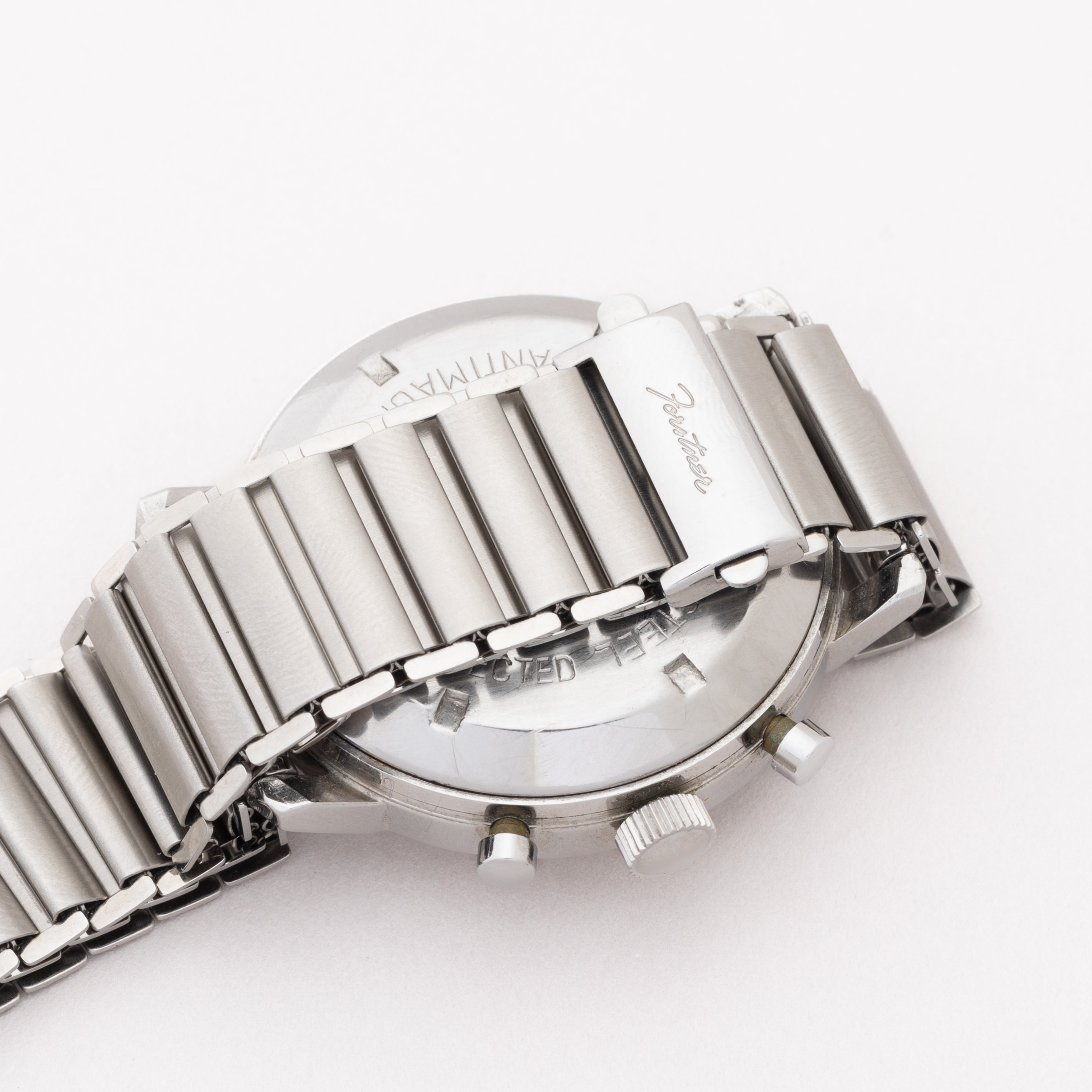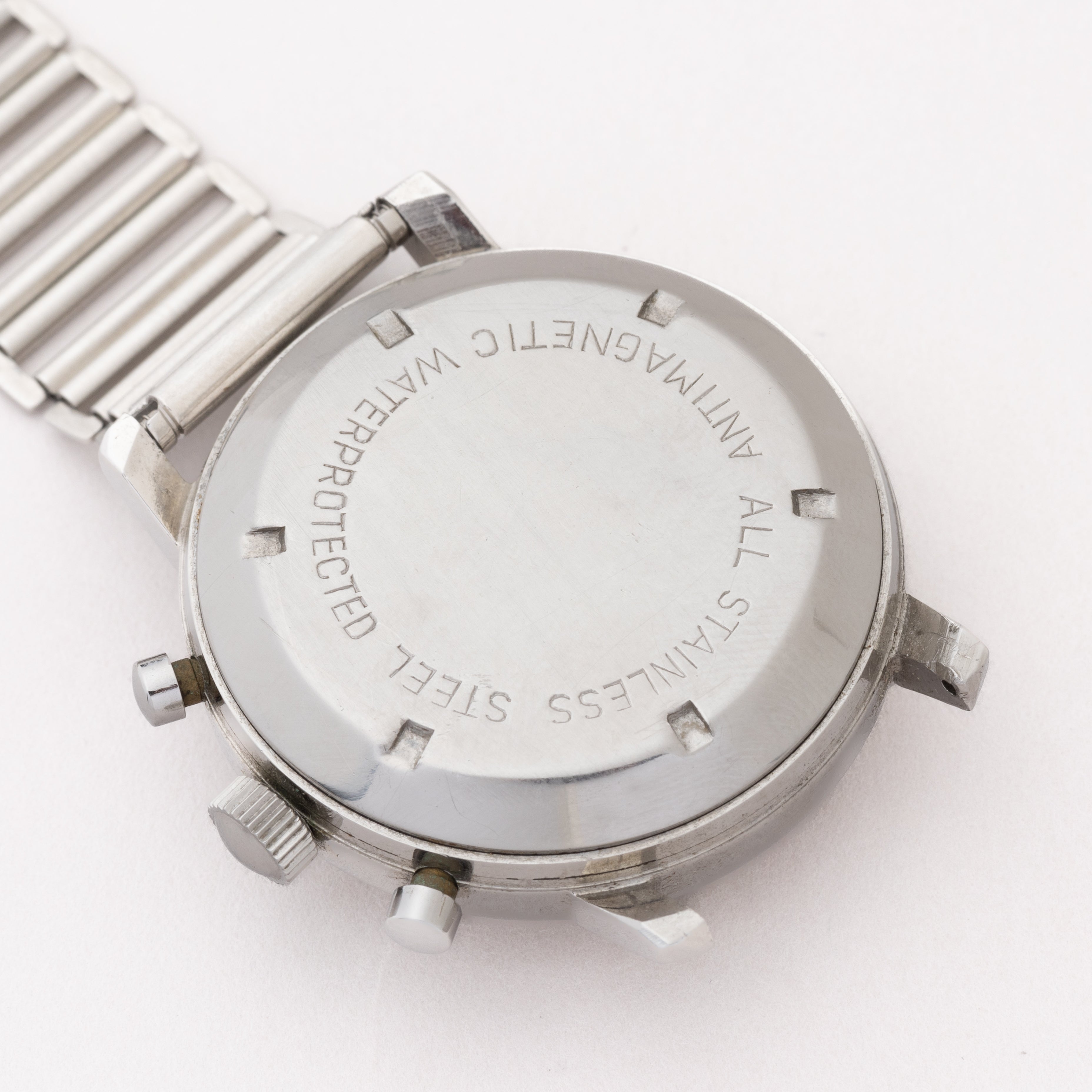 - ヴィンテージ時計の特性上、風防・パッキン・リューズ・バネ棒などの消耗部品は後年メンテナンス過程で交換されている場合がございます。オリジナル性を重視しておりますが、必要に応じて適切な部品にて調整されていますので、よりコレクション性重視のお求めのお客様は事前にご確認ください。