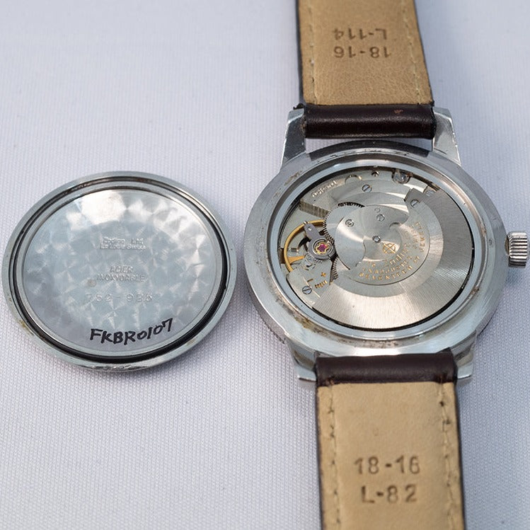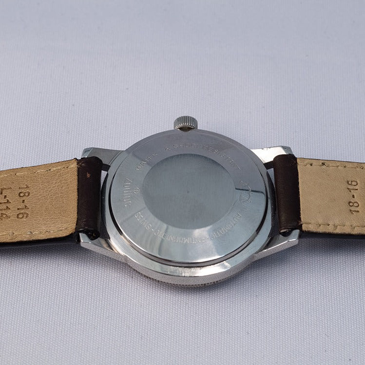 - ヴィンテージ時計の特性上、風防・パッキン・リューズ・バネ棒などの消耗部品は後年メンテナンス過程で交換されている場合がございます。オリジナル性を重視しておりますが、必要に応じて適切な部品にて調整されていますので、よりコレクション性重視のお求めのお客様は事前にご確認ください。