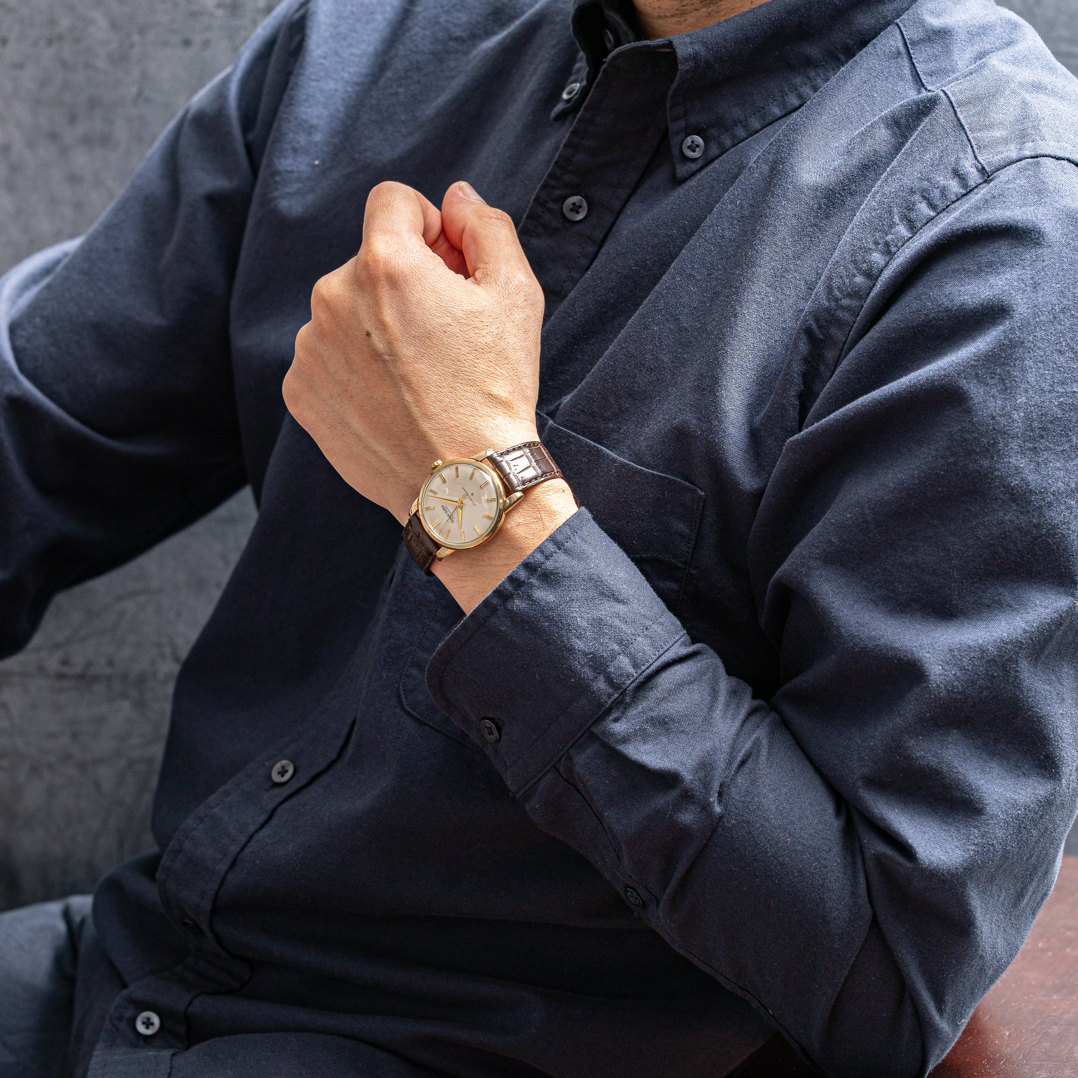 - ヴィンテージ時計の特性上、風防・パッキン・リューズ・バネ棒などの消耗部品は後年メンテナンス過程で交換されている場合がございます。オリジナル性を重視しておりますが、必要に応じて適切な部品にて調整されていますので、よりコレクション性重視のお求めのお客様は事前にご確認ください。